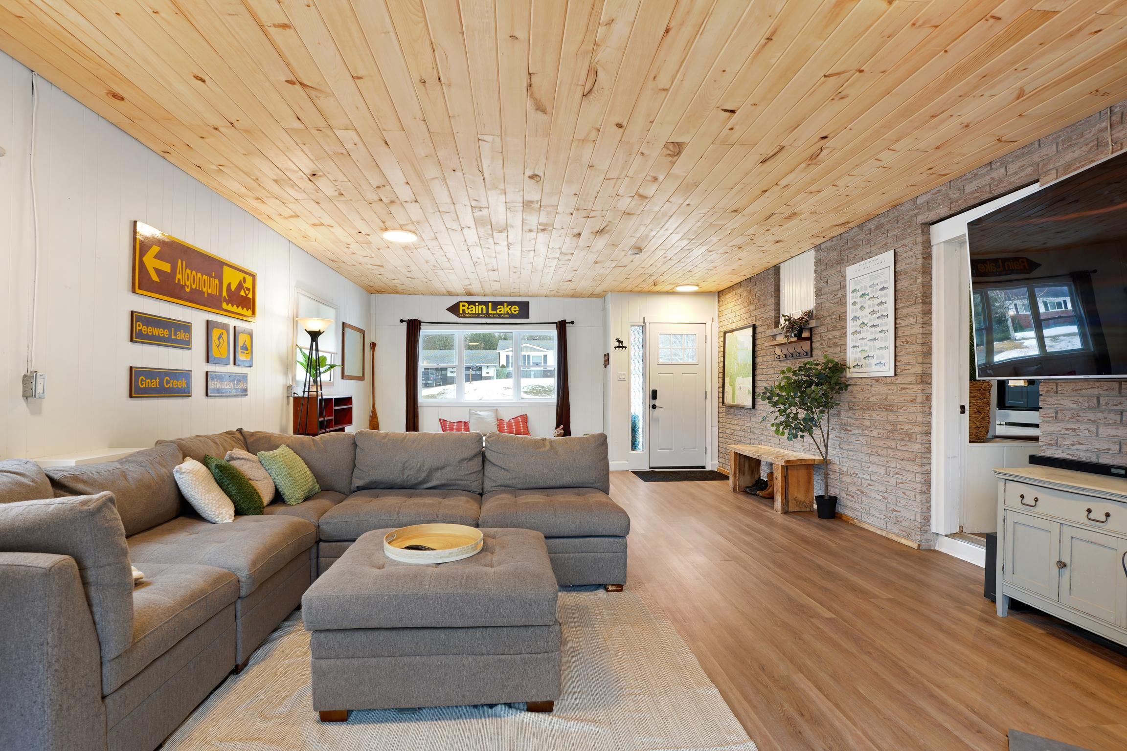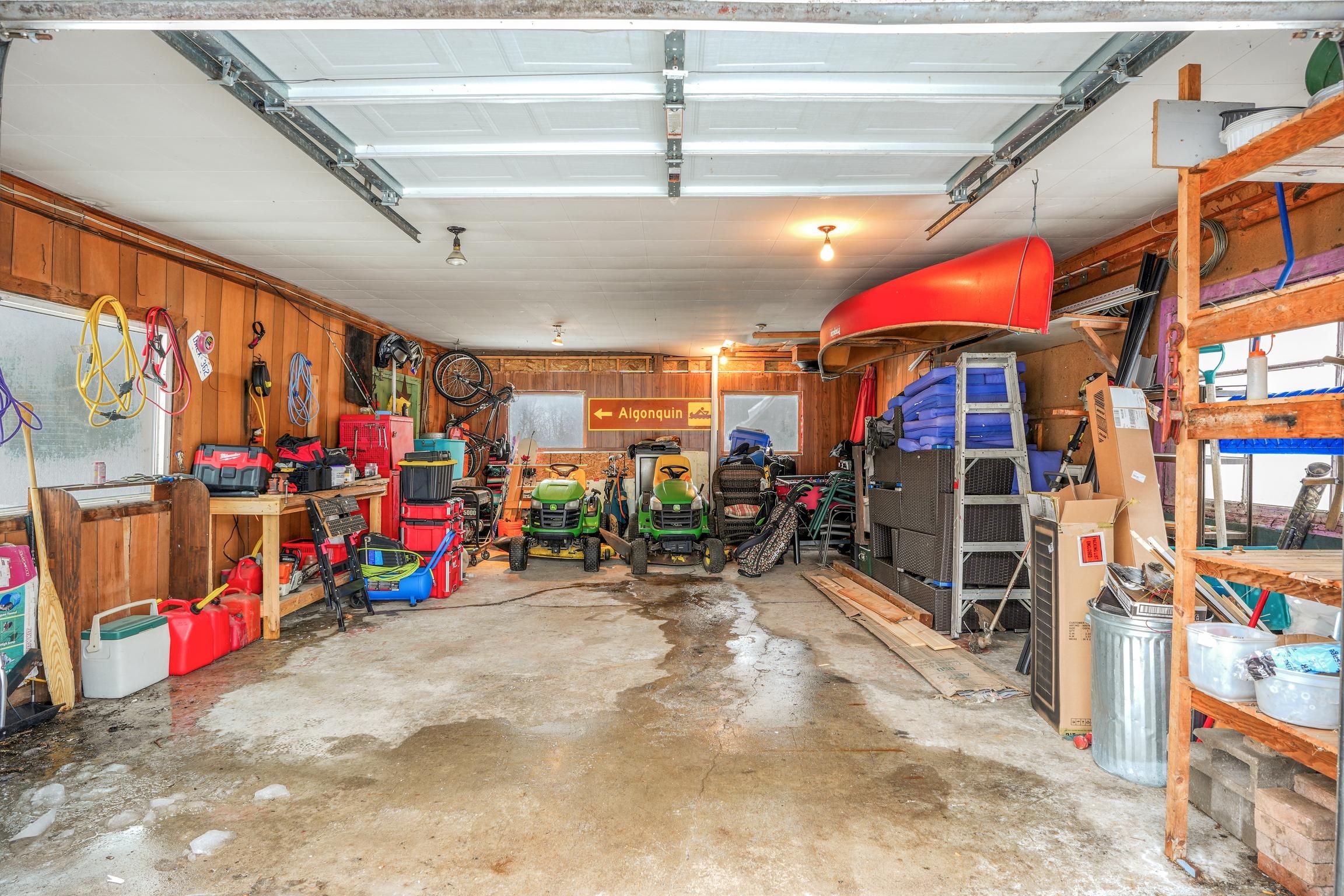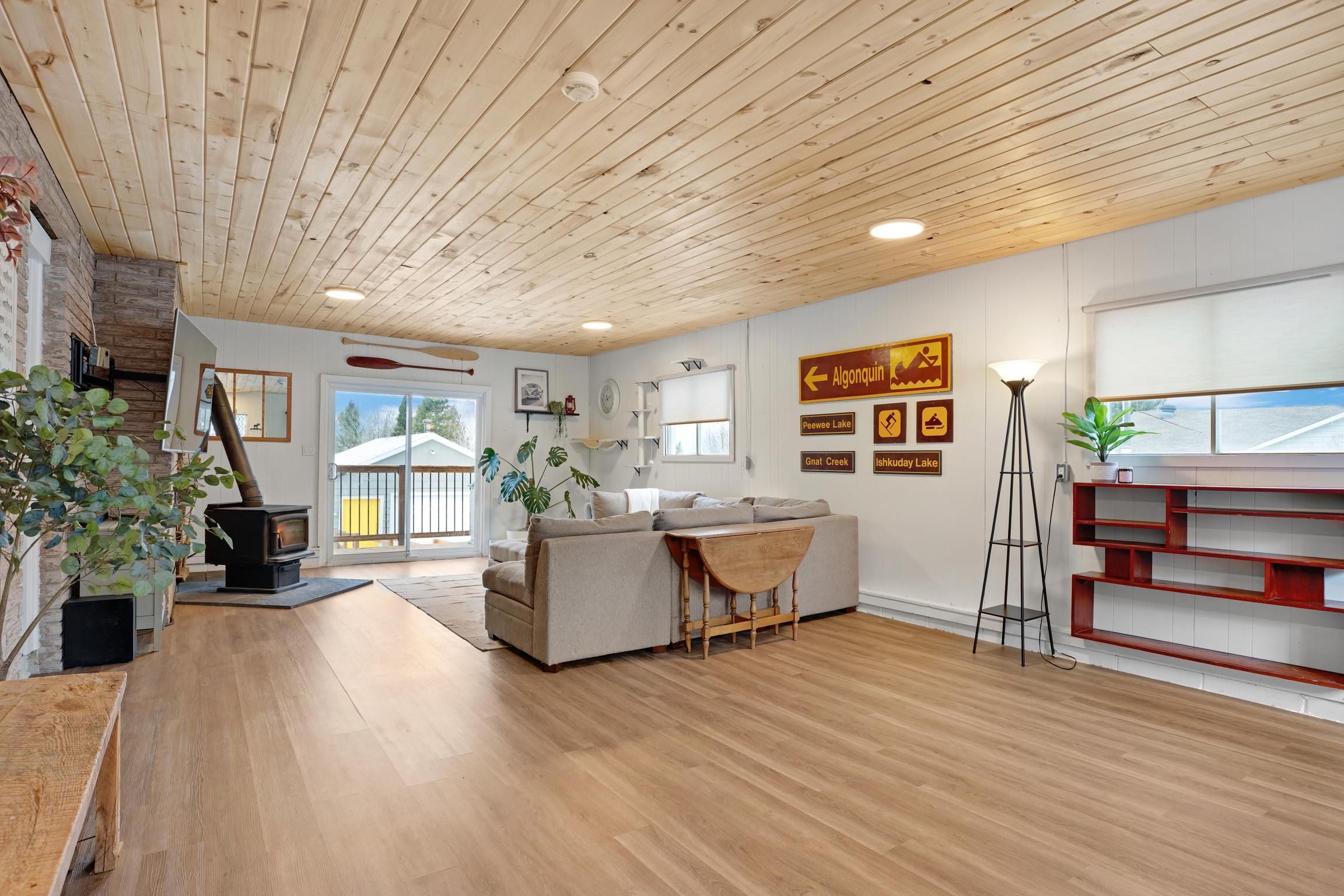 Your year round getaway awaits! This charming 2-bedroom, 2-bathroom home sits in a private setting with breathtaking views over galeairy lake-home to the well-known couples resort-you'll enjoy stunning sunsets right from your own back deck. Inside, the home features a spacious, light-filled living room and an updated kitchen with modern finishes and all updated appliances. The fully finished basement adds valuable living space, while the main floor offers potential for a third bedroom facing lakeside, making this home flexible for families, guests, or a home office space. Over the last few years, this property has seen extensive upgrades, giving peace of mind for years to come. Improvements include a new propane furnace (2020), 8 new windows (2024), updated supply pex plumbing (2025), new 100 amp panel, and a wett-certified woodstove in the cozy family room. Fresh flooring and paint throughout complete the move-in-ready feel. Step outside to a fully fenced, private back yard-perfect for relaxing, entertaining, or letting kids and pets roam safely. A double paved driveway leads to the detached garage which provides excellent storage or workshop space, and the property is equipped with generlink connection for added convenience. Outdoor enthusiasts will love the direct access to the ofsc b trail right from the property, as well as being just a short drive to galeairy lake beach. Located close to whitney for everyday amenities and only minutes from the world-renowned algonquin park, this home is an ideal year-round residence or recreational getaway. Lakeside views, privacy, and modern upgrades all in one package.