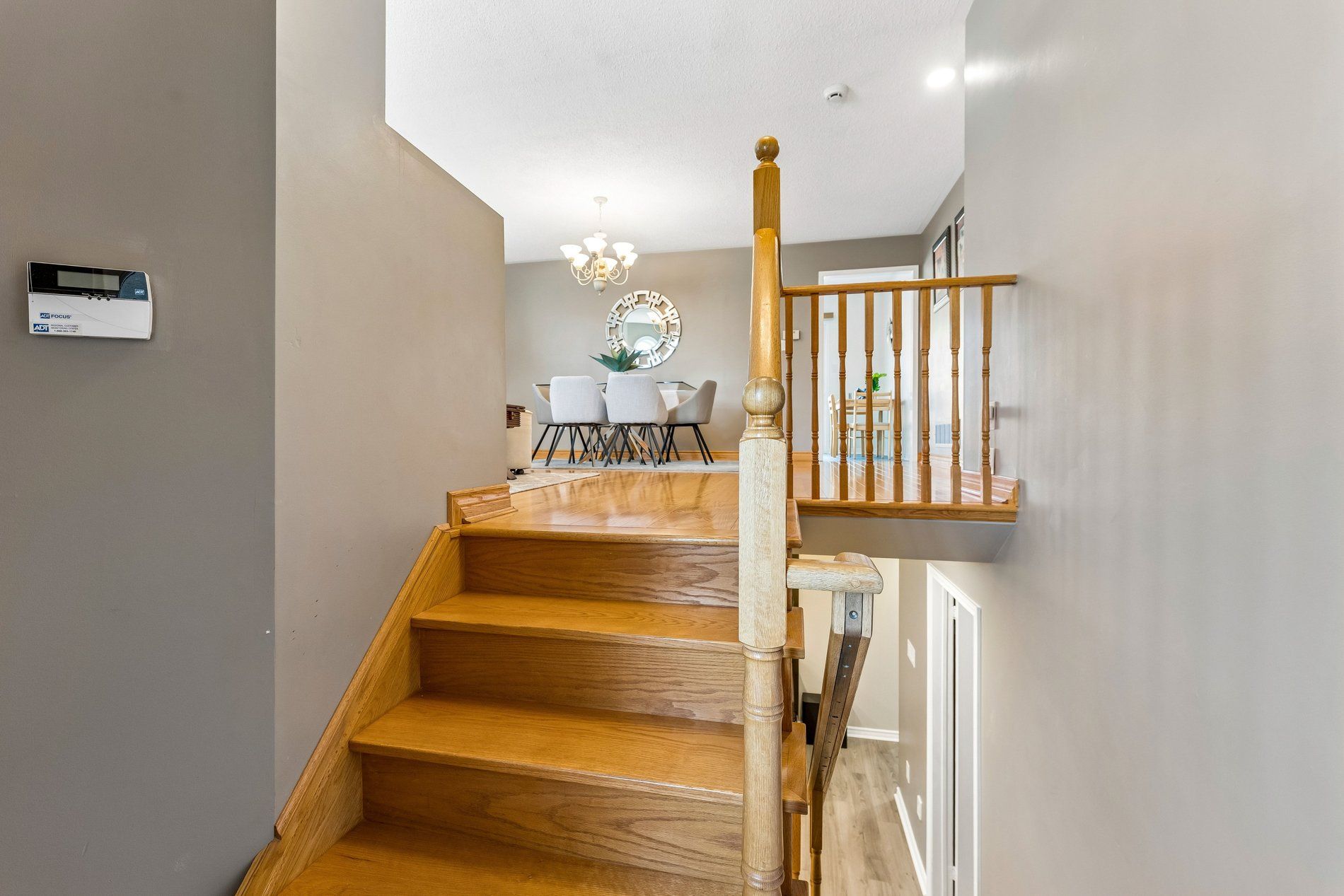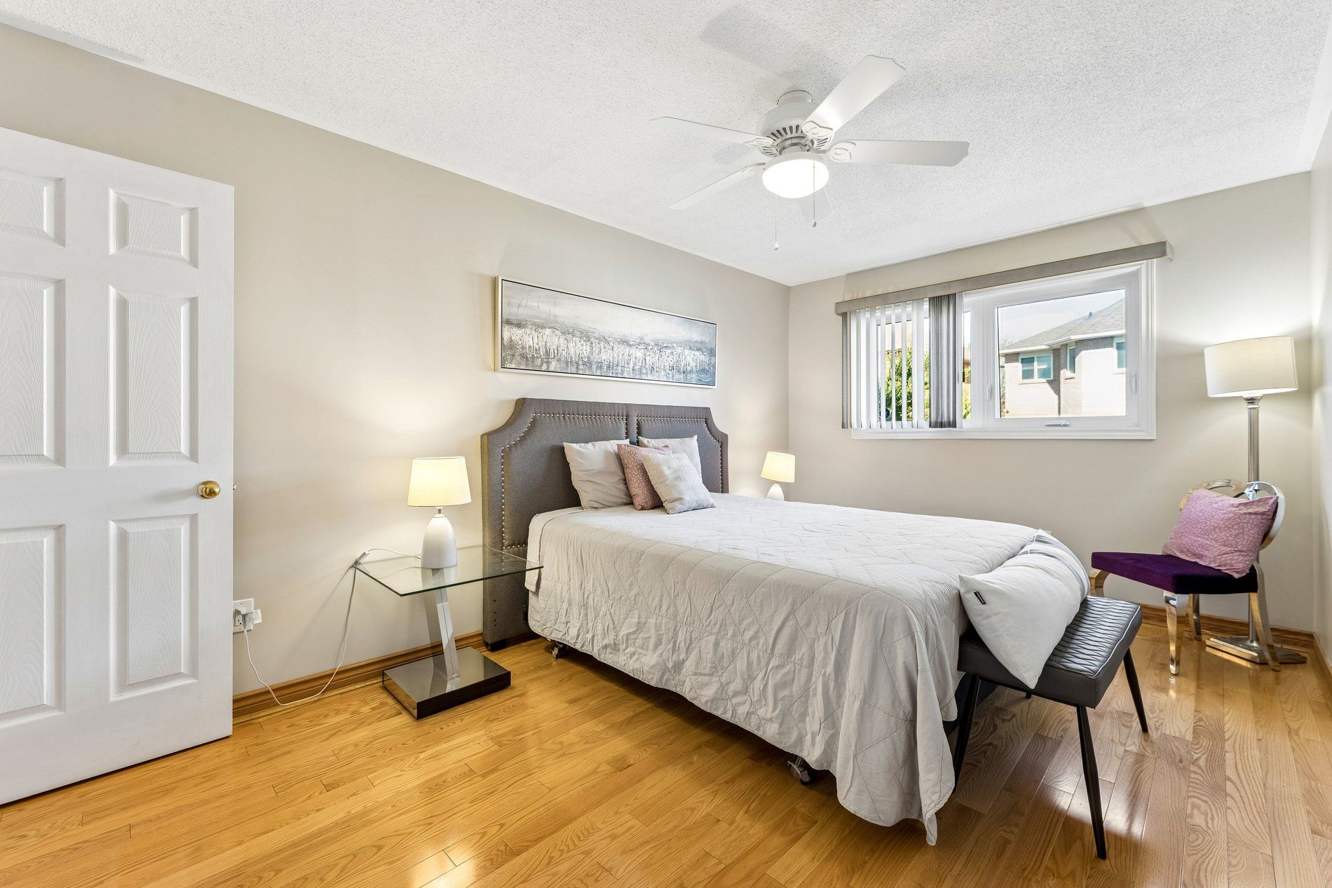 Detached all brick beauty with 2-car garage! This rare raised bungalow on a lovely landscaped lot boasts a fabulous open floorplan that was modified direct from the builder. The moment you step into the split foyer you notice the high ceilings & gleaming hardwood floors thruout the spacious & open main floor with tons of space for both living & dining with special features like the large, sunfilled arched windows & wall sconce lighting! The generous sized, freshly painted eat in kitchen boasts ample counter & cupboard space, steel fridge & stove, pot lights, eat in area & walkout to a large stone patio & fully fenced yard - perfect for relaxing or entertaining this summer! Rounding out the main level is a large primary bedroom w/a walkin closet & views of the backyard, plus an oversized primary bathroom complete w/relaxing jacuzzi soaker tub, separate walk in shower & linen closet. But wait - there's more! The fabulous finished lower level offers even more living space w/a huge open concept great room & flex area w/pot lights, big above grade windows, another large bedroom w/amazing built in closet system & full bathroom w/new tub & tile, plus a large laundry /utility room ideal for extra space & storage! This home offers an ideal layout for adult kids or the in-laws as it is like having two primary suites - one on each level! Many major components have already been updated: most windows updated over past 3 years, furnace (2023), new front door (2024), roof (approx 2018). A truly well cared for house in an excellent location close to key amenities: schools, shopping, restaurants, walking trails, gym, transit & go station. Bonus features of this gem are the double car garage & double wide drive for ample parking, stone curbs & hardscaping, plus a slight pie shaped lot for a wider backyard area w/big storage shed! Do yourself a favour & check out this fantastic home & property - opportunities like this are rare, and this beauty will not disappoint!