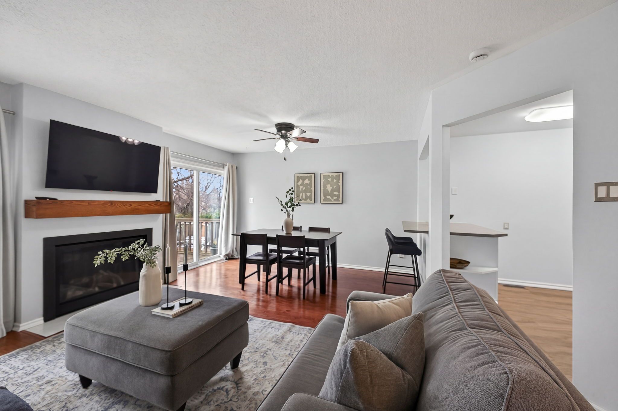 • Bright main floor with renovated kitchen and brand-new fireplace.