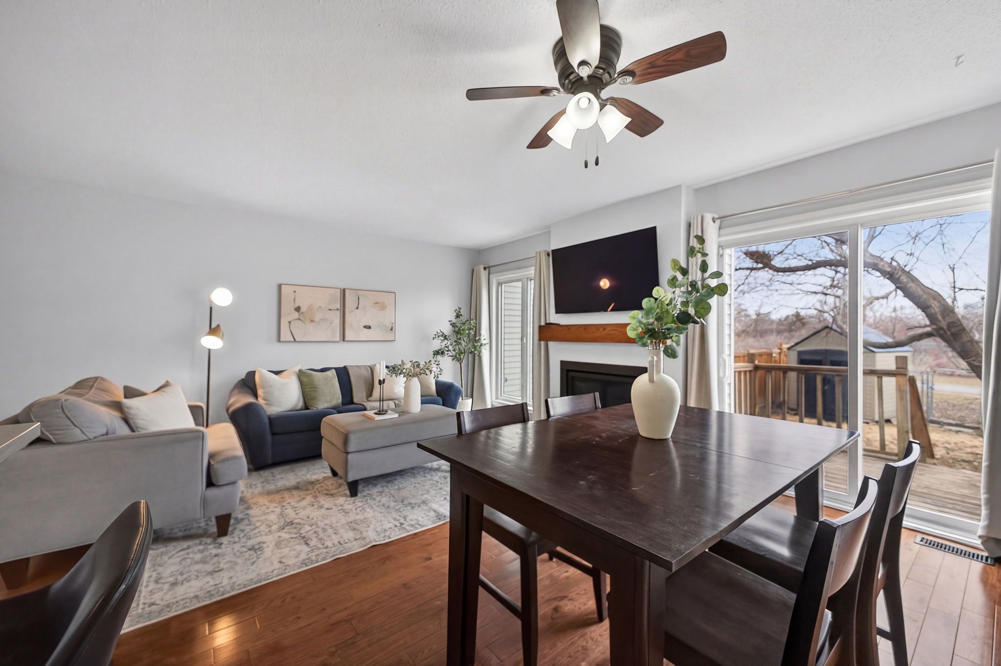 This 3-bedroom + bonus room, 2. 5-bath townhouse has been consistently upgraded by owners who clearly took care of it. The main floor features a bright living and dining area connected to the kitchen, which was renovated in 2018 and offers ample cabinetry, stainless steel appliances, and a breakfast bar with extra storage. A brand-new fireplace (2025) anchors the living space, and a walk-out leads to a fully fenced backyard with a newer deck and fixed fence (2023), backing directly onto a walking trail with no rear neighbours - a great setup for dog owners and anyone who wants green space steps from the back door. Updated lighting, hardware, and a refreshed powder room (2021) complete the main floor. Upstairs, the primary bedroom includes a renovated ensuite (2021), a spacious walk-in closet, and a bonus sitting area that works well as an office nook, reading corner, or dressing area. Two additional bedrooms share an updated full bath with soaker tub/shower combo (2024). The finished basement offers a large rec room and laundry. A new furnace (2025), humidifier (2019), garage door (2023), newer windows, refreshed front deck (2024), and backyard shed (2020) round out a long list of updates. Oversized driveway, easy access to schools, parks, shopping, restaurants, and the 416 and strandherd corridors.