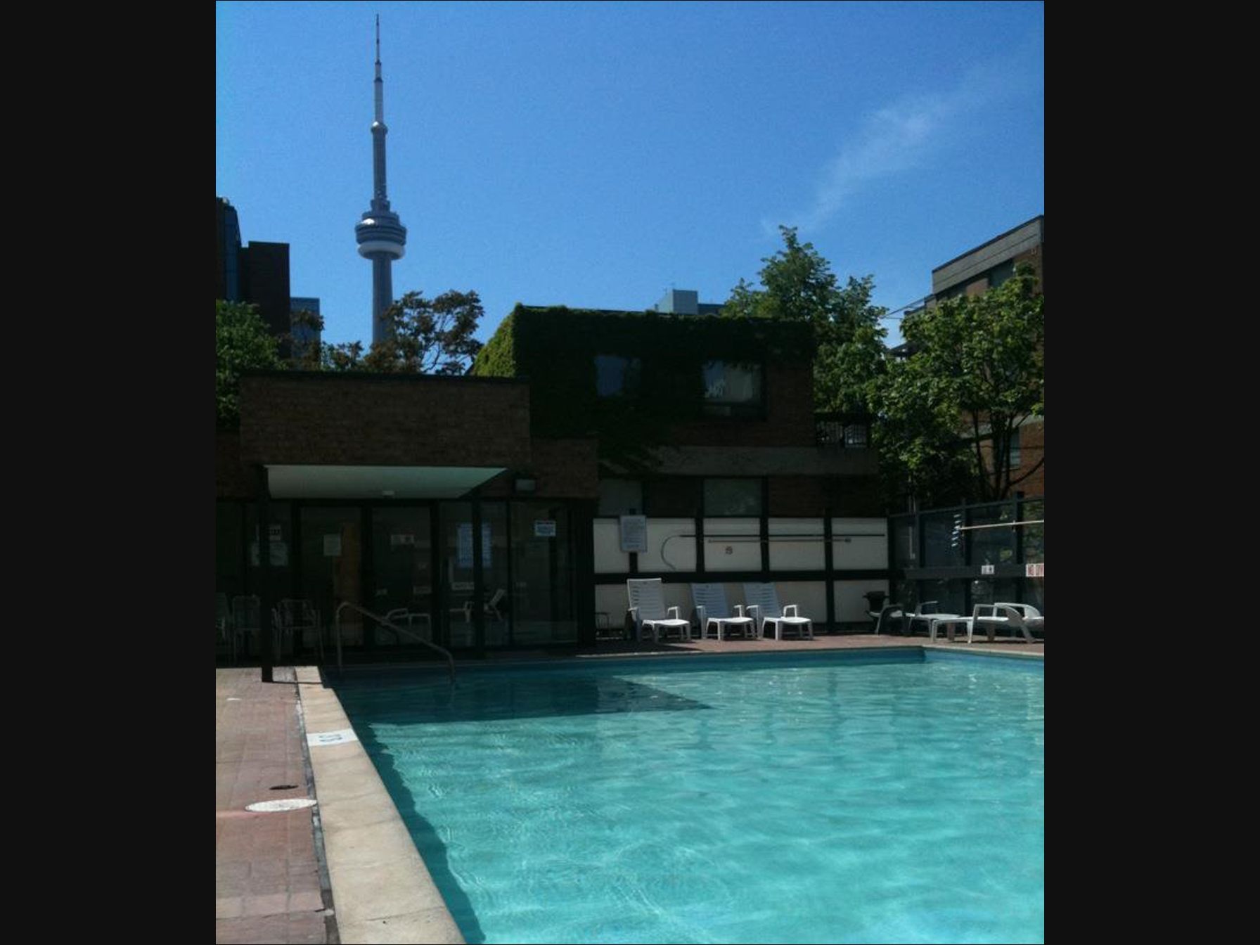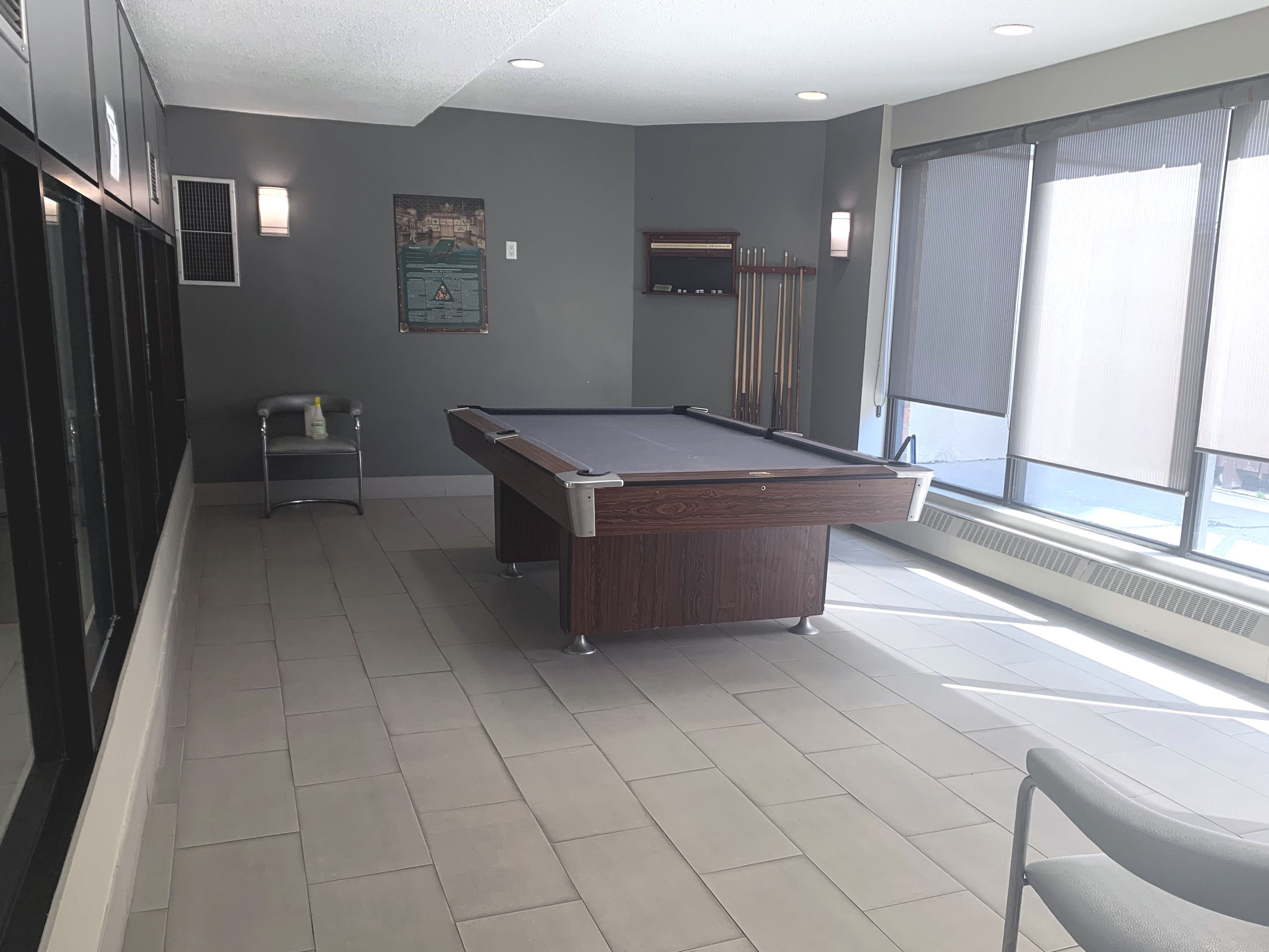 • Building includes amenities like outdoor pool, gym, sauna, and games room.