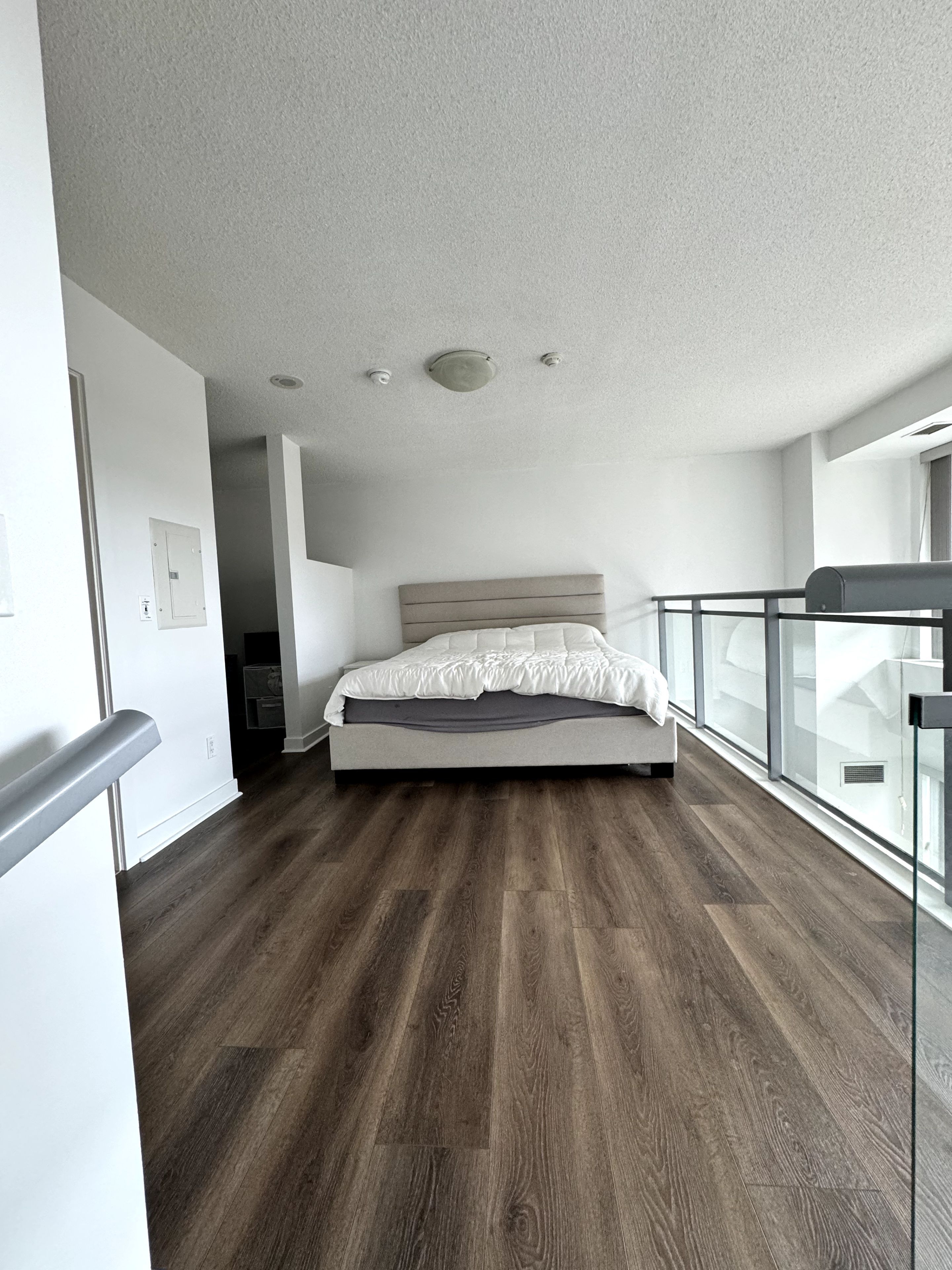 Welcome to zip condo's in liberty village! Thriving king west village neighbourhood in the heart of downtown toronto. Sought after contemporary loft suite, magnificent two level floor to ceilling window, sun filled open concept layout with open balcony. Fabulous modern kitchen with granit counters, high quality vinyl flooring, spacious private loft, all steps to shops, cafes, restaurants, supermarket & to lake ontario water front parks and board walks. Outstanding amenities such as 24hr. Consierge, indoor pool, well equipped gym, yoga & aerobic area, party/meeting room, guest suites and more.