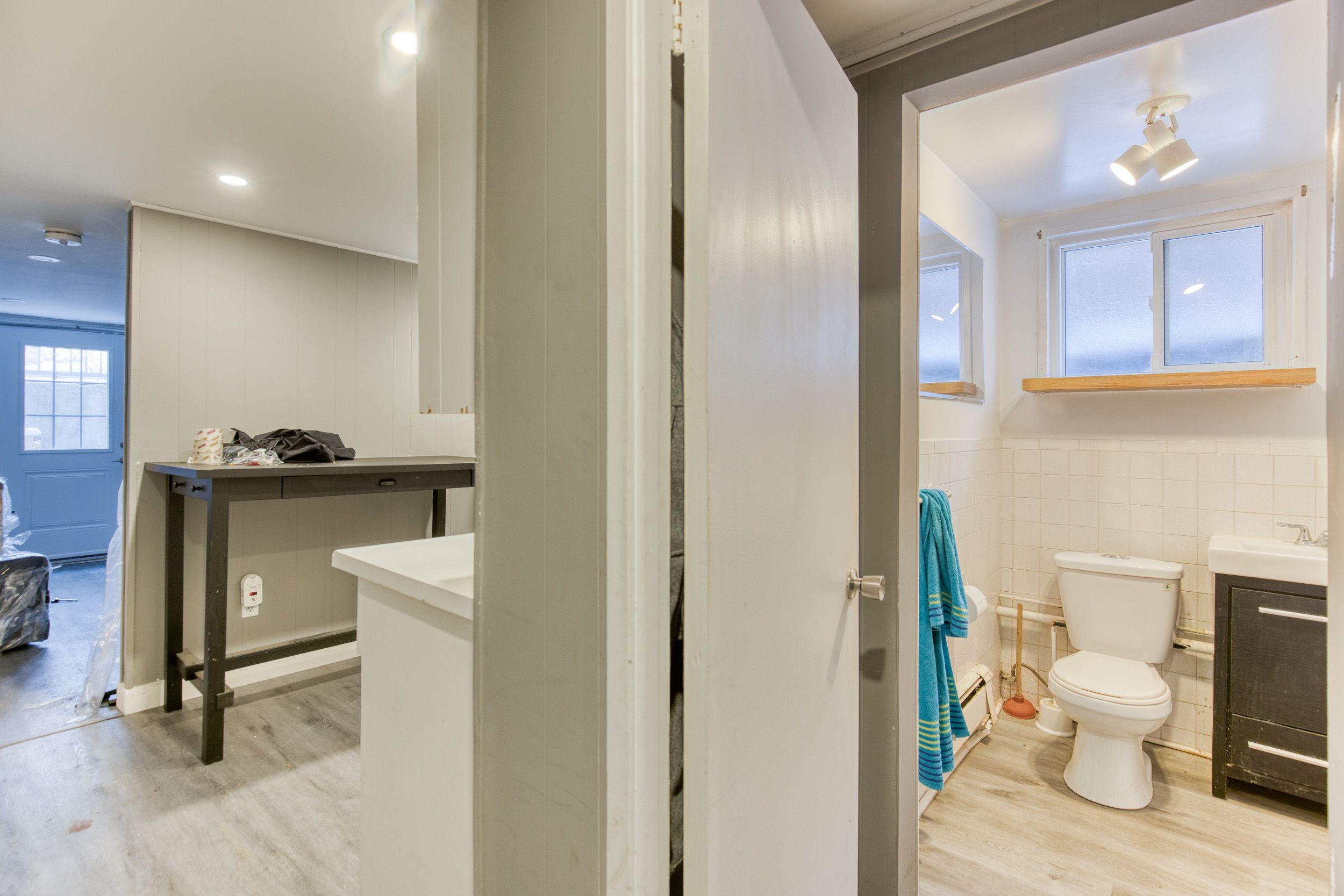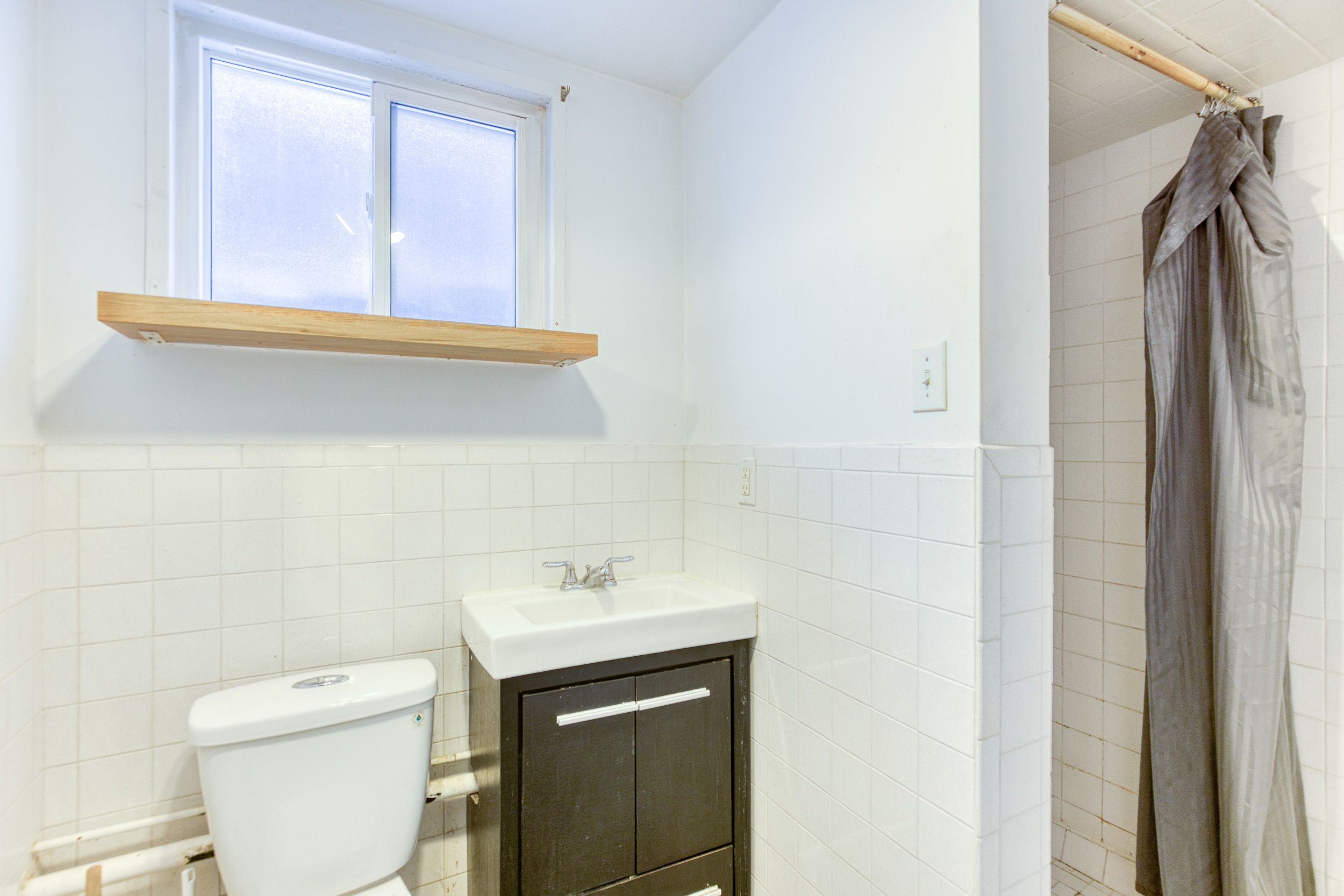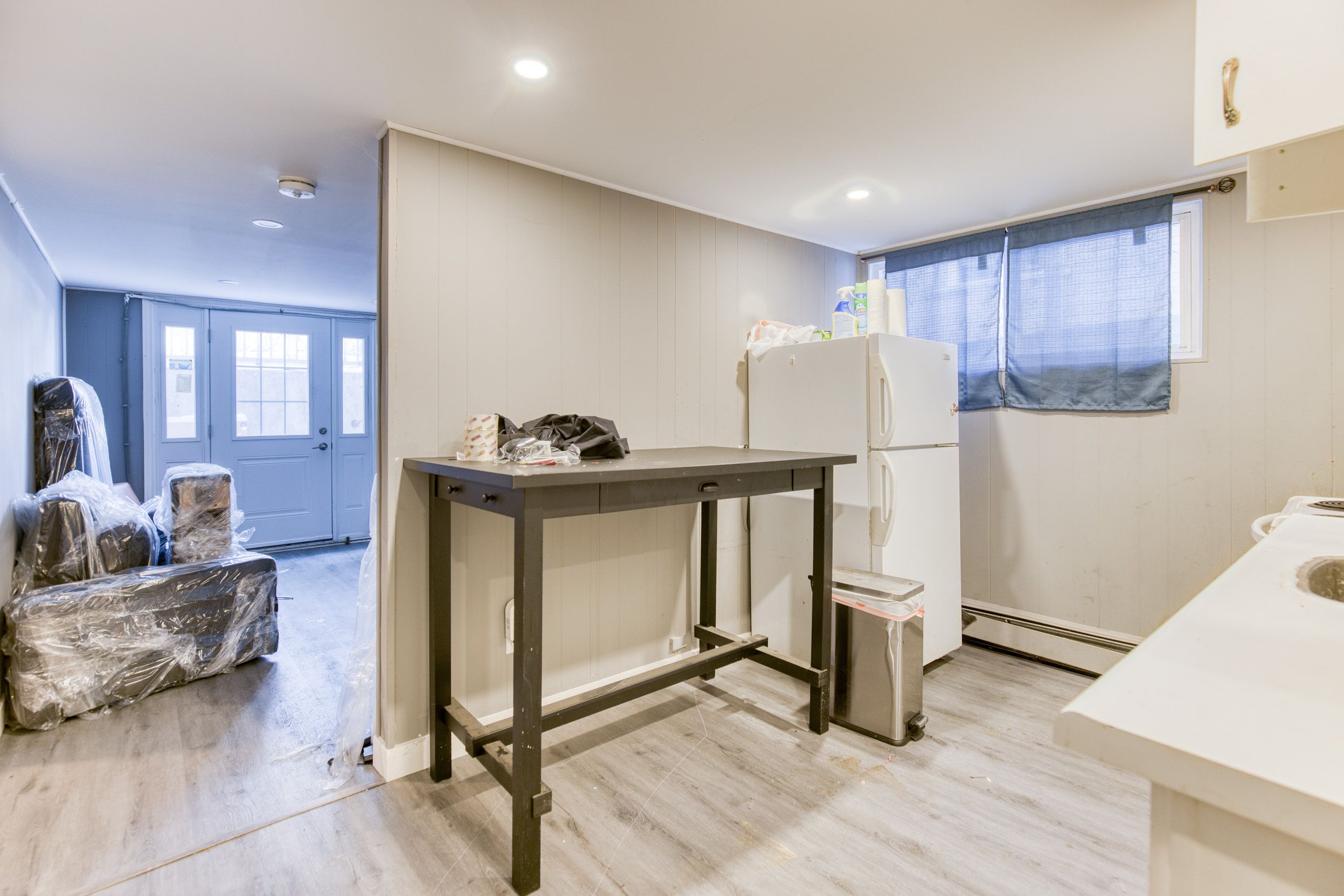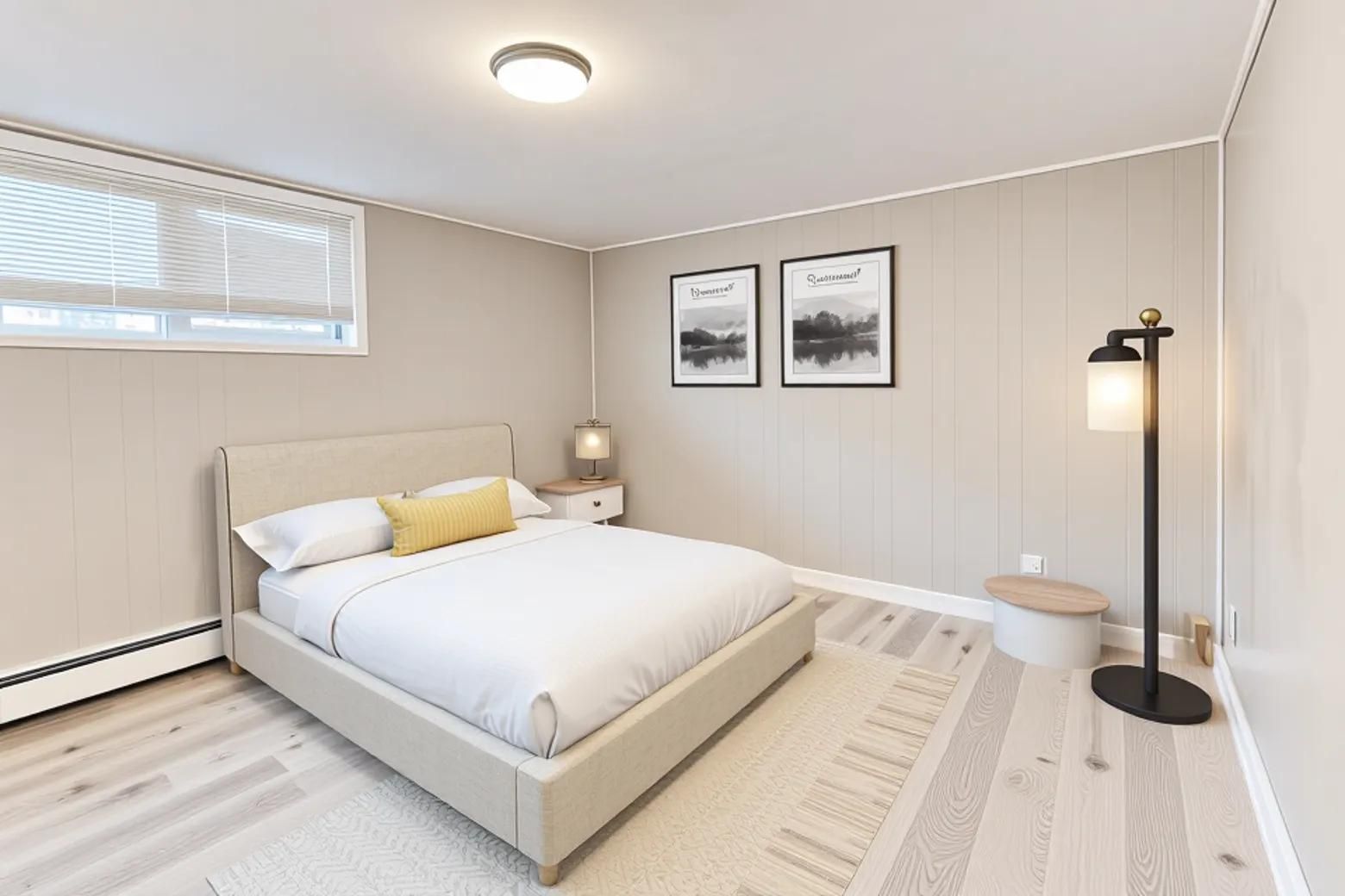 • Bright and spacious 1-bedroom, 1-bathroom basement apartment with large windows.
