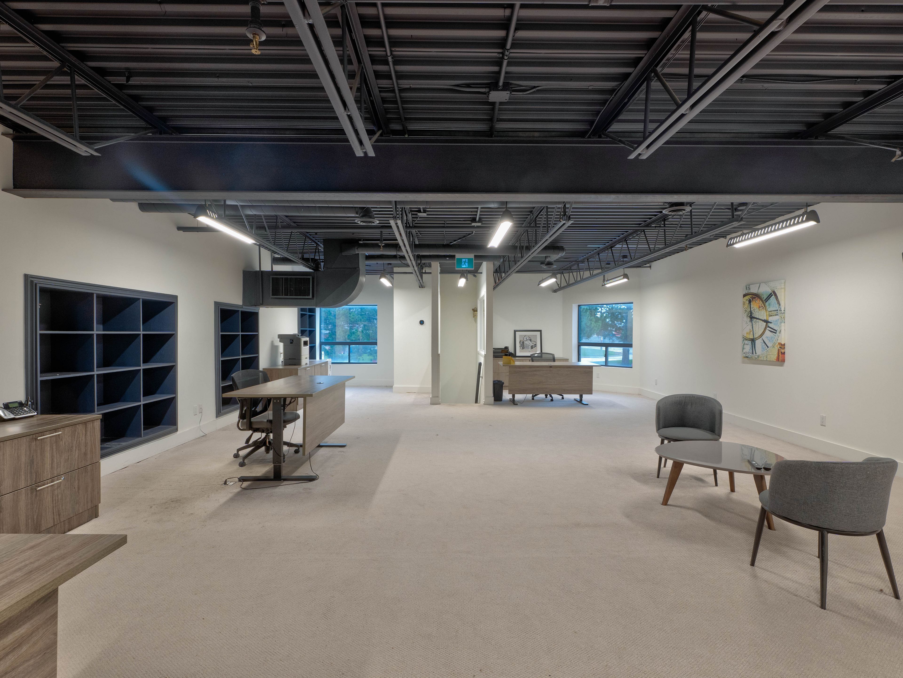 Second floor commercial office space, with conference room, storage and bathroom. Office furnished 3 desks and chairs and built in cabinets. Lots of natural light, ready to move in! Very close to highways 400-401-407 .
