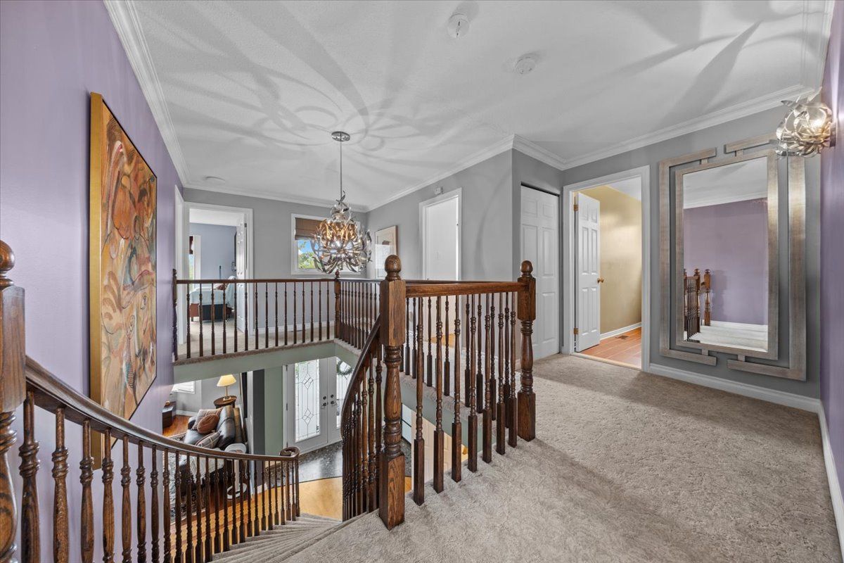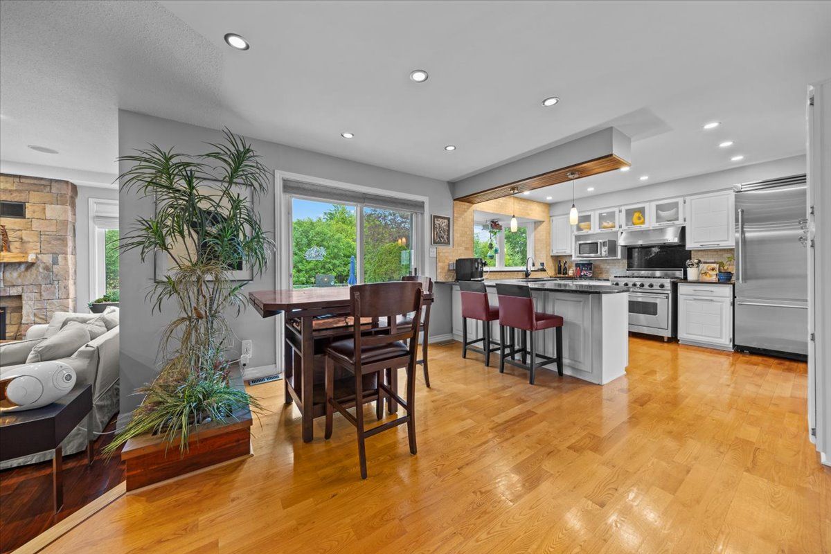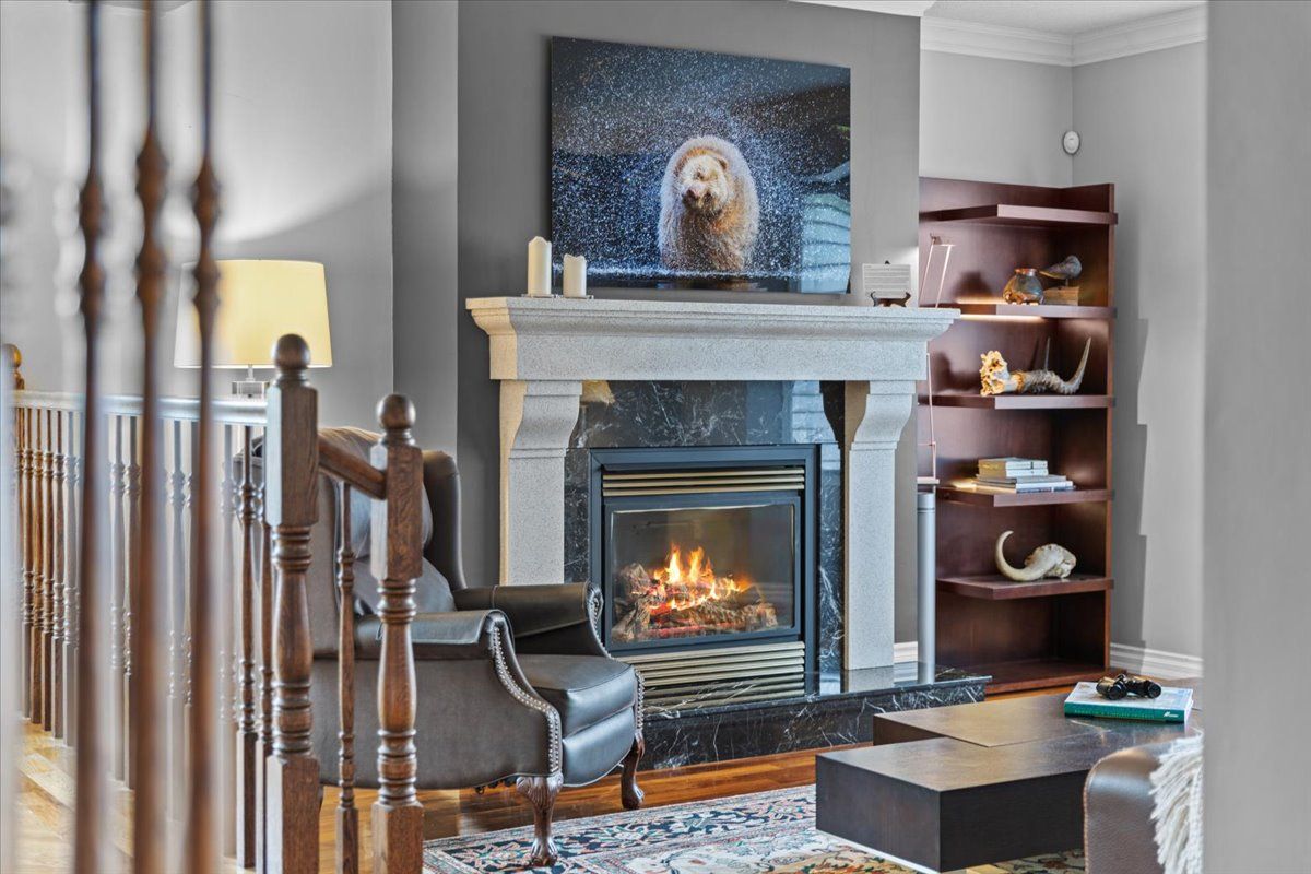 Set on a quiet cul-de-sac in the established enclave of convent glen north, this distinguished residence is defined by privacy, mature landscape, & sweeping views toward the ottawa river while bordering protected ncc green space. Wrought iron fencing, interlock approach, & sculpted architectural planting create a composed arrival, leading to twin glass entry doors & a gracious foyer anchored by a curved staircase & site finished hardwood flooring throughout the principal level. The interior balances openness w/intention. A thoughtfully designed kitchen features quartz surfaces, refined cabinetry, integrated lighting, bay window seating, & a wall of pantry storage w/glass detailing. The adjacent dining room, framed by crown moulding, opens through wide patio doors to an elevated stone terrace oriented toward river & forest views. A sunken living room centred on a sculptural gas fireplace & a separate family room w/stone hearth & corner windows provide inviting spaces for gathering & quiet retreat. A discreet powder room & service access connect seamlessly to outdoor entertaining areas including barbecue terrace & hot tub patio. Upstairs, the primary suite offers morning river views, a three sided fireplace, expansive glazing, & a full wall of custom storage. The spa inspired ensuite presents a freestanding tub, dual vanities, radiant heated flooring, & a generous glass shower. Additional bedrooms are well proportioned & served by a refined main bath finished in travertine with oversized walk in shower. The lower level extends living w/a multifunctional recreation space, wet bar, private den, secondary powder room, & dedicated laundry. Outdoors, forested privacy surrounds a heated saltwater pool & architectural hardscape designed for relaxation & entertaining. Walking distance to river pathways, transit, future light rail, shopping, & schools, this home offers a rare balance of natural seclusion & urban convenience, 24 hour irrevocable on all offers.