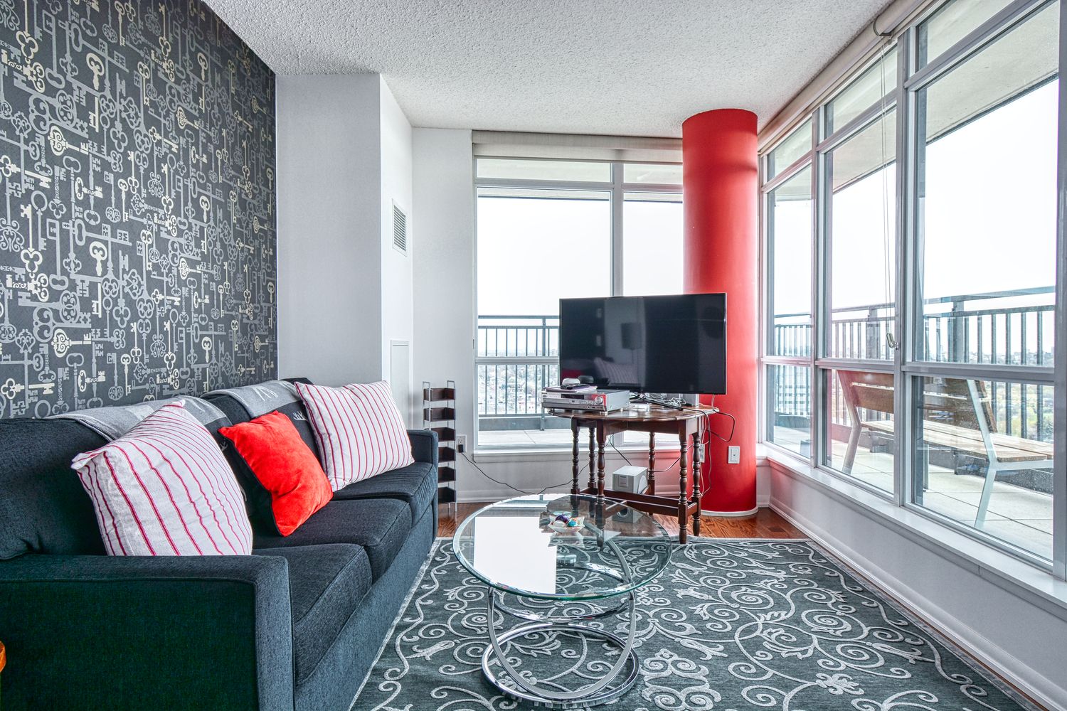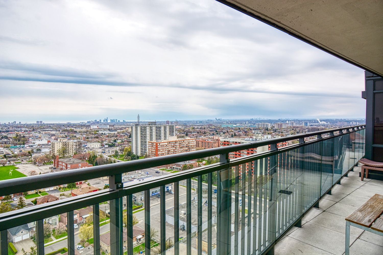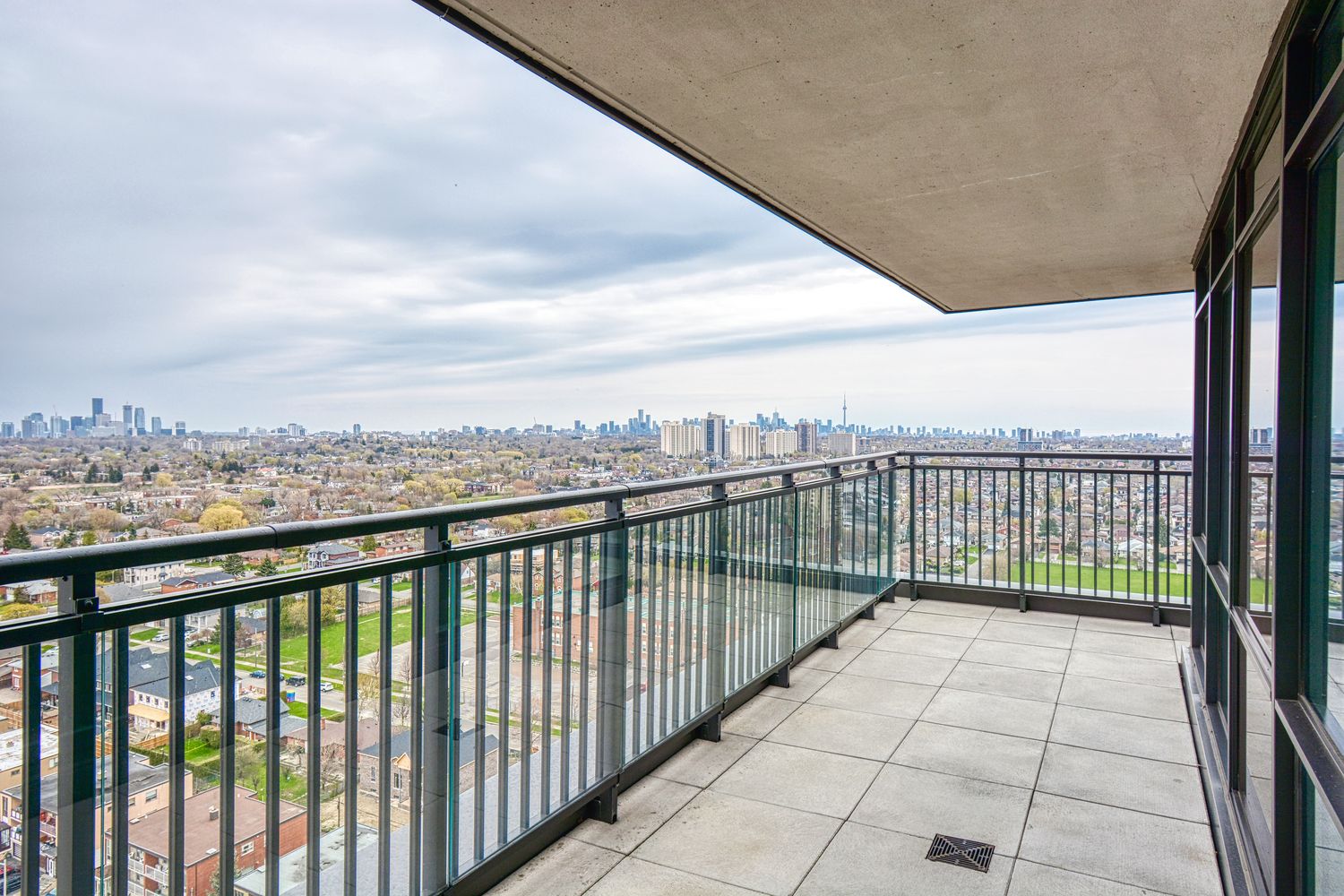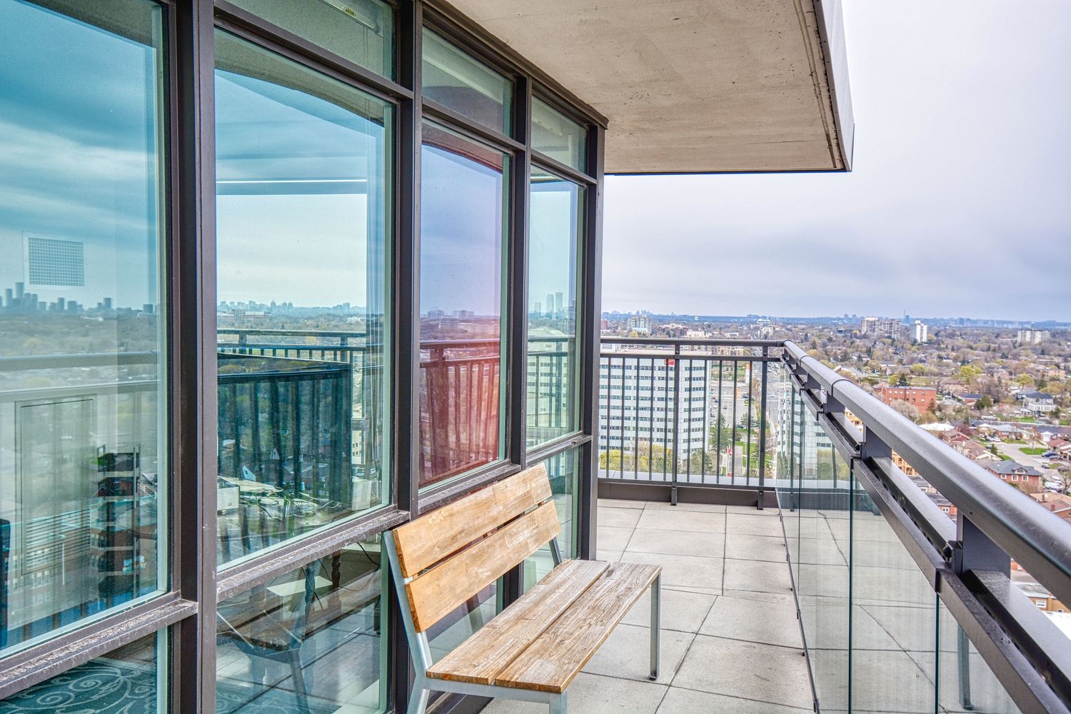This treviso condominium welcomes you to this lower penthouse with beautiful south view and spacious wrap around balconies. Enjoy this 2 bedroom & den with great amenities, fitness center and out door pool. With 24 hour concierge service. Live comfortably in mid town toronto! Great living space !!