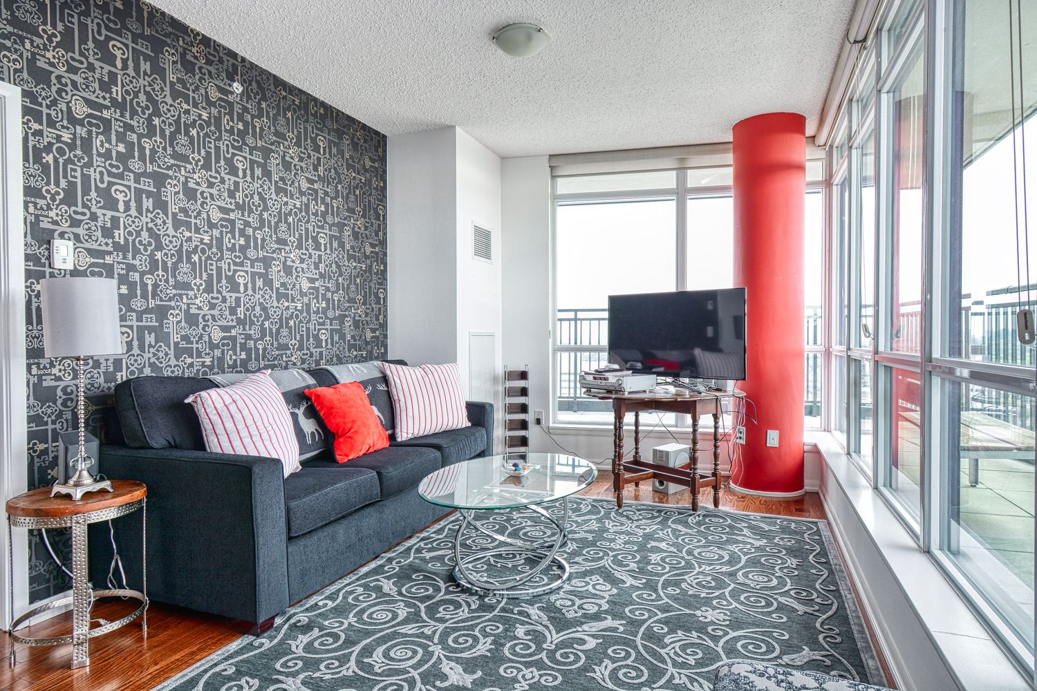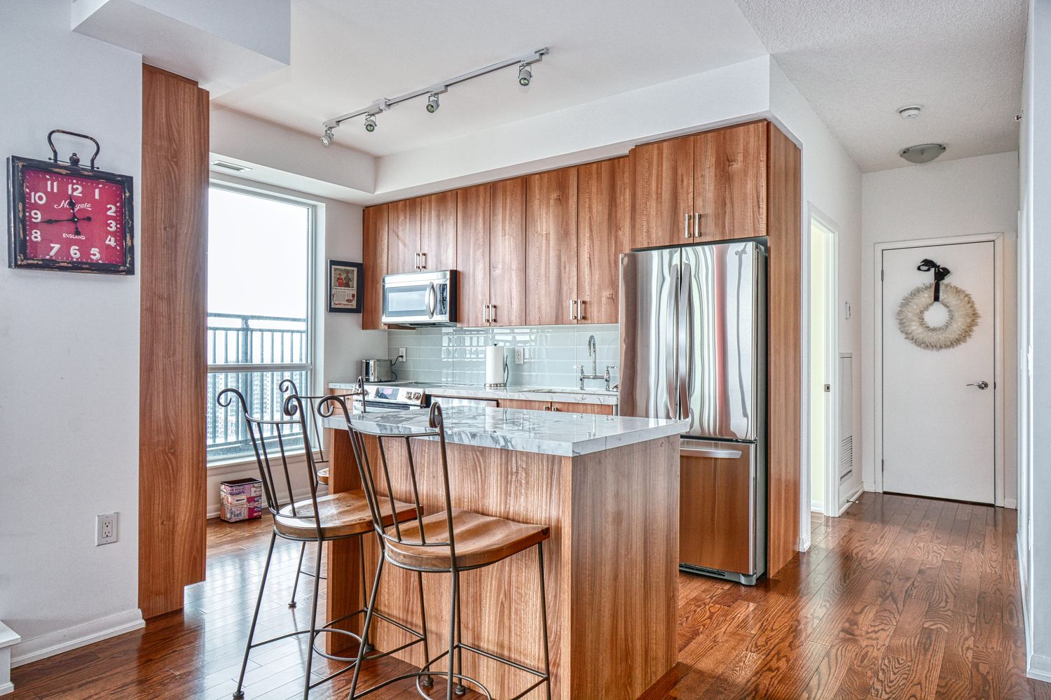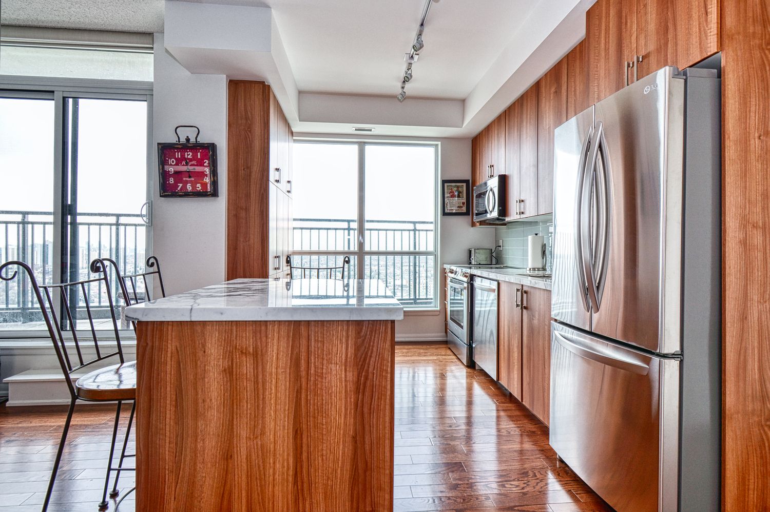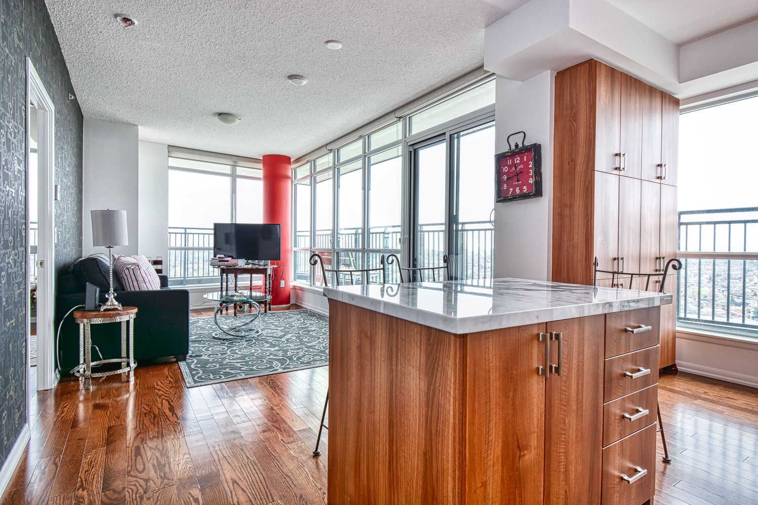 This treviso condominium welcomes you to this lower penthouse with beautiful south view and spacious wrap around balconies. Enjoy this 2 bedroom & den with great amenities, fitness center and out door pool. With 24 hour concierge service. Live comfortably in mid town toronto! Great living space !!