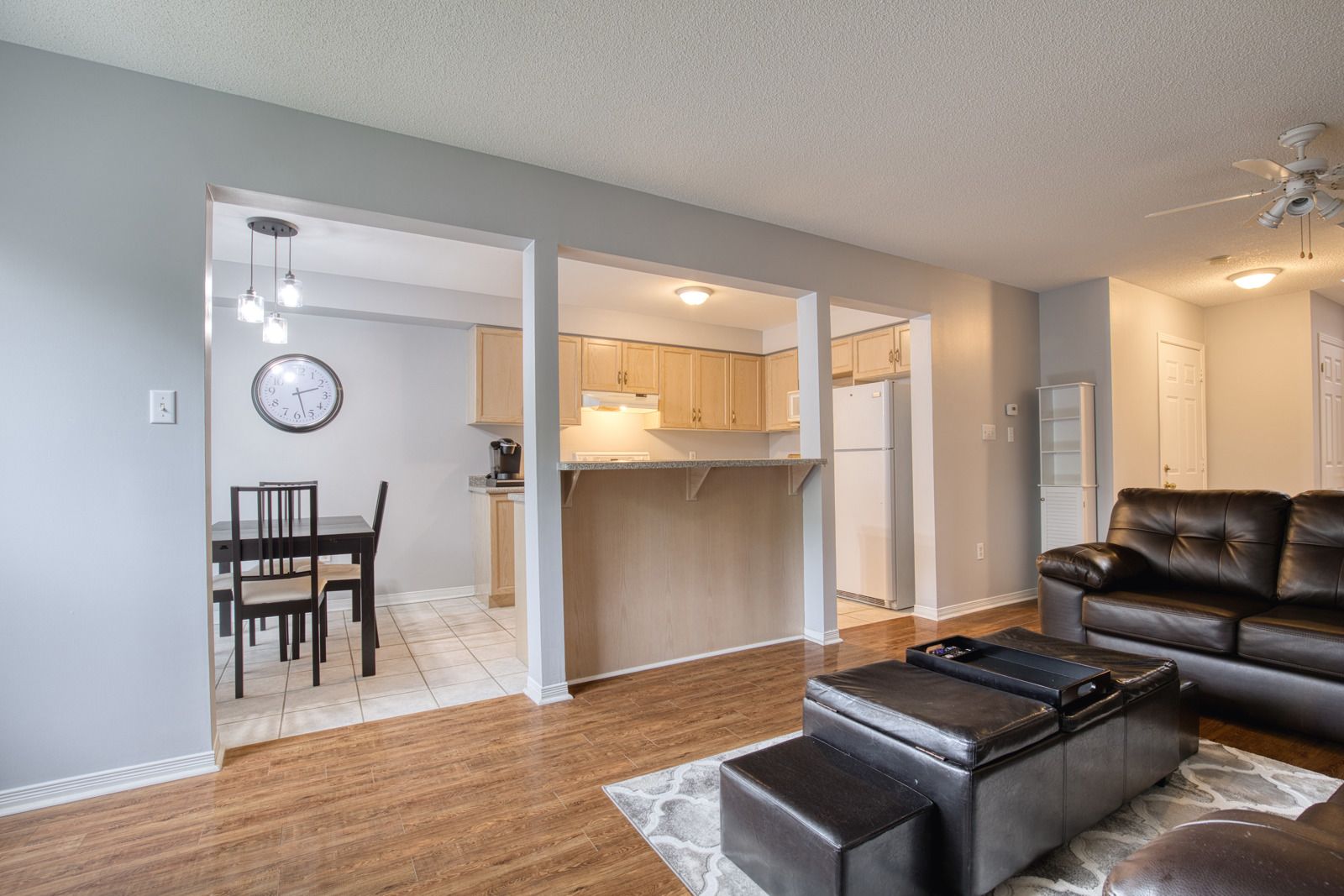 • Bright open concept living area with a gas fireplace for comfort.