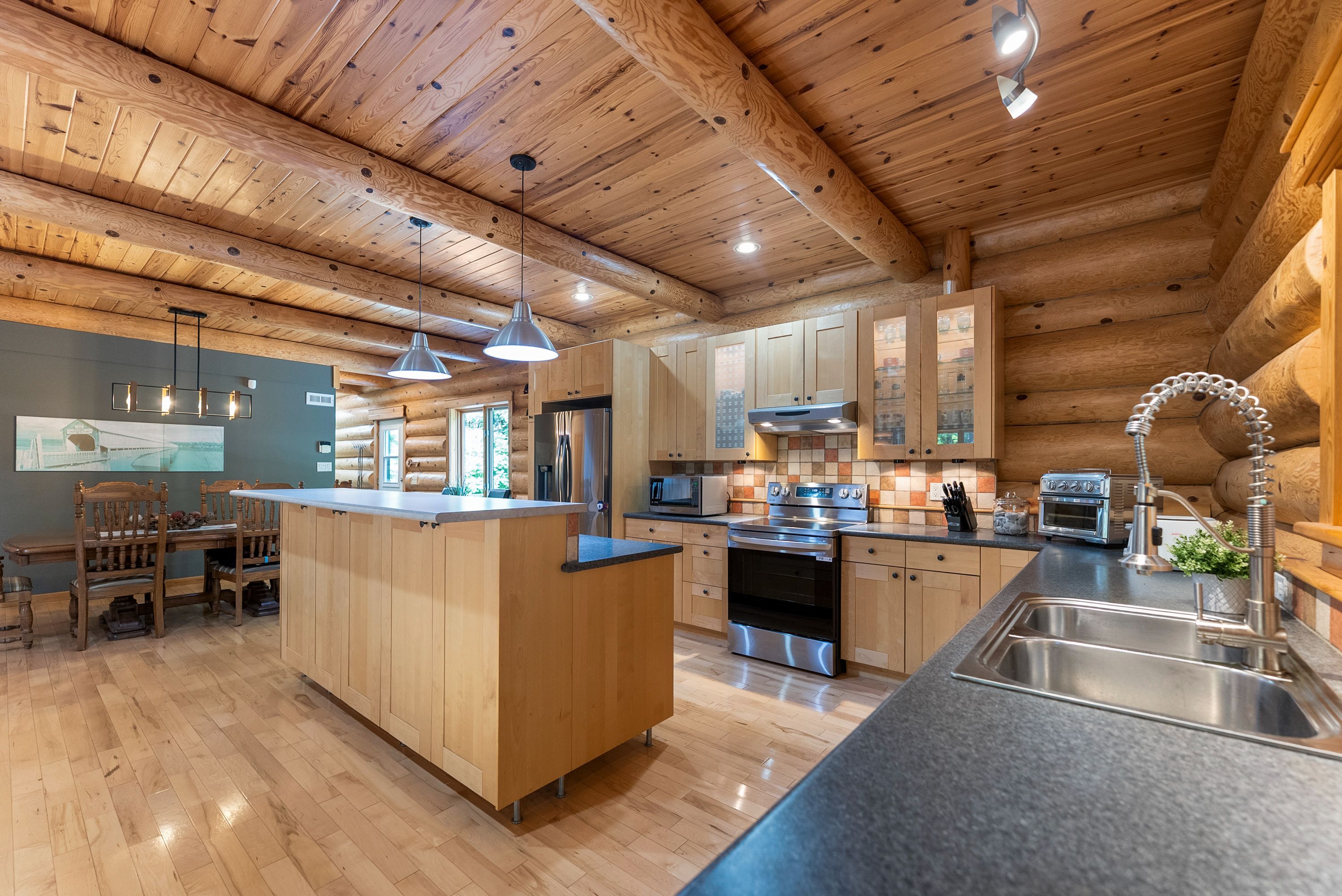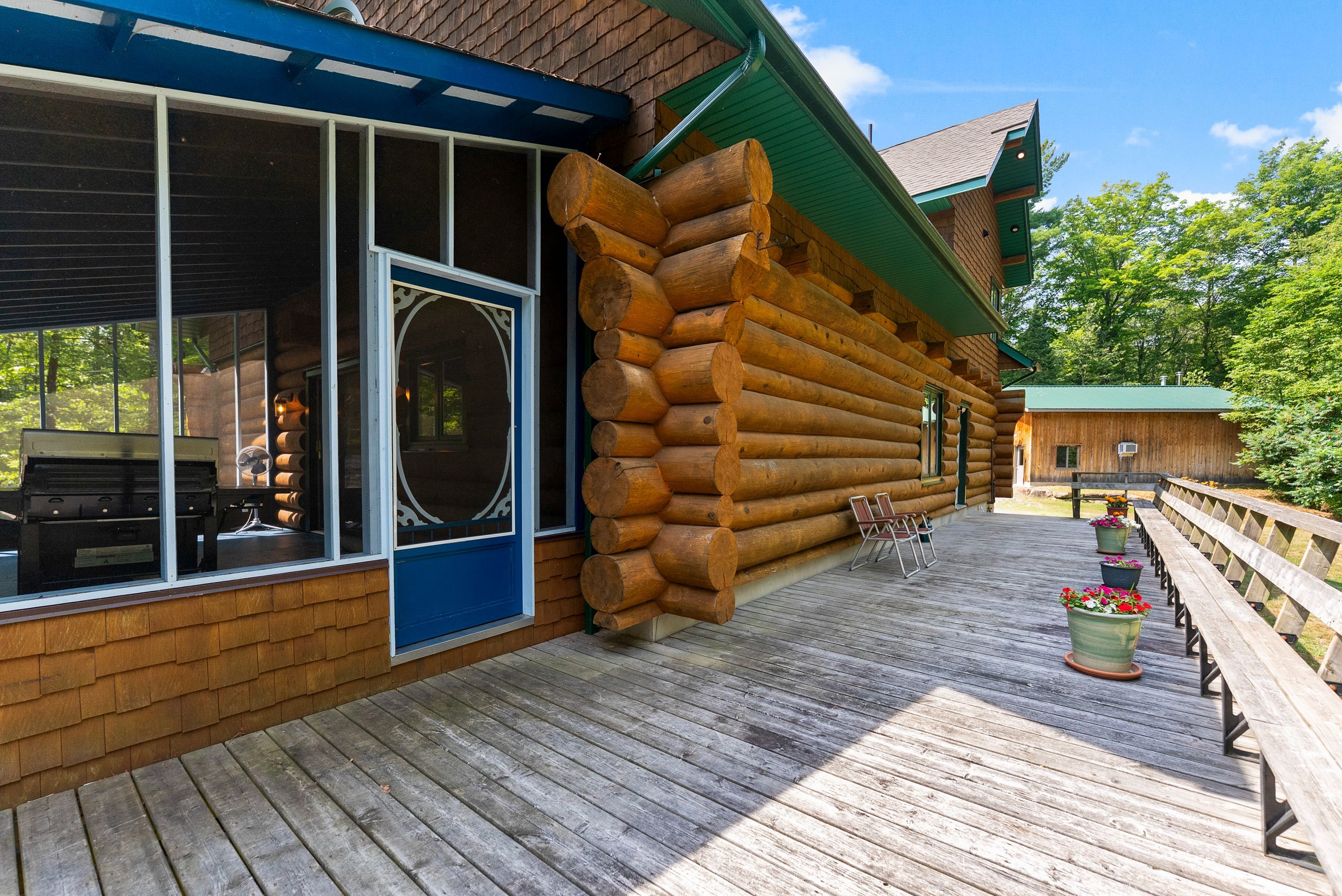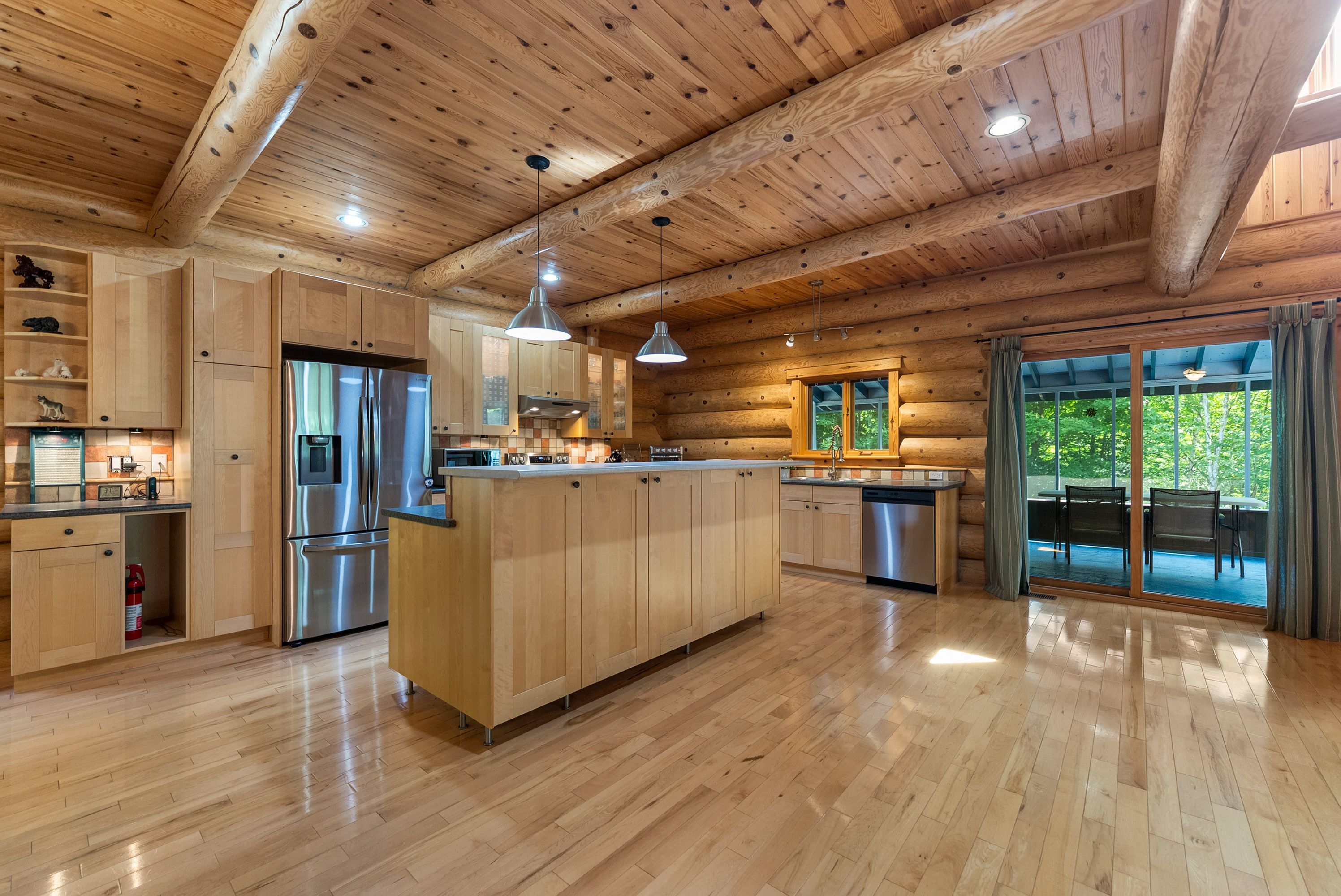 Set amidst 14. 95 acres of mixed hardwood forest minutes from pembroke, this extraordinary custom built log home offers a rare blend of artisanal craftsmanship and refined rural living. Designed with timeless attention to detail, this home is a true testament to natural beauty and enduring quality. The heart of the home is an expansive open-concept kitchen and dining area, thoughtfully laid out. Adjacent, the great room is anchored by a floor-to-ceiling stone fireplace and framed by dramatic 25-foot pine tongue-and-groove cathedral ceilings, creating a sense of warmth and scale rarely found. You'll find 2-beds, a 4-piece bath and screened in porch off the kitchen. Maple hardwood floors flow seamlessly throughout the main level, while handcrafted log railings and a custom staircase add authenticity and rustic elegance. The 2nd level opens to a spacious loft overlooking the great room below. Additionally, the large primary features 11-foot ceilings, bamboo flooring, a walk-in closet, and ensuite bathroom. Full basement is partially finished with its own entrance, a large rec room, a bedroom, 3-piece bath and a wood elevator. Outdoor living is equally impressive, with a large deck complete with built-in bench seating and a screened 3-season porch that invites you to relax. The detached 30 x 40 garage offers versatility, boasting 14-foot ceilings, 200 amp service, a 12 x 12 room with a/c, a bar area, insulated with radiant in-floor heat, and hot/cold water. In addition to the garage, there is also a gazebo area, lean-to, outbuilding for storage and a 3-season bunkie with a cookstove and kitchenette. Modern updates enhance the functionality and peace of mind, including a new lg stove & dishwasher, water treatment system, pressure tank, and roof was replaced in 2023. For those seeking a lifestyle in harmony with nature and elegance, this is a rare opportunity to experience the best of country living in a setting of charm, comfort, and craftsmanship. Min 24 hr irrevocable.