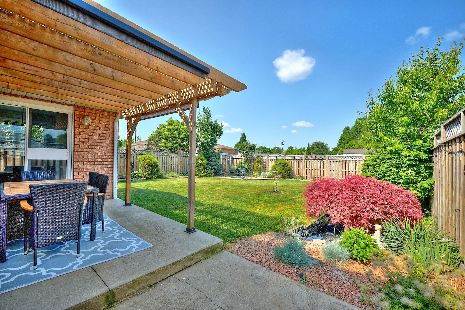 • Fully fenced yard with pergola, perfect for summer gatherings.