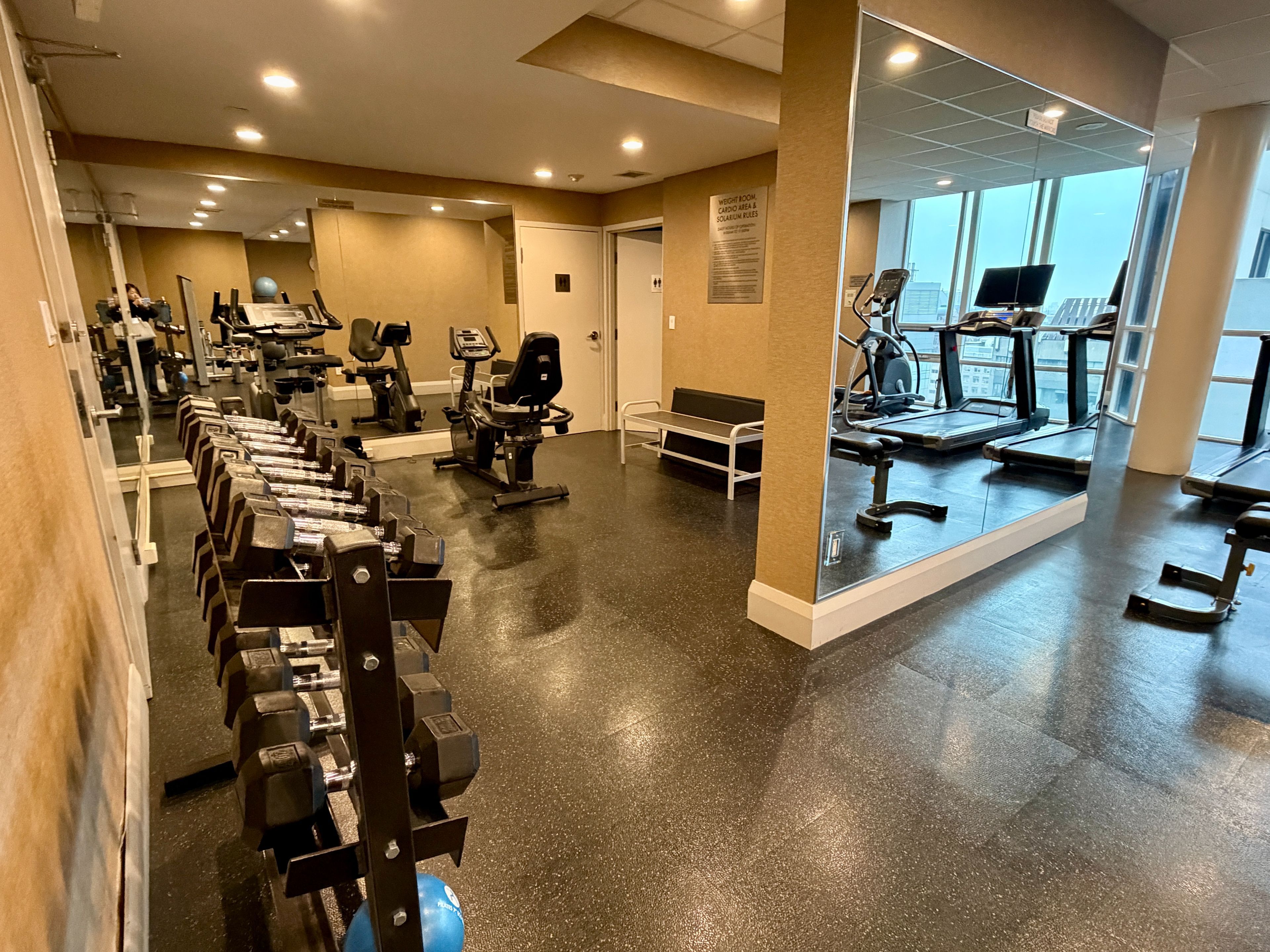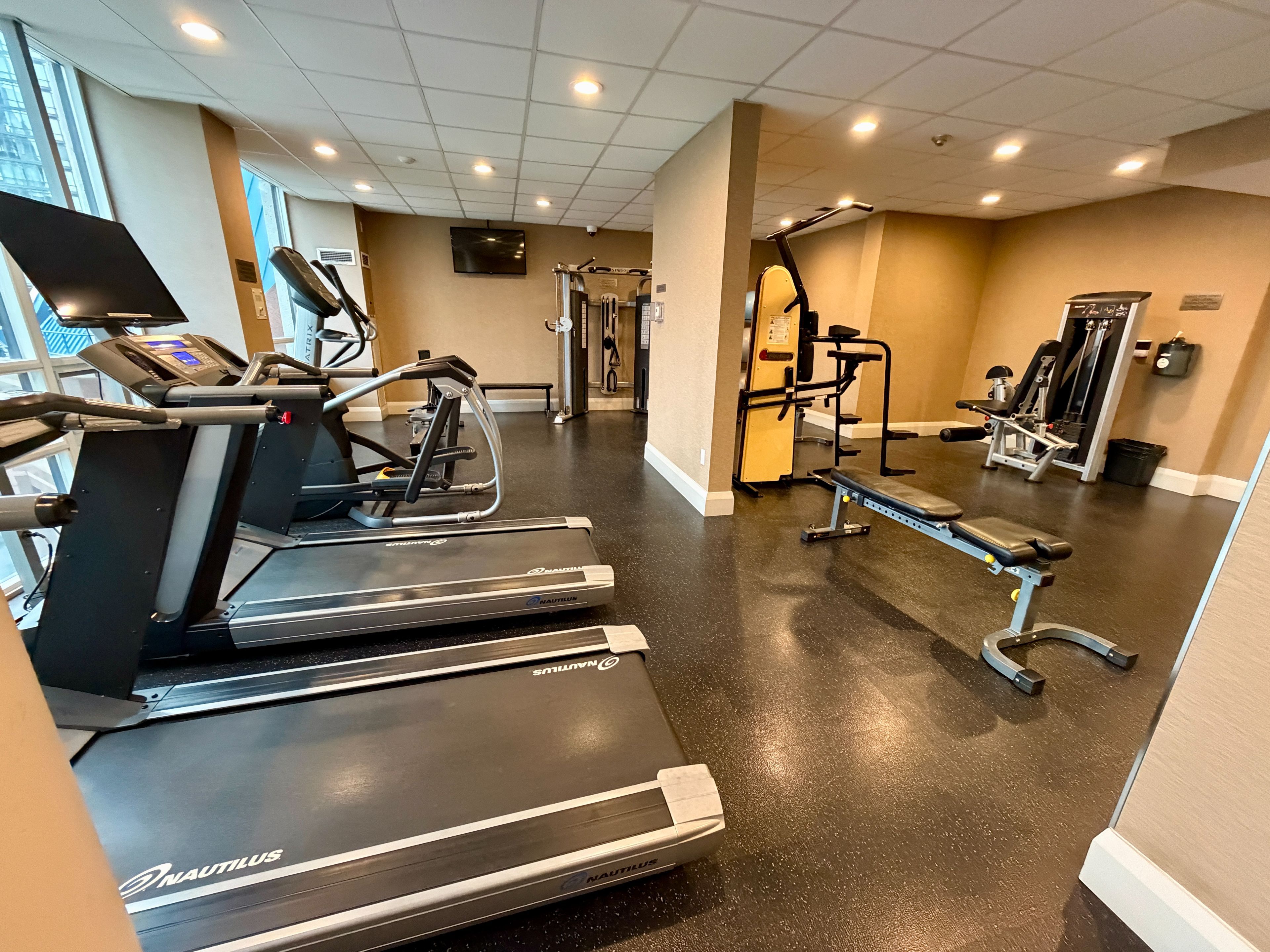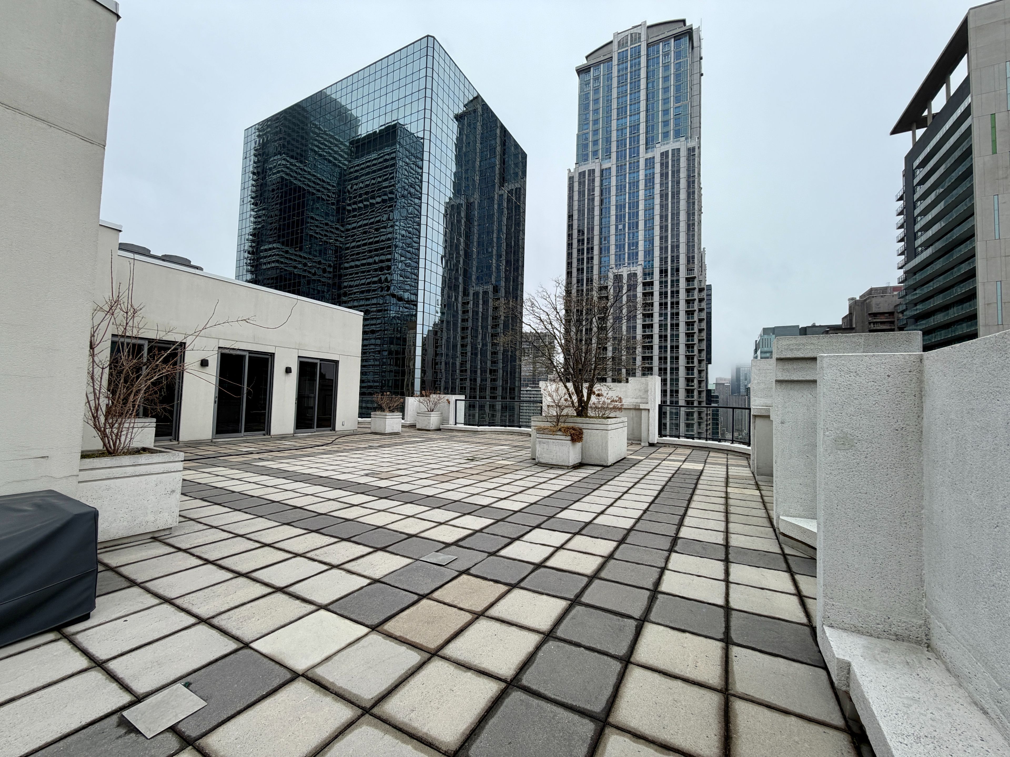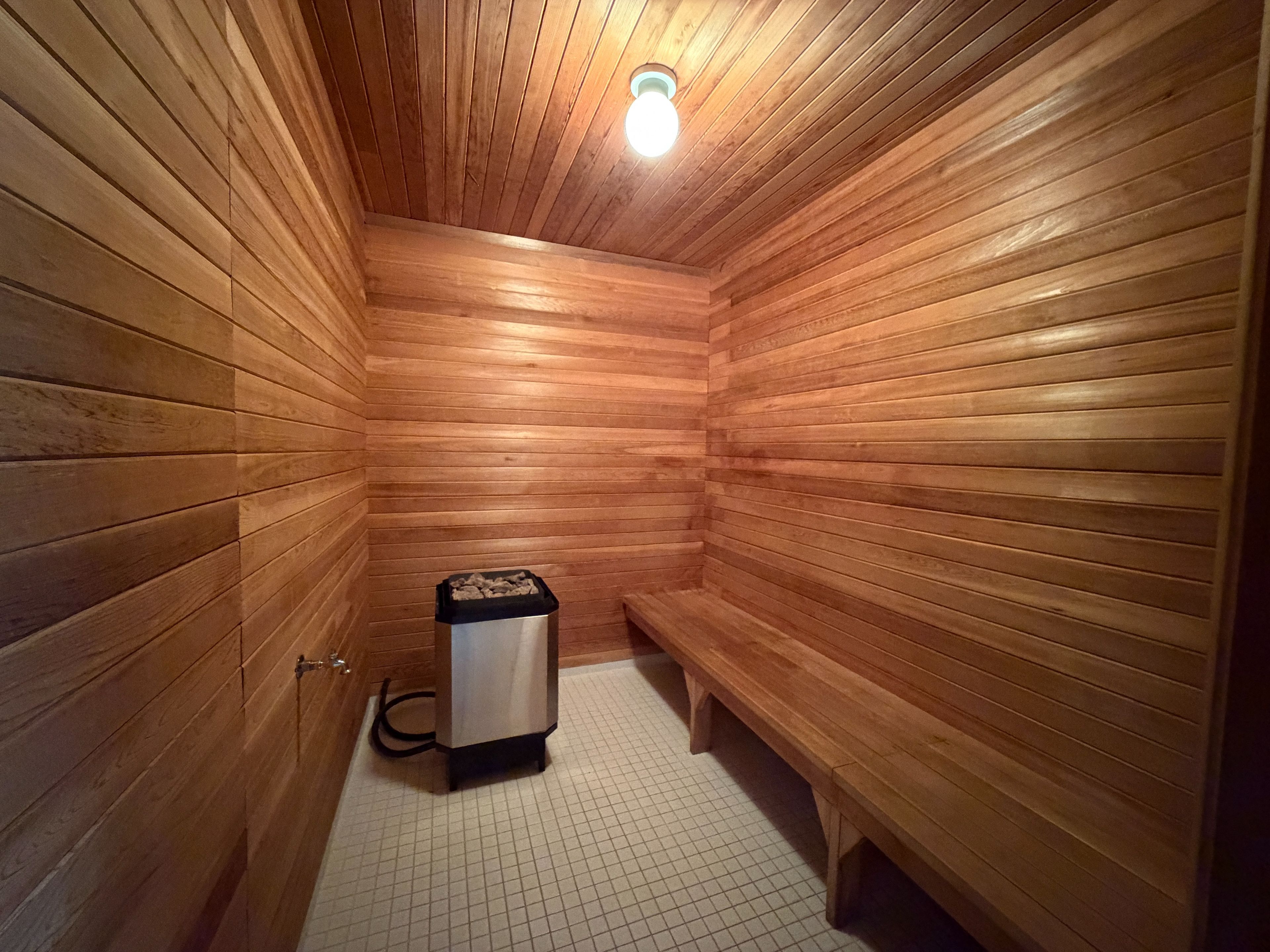 • Building offers amazing amenities like a gym, sauna, and rooftop terrace.
