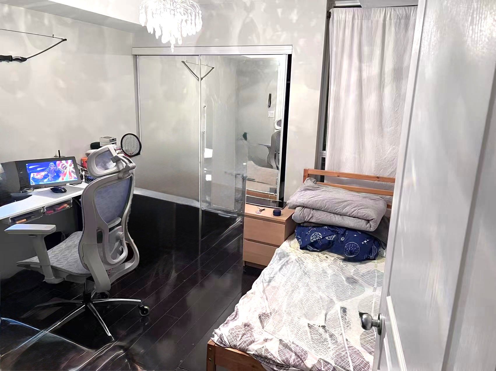 • Spacious primary bedroom with floor-to-ceiling window and ensuite bathroom.