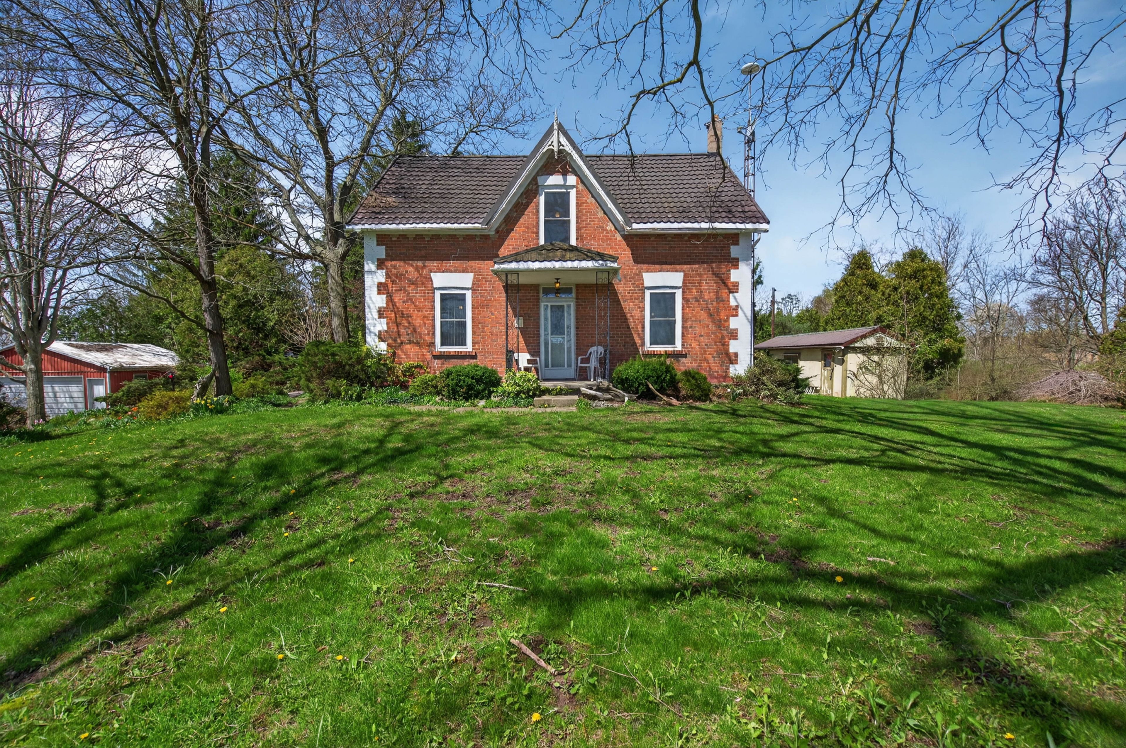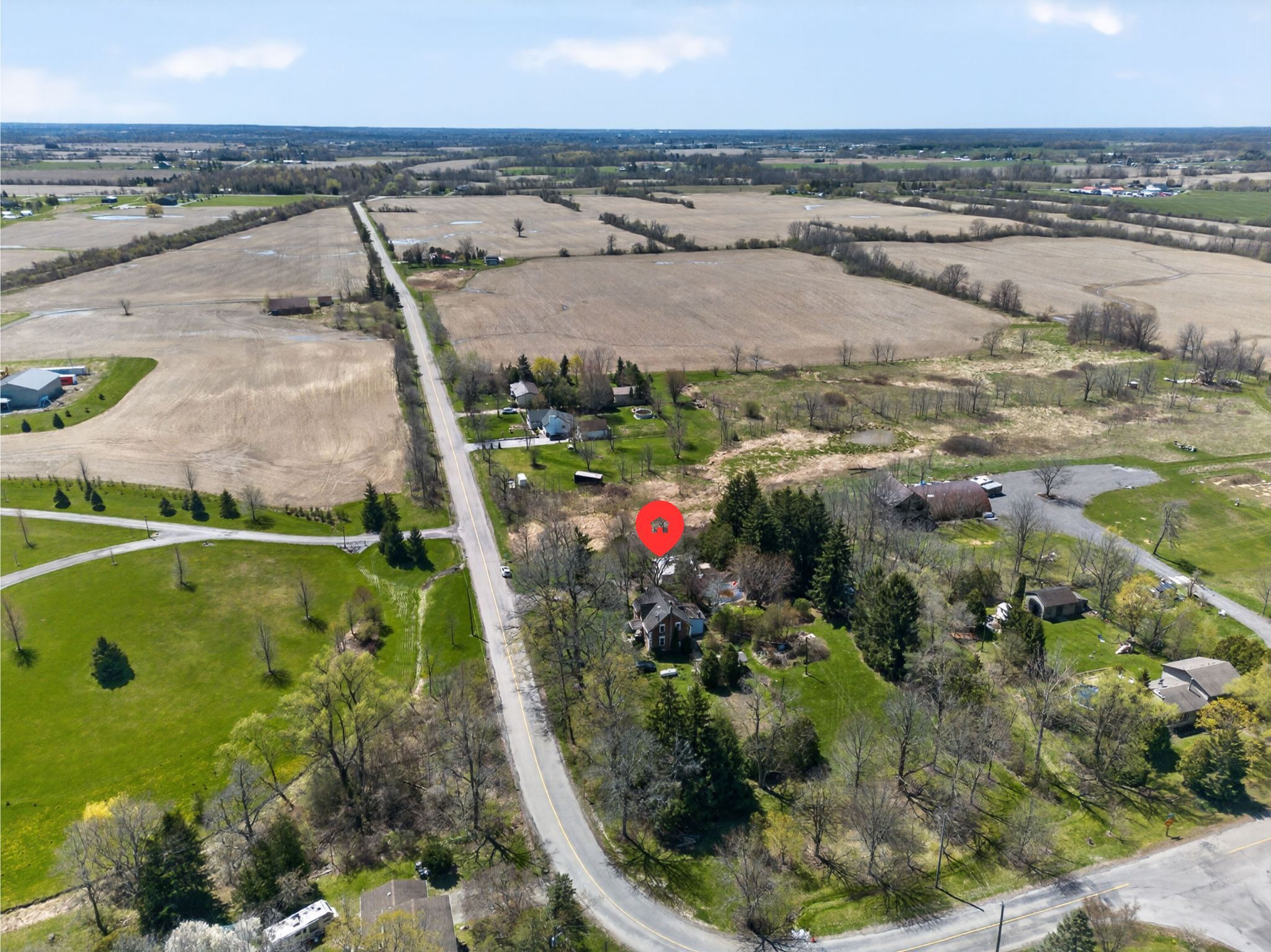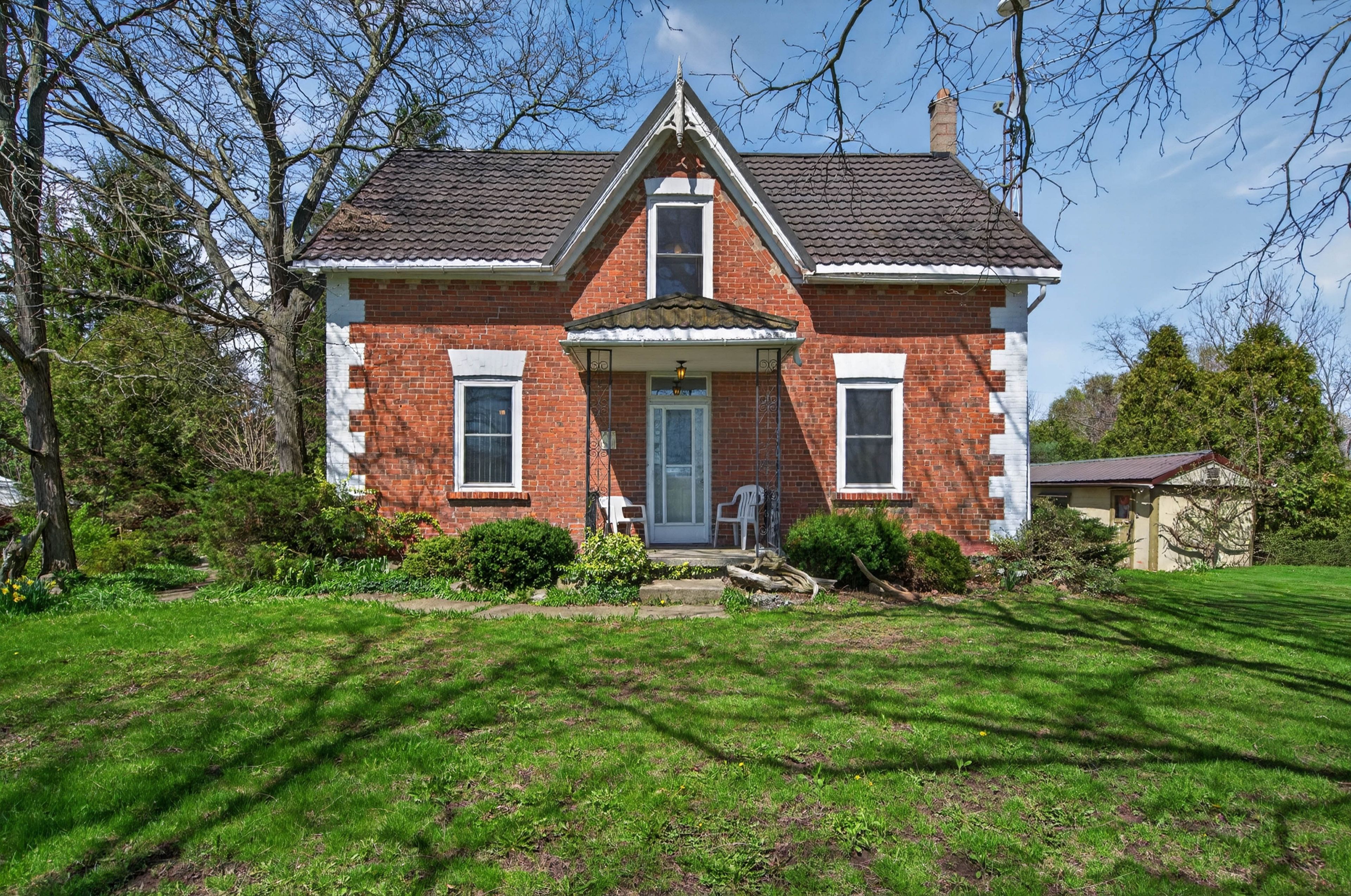 Situated at the end of a quiet country road, this 1. 392-a property offers a rare blend of privacy, character, & long-term potential. Framed by mature trees on a picturesque 200' x 300' lot, this circa 1892 farmhouse showcases timeless charm w/ subtle gothic revival influence & a welcoming covered front porch. Inside, the 1,958 sq ft 2-stry layout offers a traditional yet functional design. The main lvl feat a foyer, formal liv rm w/ a decorative beamed coffered ceiling w/ rustic timber grid, formal dining room, private study, & an eat-in kitchen w/ built-in bench seating. A bright family rm anchors the home w/ expansive rear-facing windows, built-in cabinetry, & a striking fieldstone feat wall w/ a raised hearth. A 4-pc bath completes the lvl. Upstairs, 4 bdrms & a 2nd 4-pc bath are complemented by a 2nd kitch, previously used as an in-law suite - ideal for multi-generational living or future flexibility. The unfinished lower lvl incl laundry, storage, a workshop, and a separate walk-up entrance with direct exterior access. Outdoors, the lifestyle offering continues with a detached 3-car garage, parking for 10+ vehicles, an on-ground pool, a private pond, and multiple outbuildings. Dense rear foliage creates a peaceful, cottage-like setting with stunning vistas and minimal road traffic. Positioned east of highway 6, this location delivers the best of both worlds - a quiet rural setting with seamless access to the hamilton mountain (10 minutes) and caledonia (7 minutes). Enjoy efficient commuting, proximity to major amenities, and the flexibility of country living without isolation. Recent updates include a 200 amp panel (3 years), central air (3 years), septic tank (5 years), propane furnace (5 years), well pump (2026), water softener, reverse osmosis system, many windows, rental propane tank, & more (all dates approximate). A home requiring tlc, yet rich in character and opportunity - ideal for those seeking space, privacy, and the ability to add value over time.