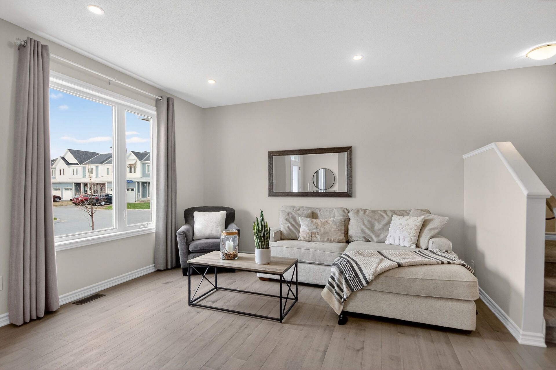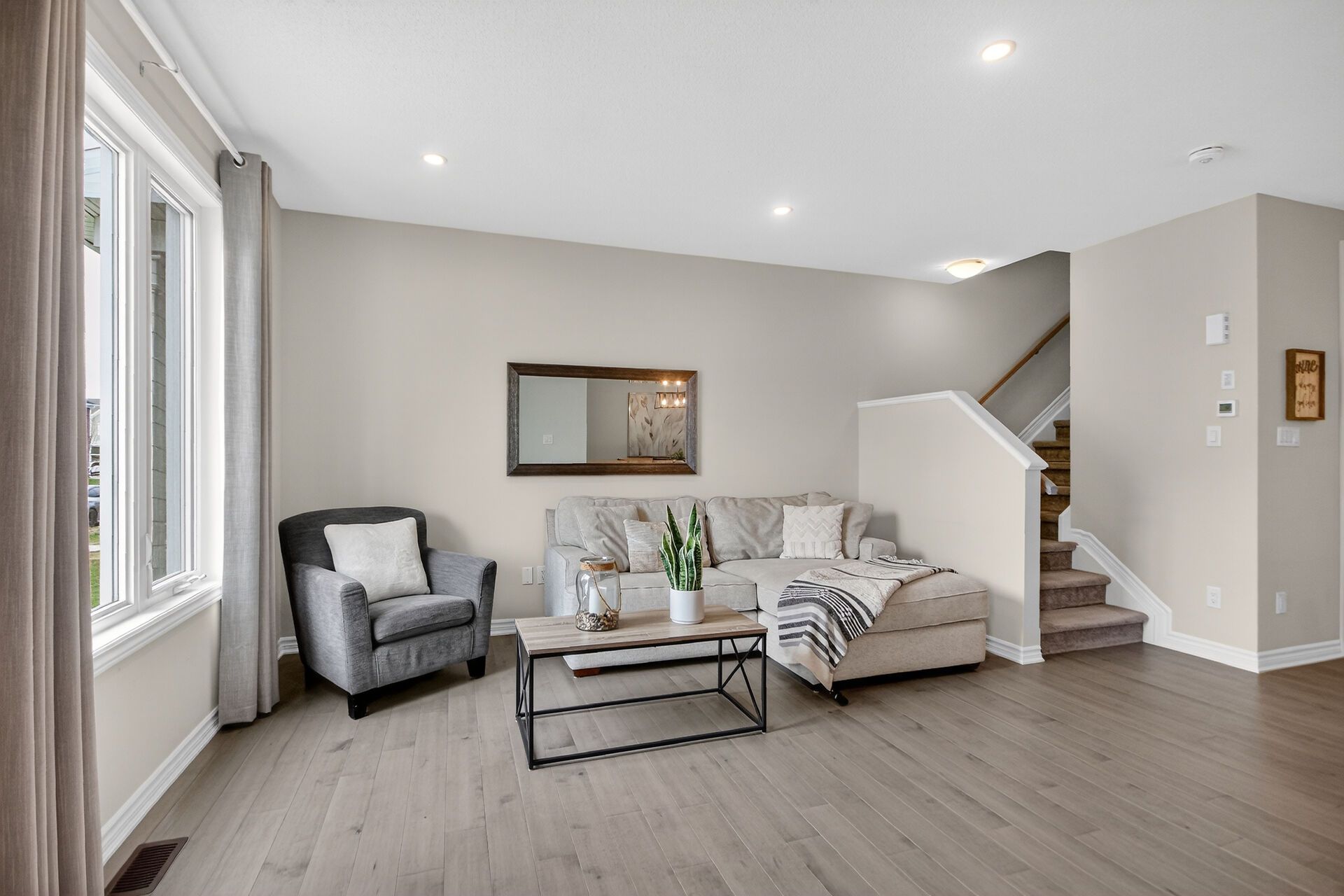 • Open-concept main floor with bright living and dining areas.