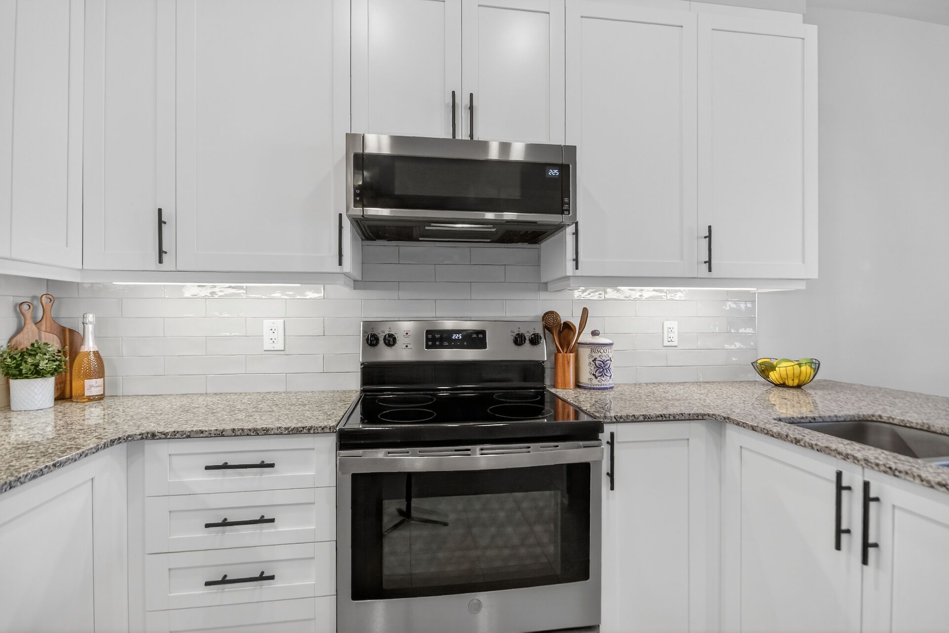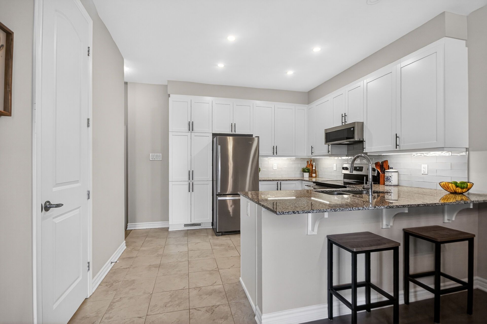 • Gourmet kitchen featuring granite countertops and stainless steel appliances.