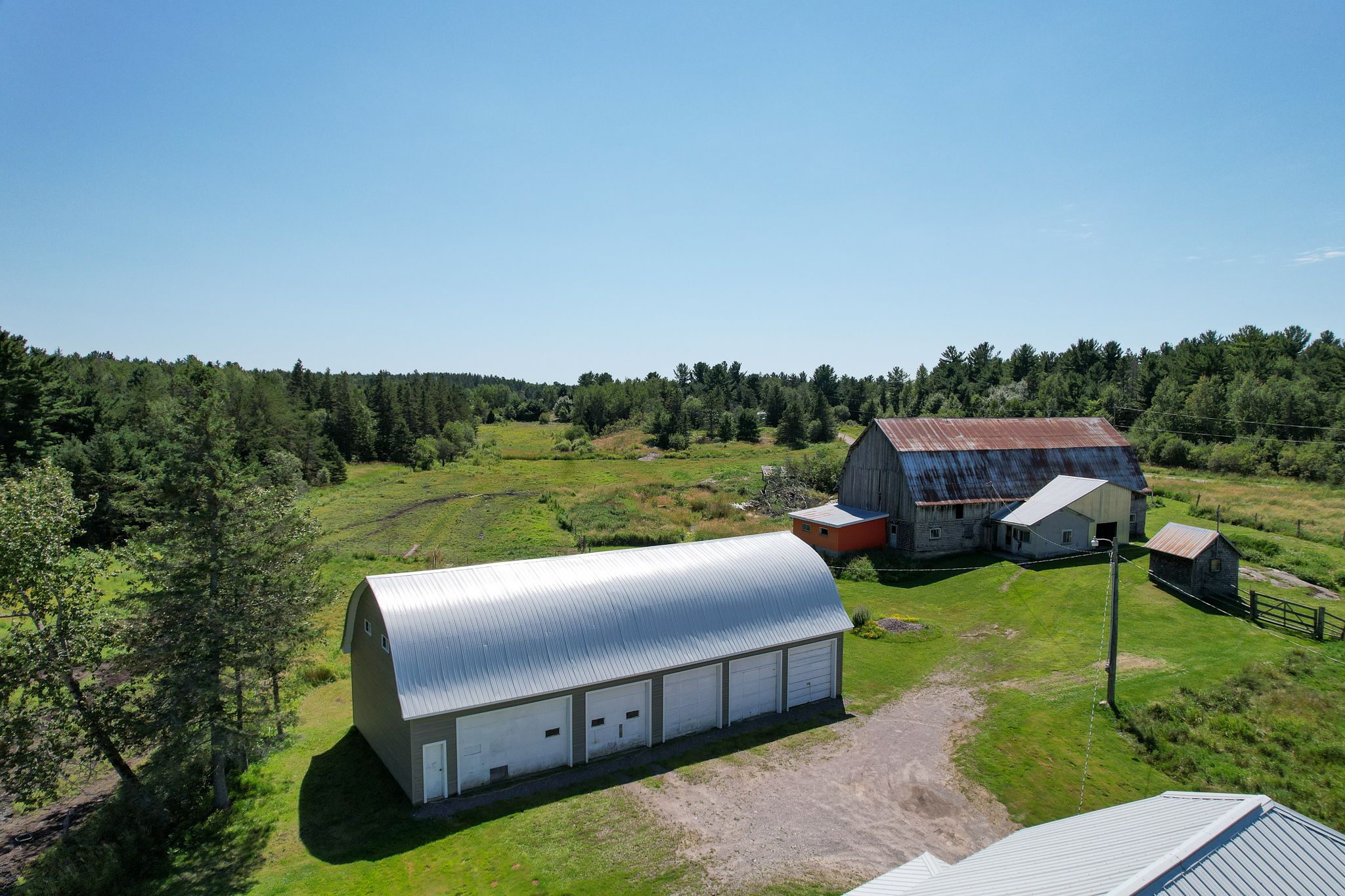 • Detached garage with five doors offers ample storage for vehicles and equipment.