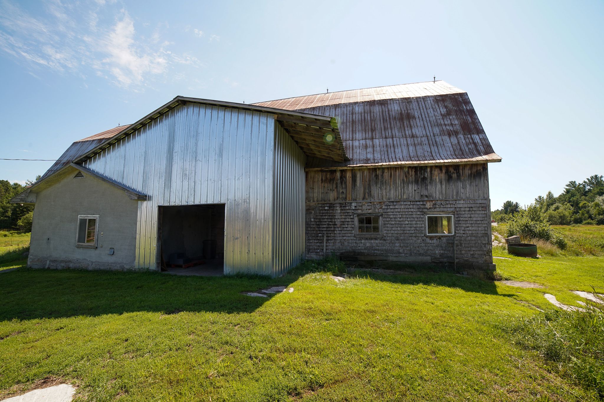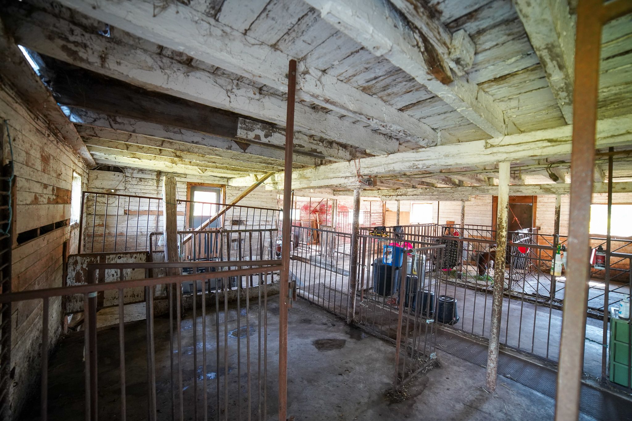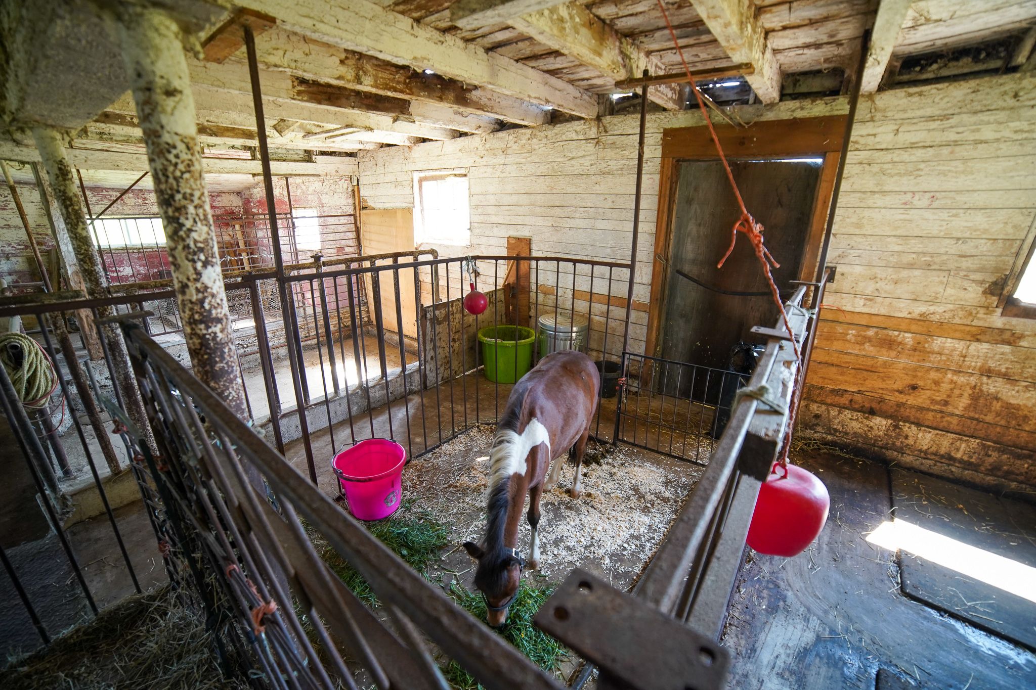 • Large barn with multiple horse stalls and running water for convenience.