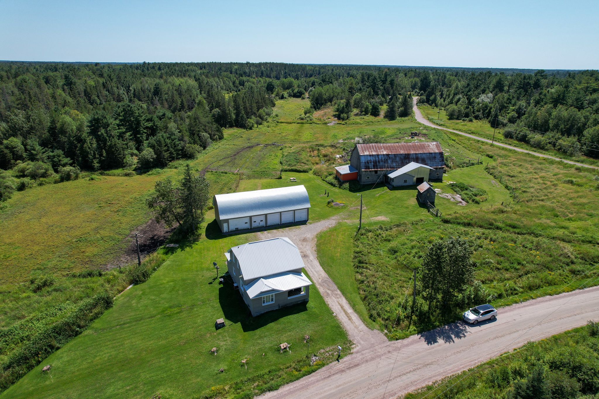 "attention hobby farm enthusiasts"- situated on 104 acres, this hobby farm, originally ran as a dairy farm and now houses 5 horses. The barn is 83' x 33' with 8-10 horse stalls, running water available from a newly drilled 200' well at the house, plus a chicken coop along with a detached 5-door garage with mezzanine, for your year-round toys. The property is located half way between north bay and sudbury, having a 904' x 5533' lot, 20% cleared, 80% bush/treed with trails throughout. Built in 1960, this farmhouse is in prestine condition with 4 bedrooms upstairs, 1-4 pc bath, open concept main floor area, plus a 1-2 pc powder room, vinyl windows and doors, full unfinished basement with a walk-up and tons of storage. Heated by forced air oil with central air. Barn, garage, and house have metal roofs. Shows pride of ownership !!!