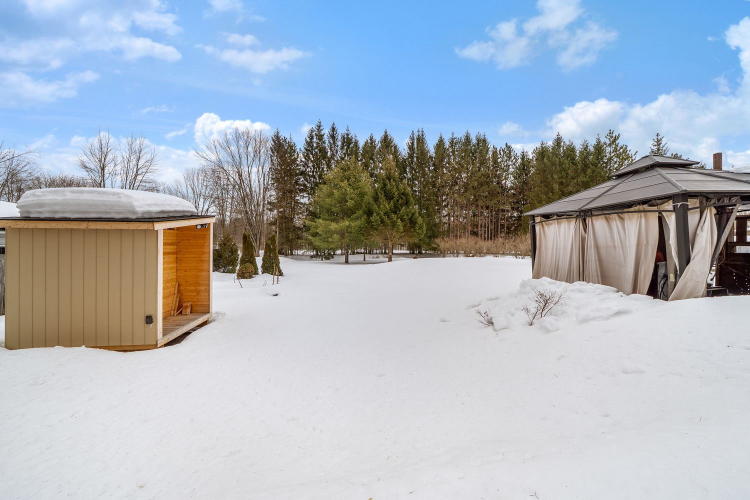 Safe and family-friendly neighbourhood in the heart of beautiful washago. Welcome to 8020 park lane cres, offering a move-in ready raised bungalow, sitting on just over a half acre, with a large private driveway, metal roof, and stunning new modern kitchen! As you drive in past green river and boat launches offering km's of boating or kayaking, you'll come down a quiet street to this lovely home. Enter through a front deck into the main foyer where subtle country side living meets modern design for a warm and inviting entrance heated and cooled from a newer heat pump keeping cost and maintenance low. You'll immediately be drawn to this amazing kitchen featuring high-end modern appliances, large tile floors, quartz countertops, dimmable recessed pot lights and a clean aesthetic design. The main floor offers a large living room that boasts natural light and feels cozy with a gas fireplace. It also includes two spare bedrooms, a large primary bedroom, and an elegant four-piece bathroom with hardwood floors throughout. A walkout to back porch for access to the backyard from the kitchen is amazing for family barbecues and get togethers. Downstairs, a massive recreation room with another gas fireplace greets you, offering endless potential for larger families & in-laws, or providing space for children to play. The downstairs area also offers a bedroom, a three-piece bath, laundry, storage, and a utility room equipped with a brand-new lifebreath ventilation system and hot water tank. No big-ticket items are needed with this beautiful home that's easy to maintain and ready for you to make your own. Severn river is steps away from your backyard with local amenities and the highway within easy reach. If you're looking for an affordable home for a growing family or first time buyers, look no further!