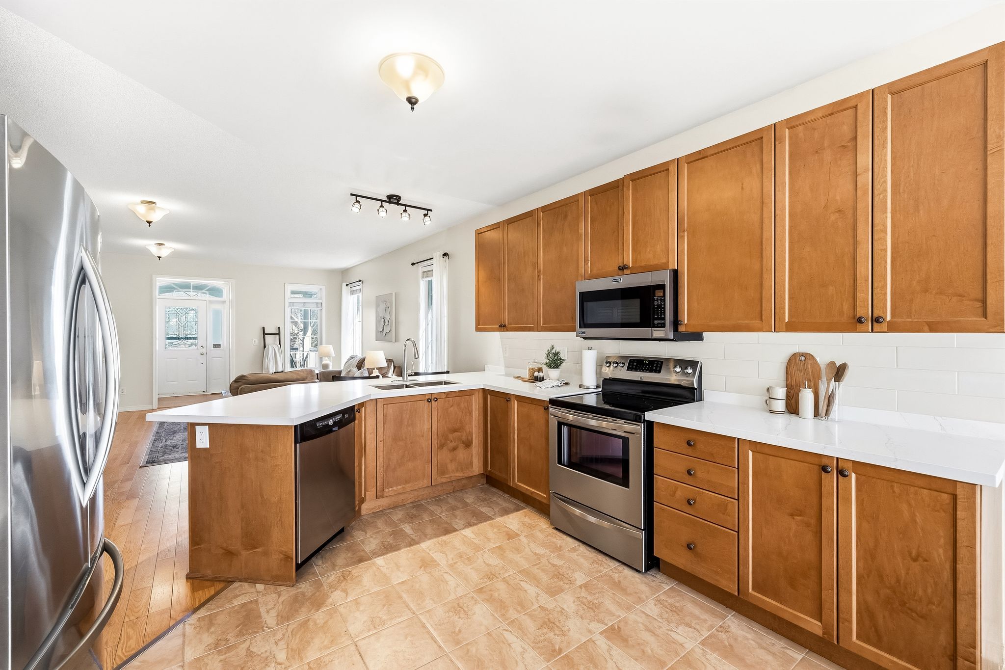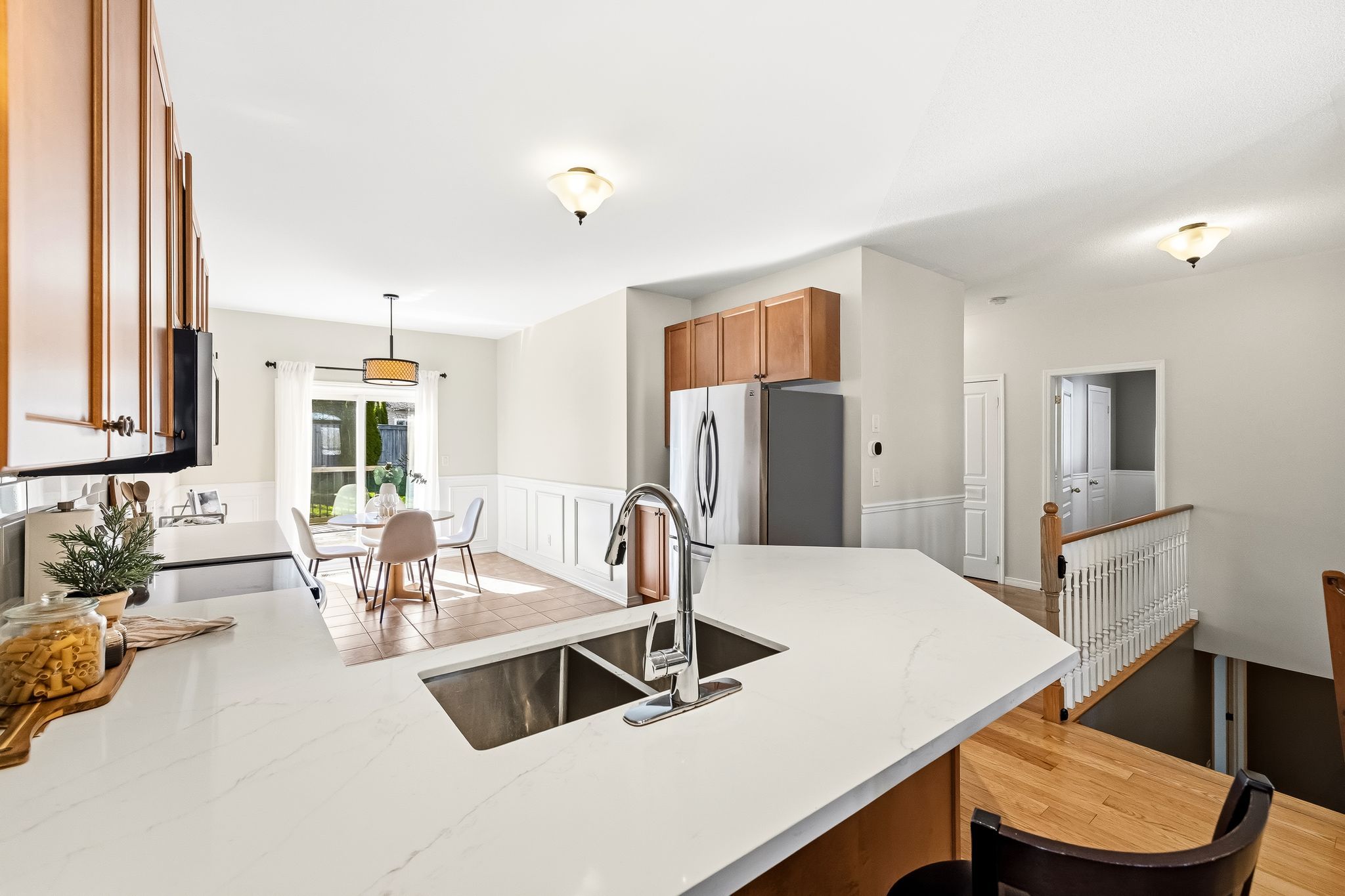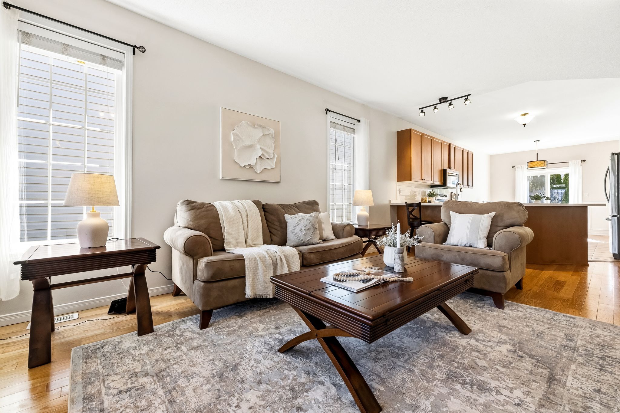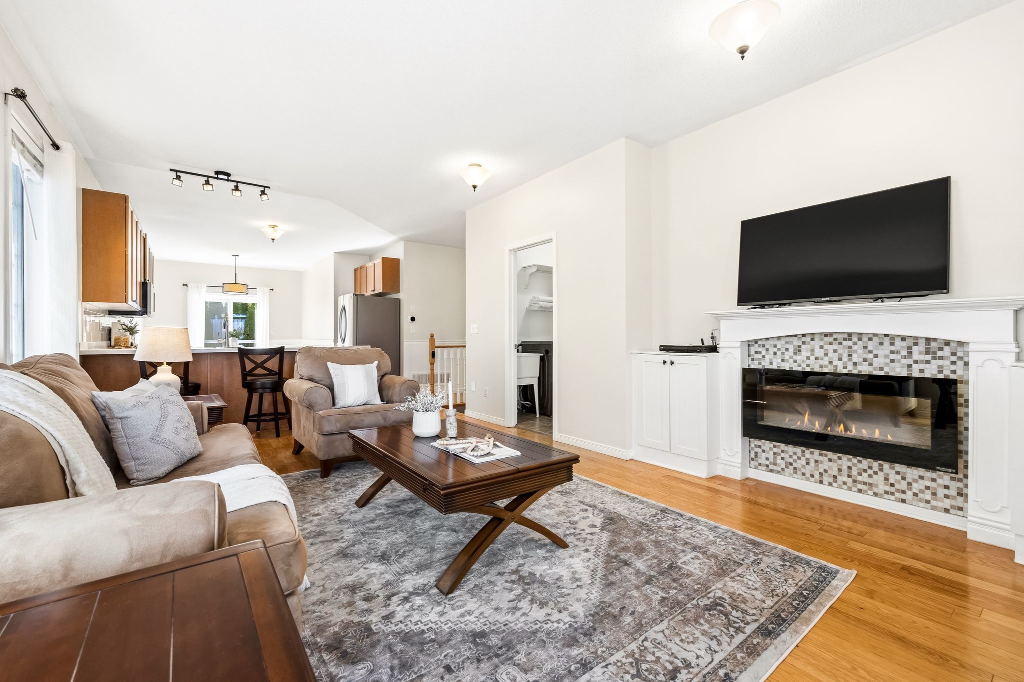 • Open concept main floor with updated kitchen and seamless living space.