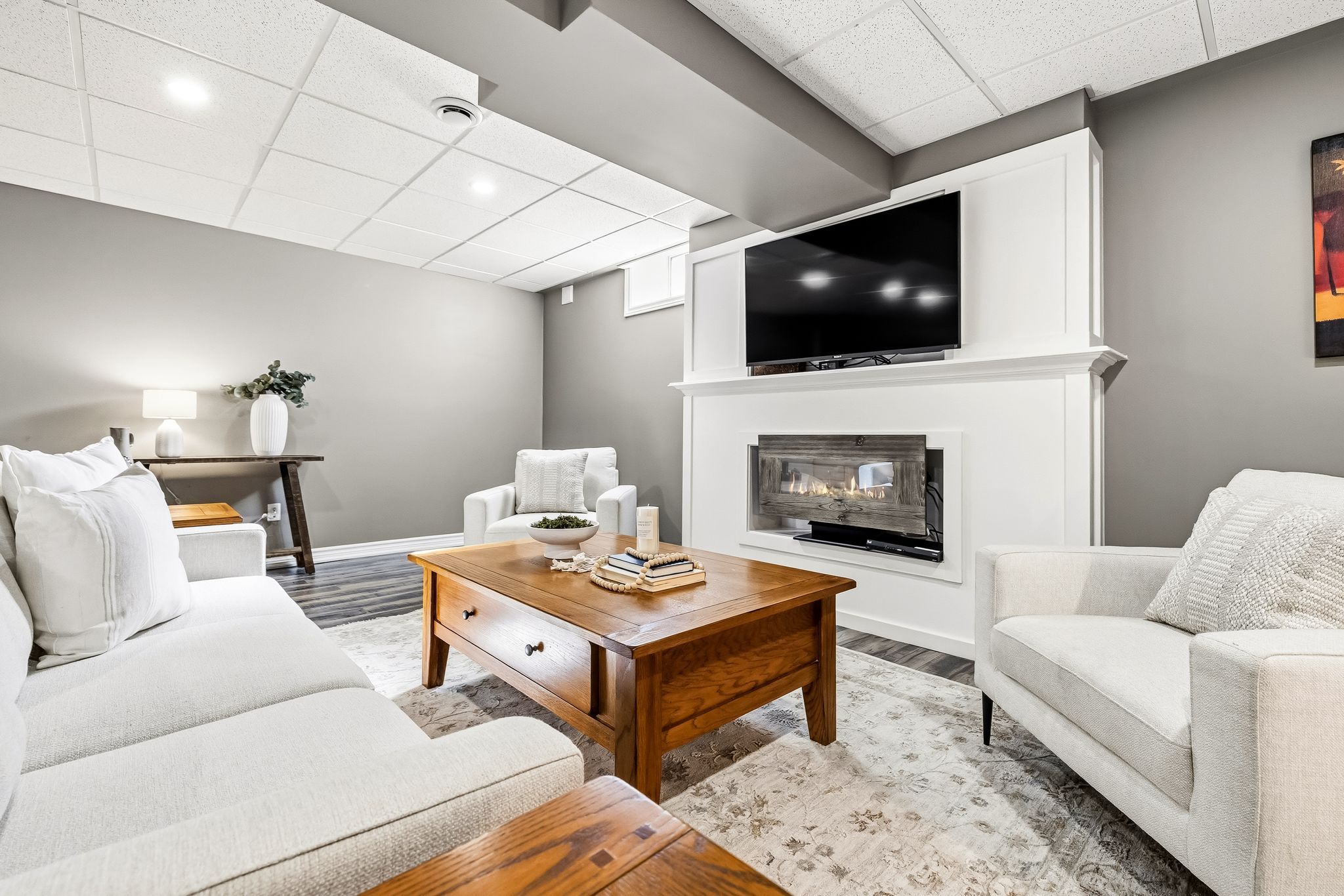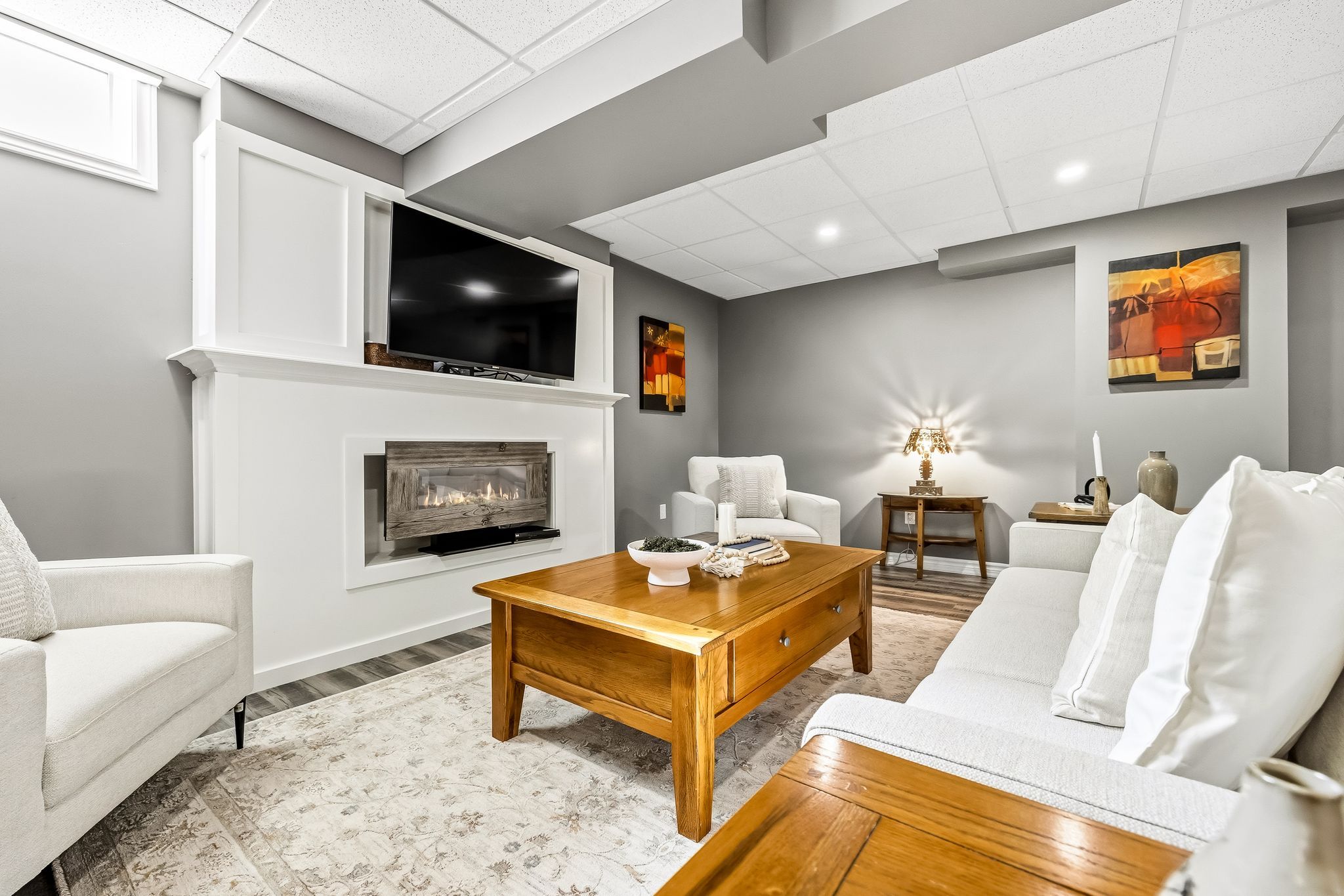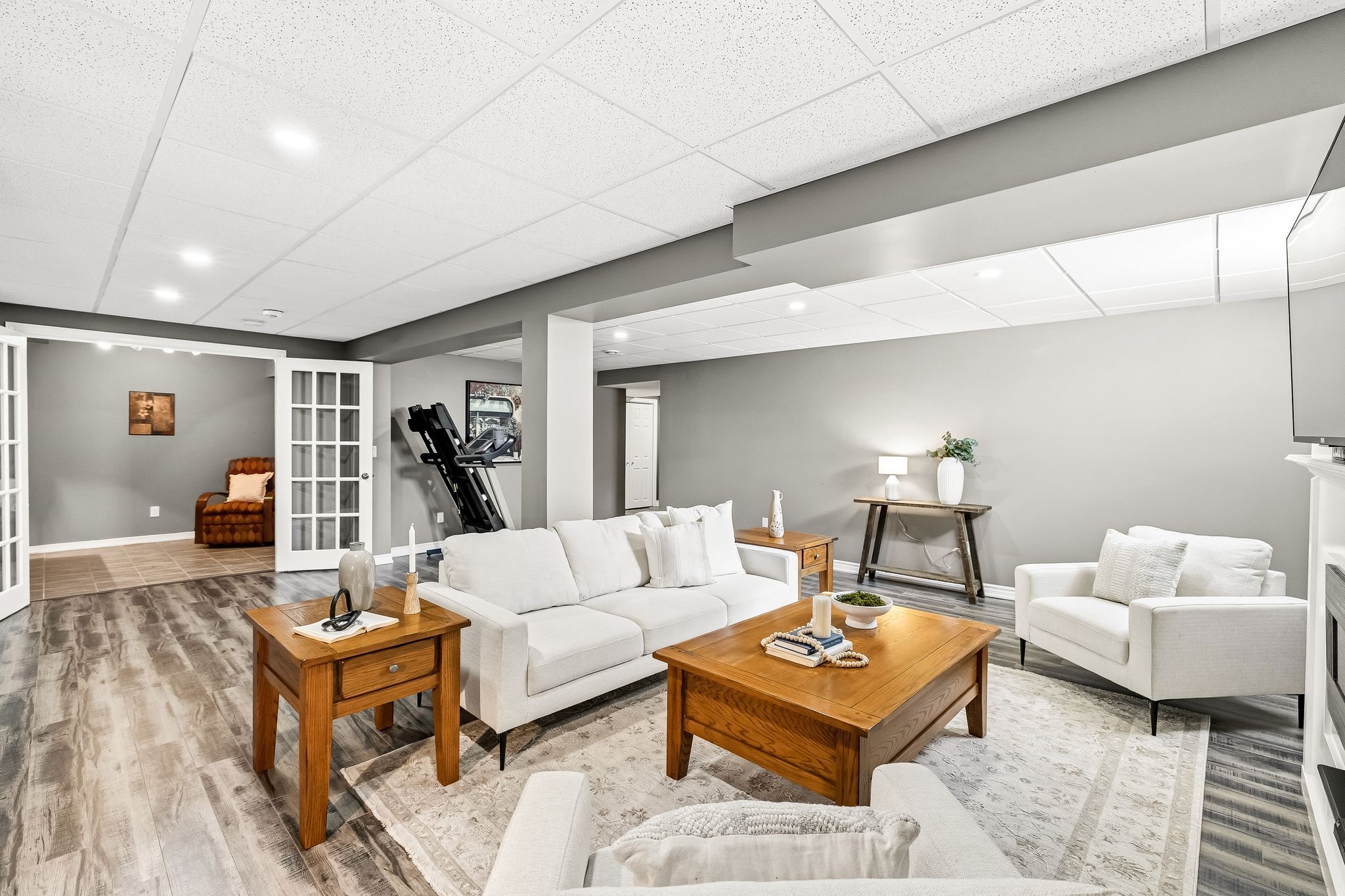 • Finished lower level with family space, storage, and potential third bedroom.