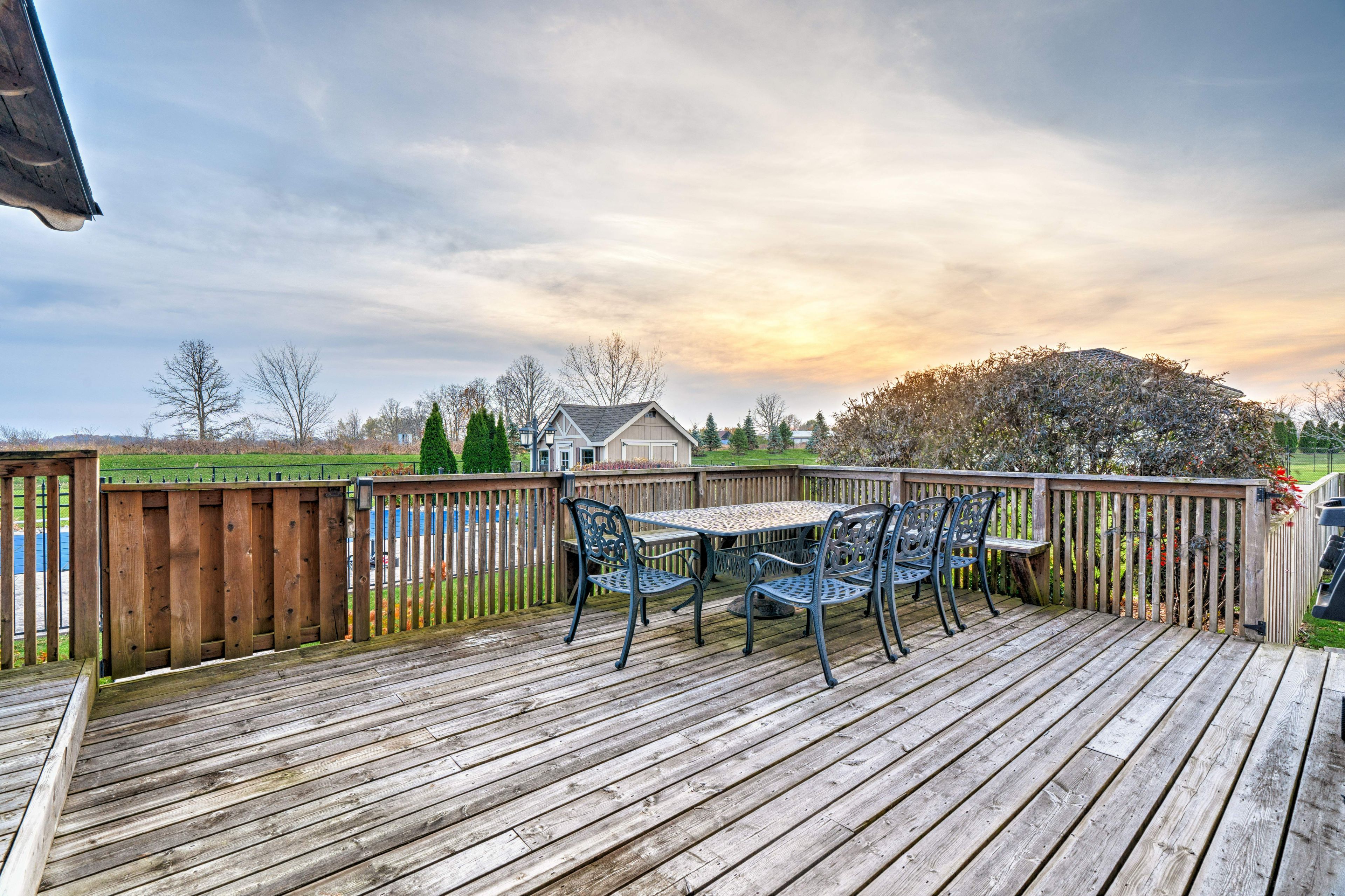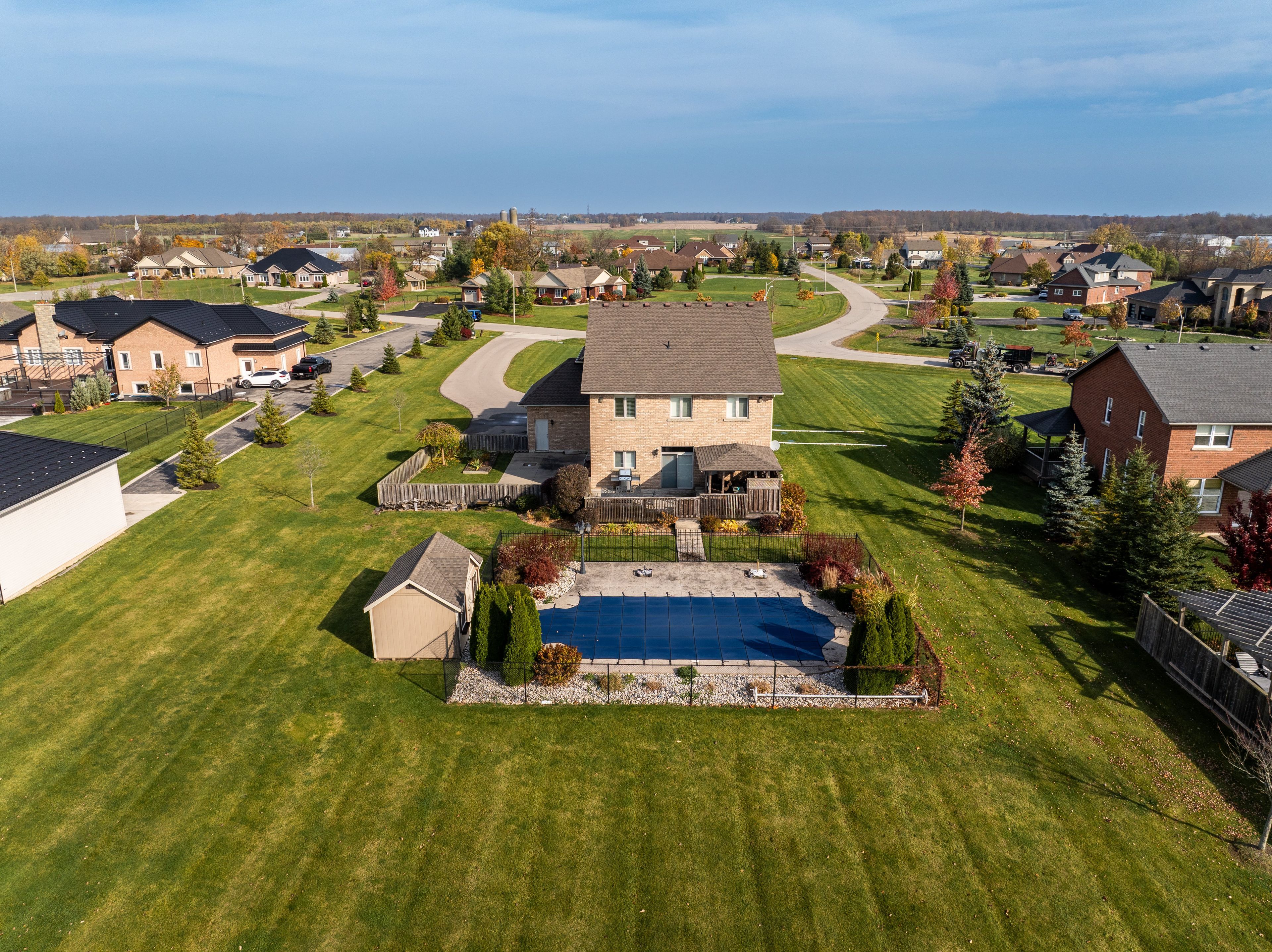 Experience this exceptional custom-built country home that perfectly balances country living with nearby city conveniences. Nestled on a private 1. 35-acre lot with no rear neighbors, this impressive 4-bedroom, 4-bathroom residence provides over 3,000 sq. Ft. Of refined living space, perfectly suited for both family life and entertaining. The home welcomes you with a striking foyer and soaring ceilings, flowing seamlessly into elegant living and family rooms anchored by a cozy fireplace. At the heart of the home is a chef-inspired kitchen complete with granite countertops, stainless steel appliances, and sliding patio doors that lead to a spacious deck. Outdoor living is a highlight, featuring a heated pool ideal for summer gatherings, barbecues, or simply unwinding while enjoying tranquil rural surroundings. Upstairs, you'll find four generously sized bedrooms, including a spacious primary retreat with two closets and a 5-piece ensuite bathroom. A flexible den offers an excellent option for a home office or study. The finished basement expands the living area with a large recreation room and an additional 3-piece bathroom, making it perfect for hosting guests or social events. Recent updates include an owned hot water tank, roof shingles, and a meticulously maintained heated pool. Combining country charm with modern comforts, this home delivers the lifestyle you've been searching for. Additional updates include an owned hot water tank (2021), roof shingles (2021), and a meticulously maintained heated pool. Pool converted to chlorine (2023), pool heater (2023), and pool pump (2022). The cistern holds 6,000 gallons. Embrace country elegance with modern amenities. Your dream home awaits!