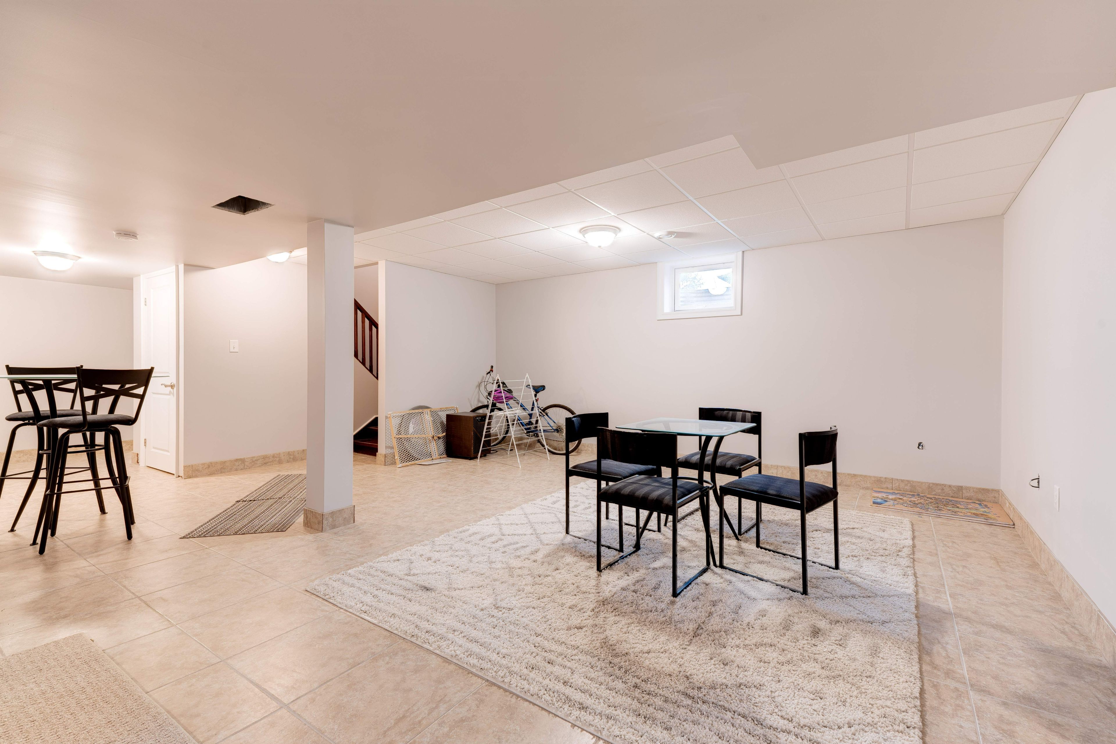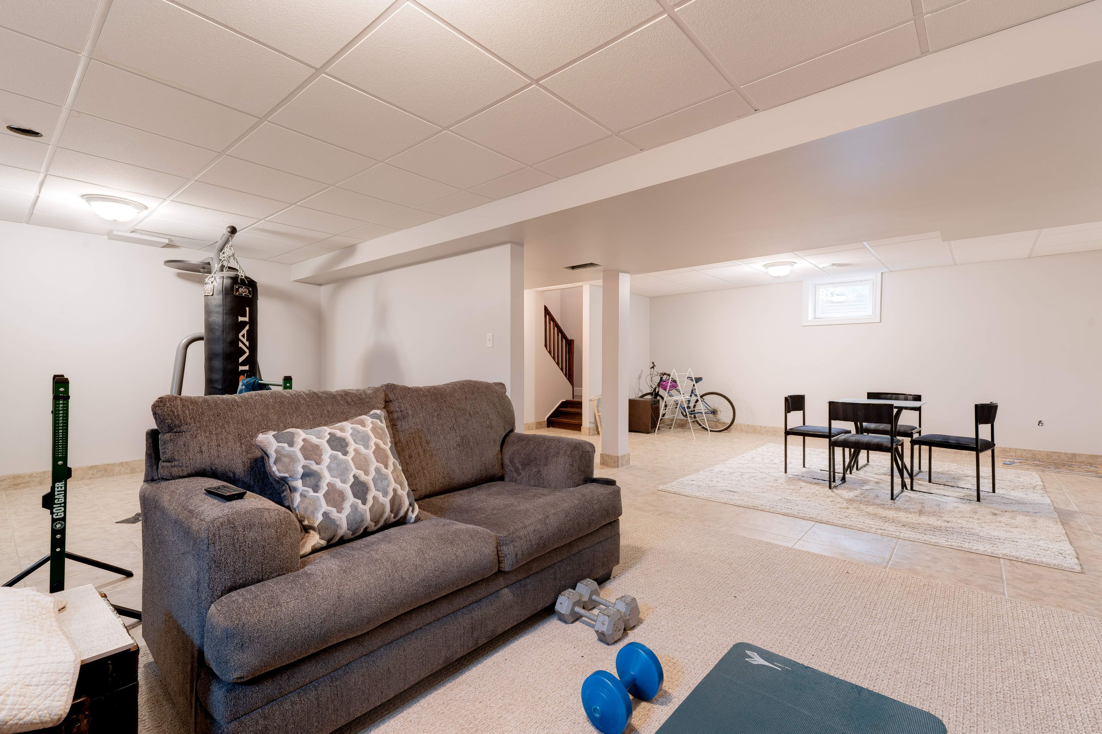 • Finished basement with large recreation room, plus flexible den for home office.