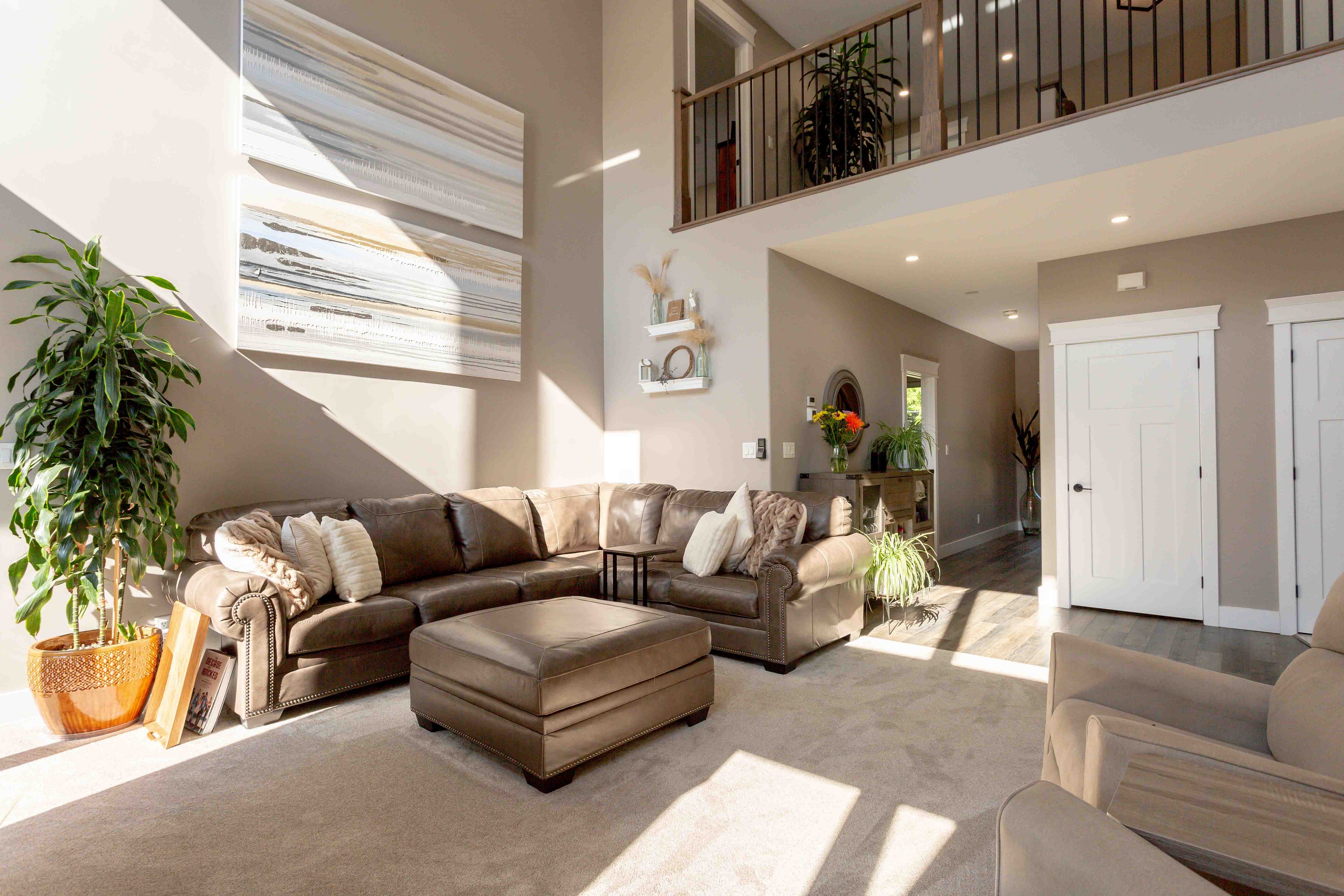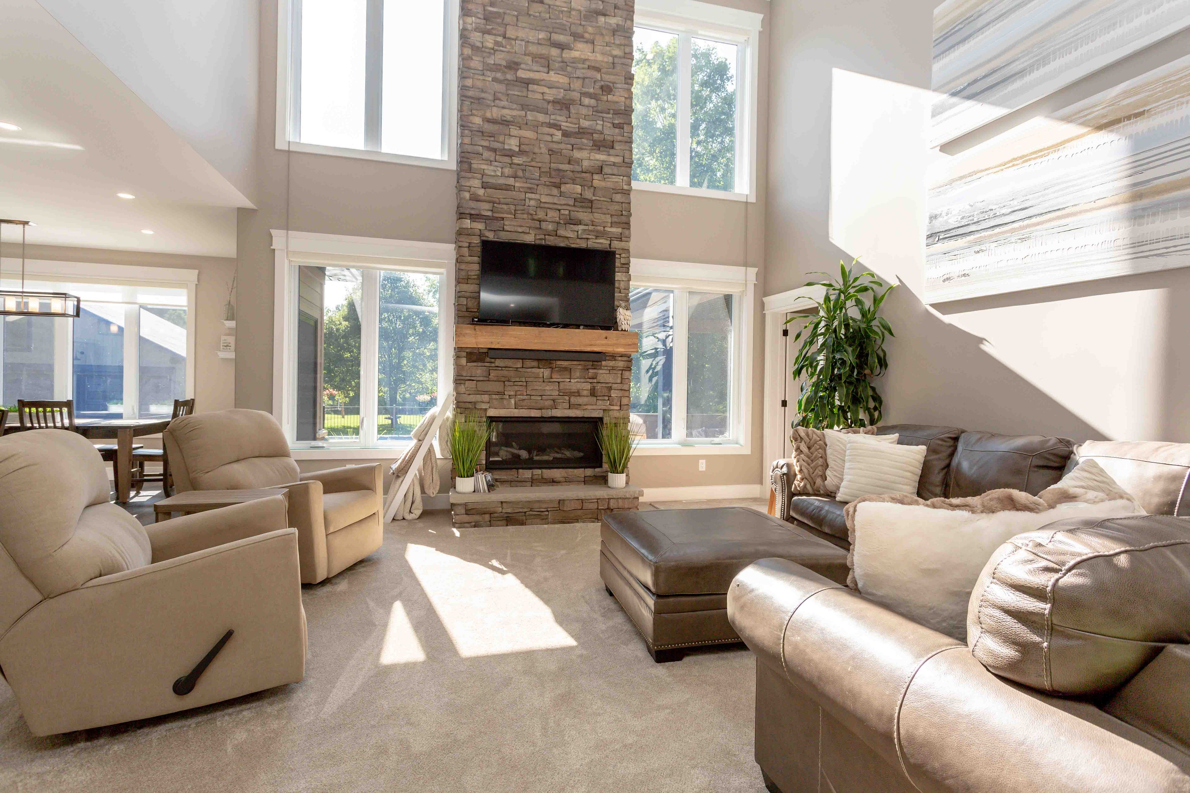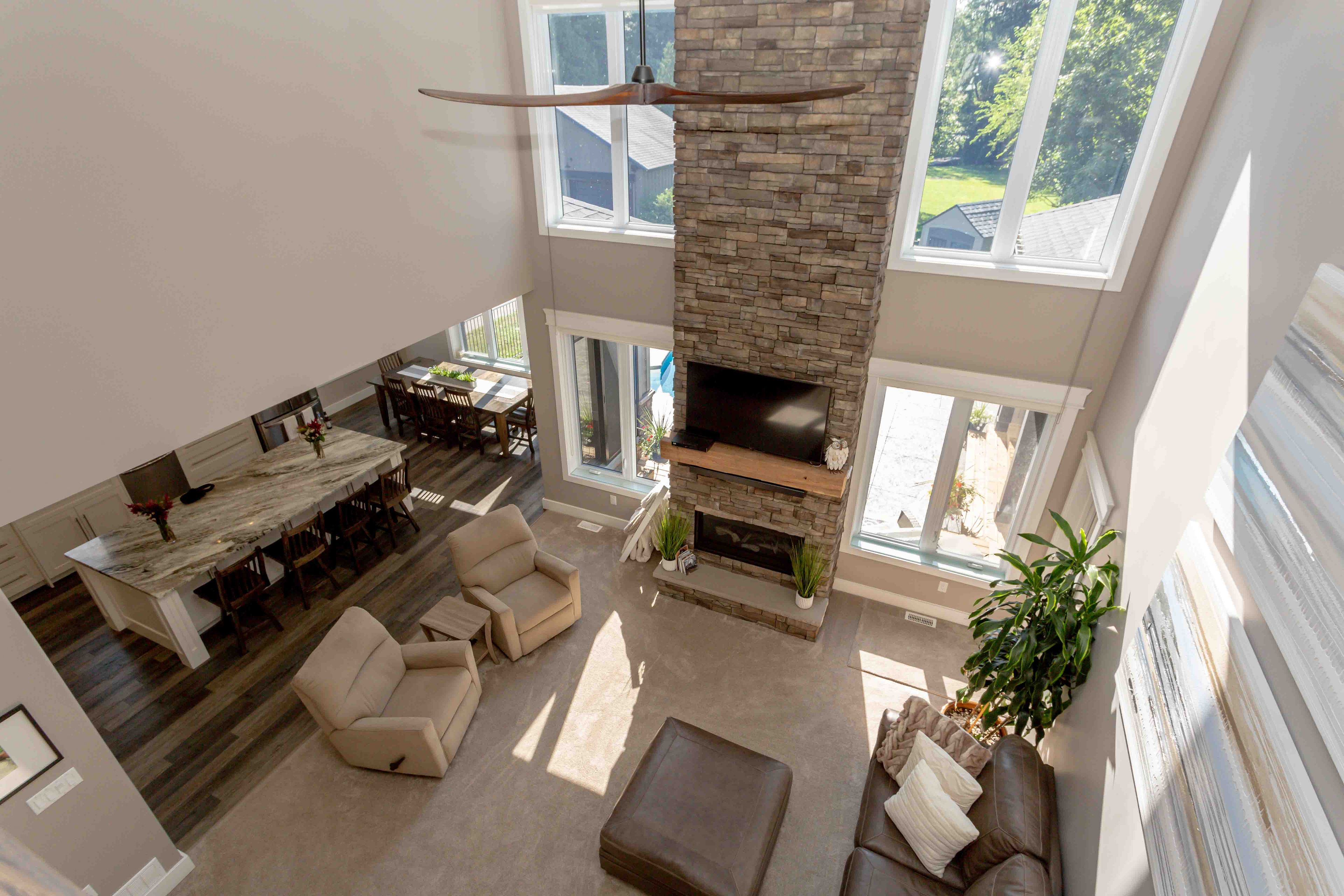 • Warm main living area with cathedral ceilings and gas fireplace.