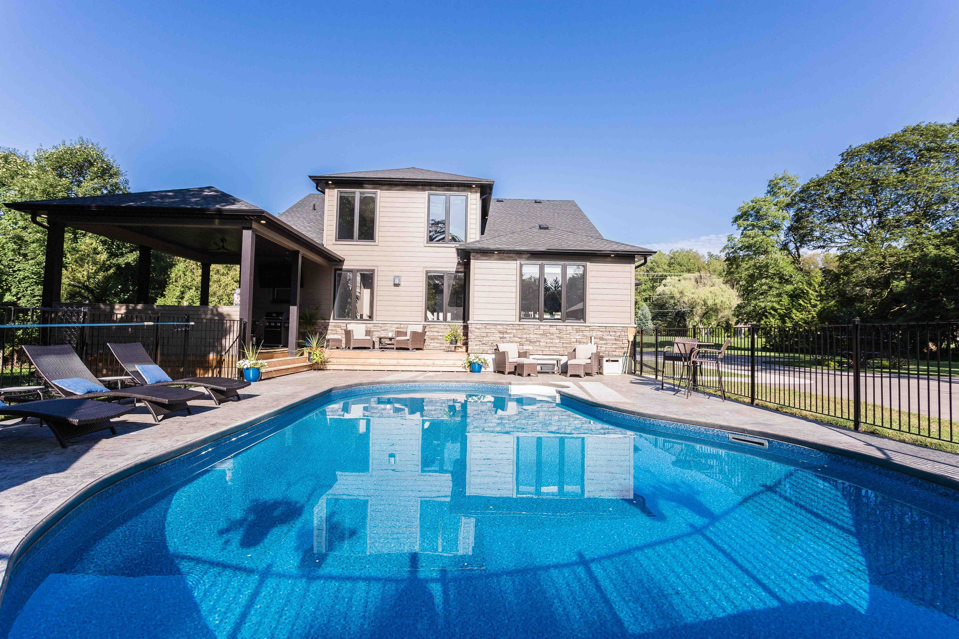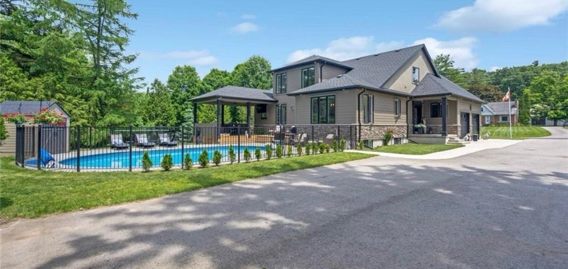 Welcome to peaceful country living on a serene and beautifully treed 1. 3 acre mature lot. This meticulously maintained custom home offers space, comfort, and versatality that is perfect for families, multi-generational living, and those who crave nature right outside their door. The main living area is warm and inviting, featuring soaring cathedral ceilings and a cozy gas fireplace, creating the ideal gathering space. With five bedrooms total, the layout is thoughtfully designed to include a main floor primary bedroom and a fully finished lower level two bedroom in-law suite offering privacy and flexibility for extended family or guests. Additional highlights include main floor laundry, a 2 car garage attached plus a 2 car detached garage, and a heated inground pool perfect for summer entertaining and relaxing in your own backyard oasis. Outdoor enthusiasts will love the lifestyle this property offers. Walking trails and scenic ponds are just steps away making daily walks, family adventures, and peaceful moments in nature effortless. This is truly a nature lover's dream, blending tranquil country living with space for the whole family to enjoy. A rare opportunity to own a private retreat that feels like home the moment you arrive.