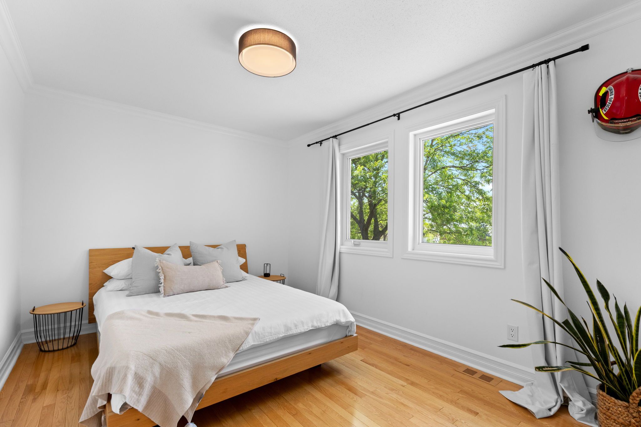• Bright living room with large windows and cozy fireplace for family nights.