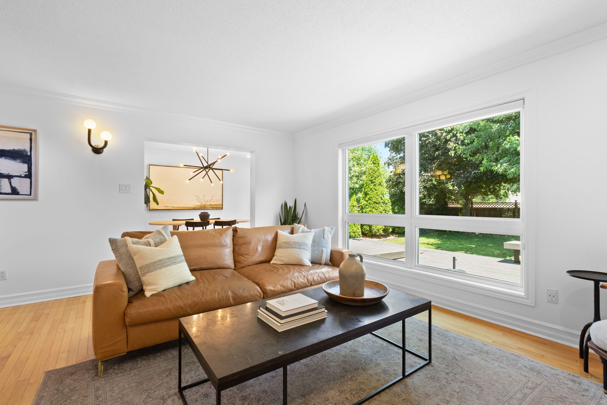 • Bright living room with large windows and cozy fireplace for family nights.