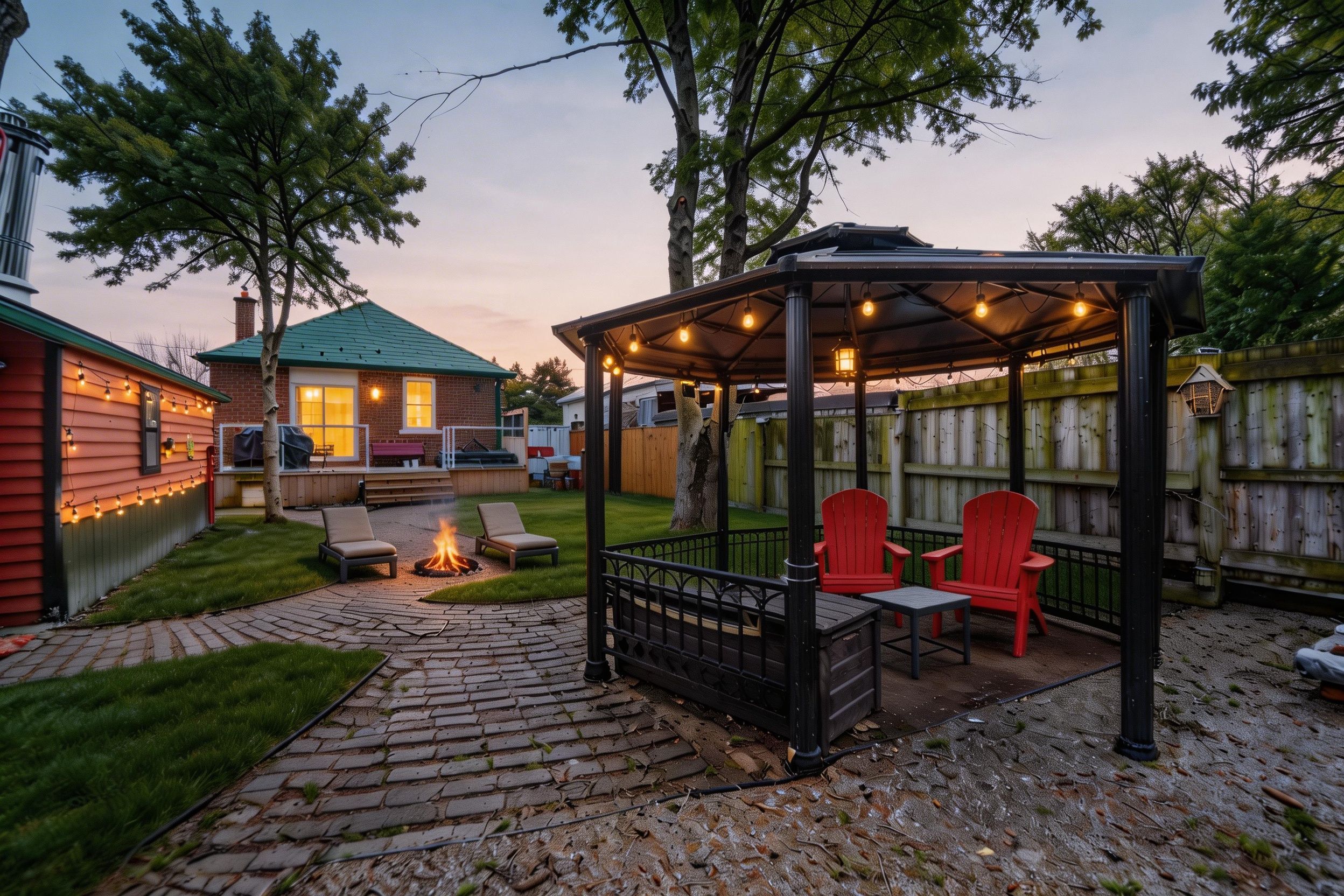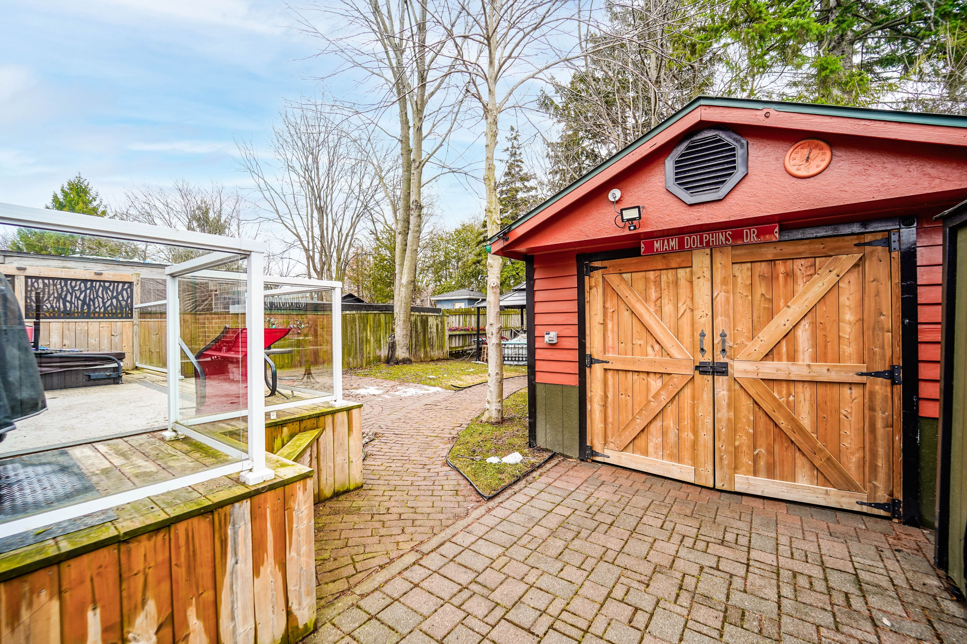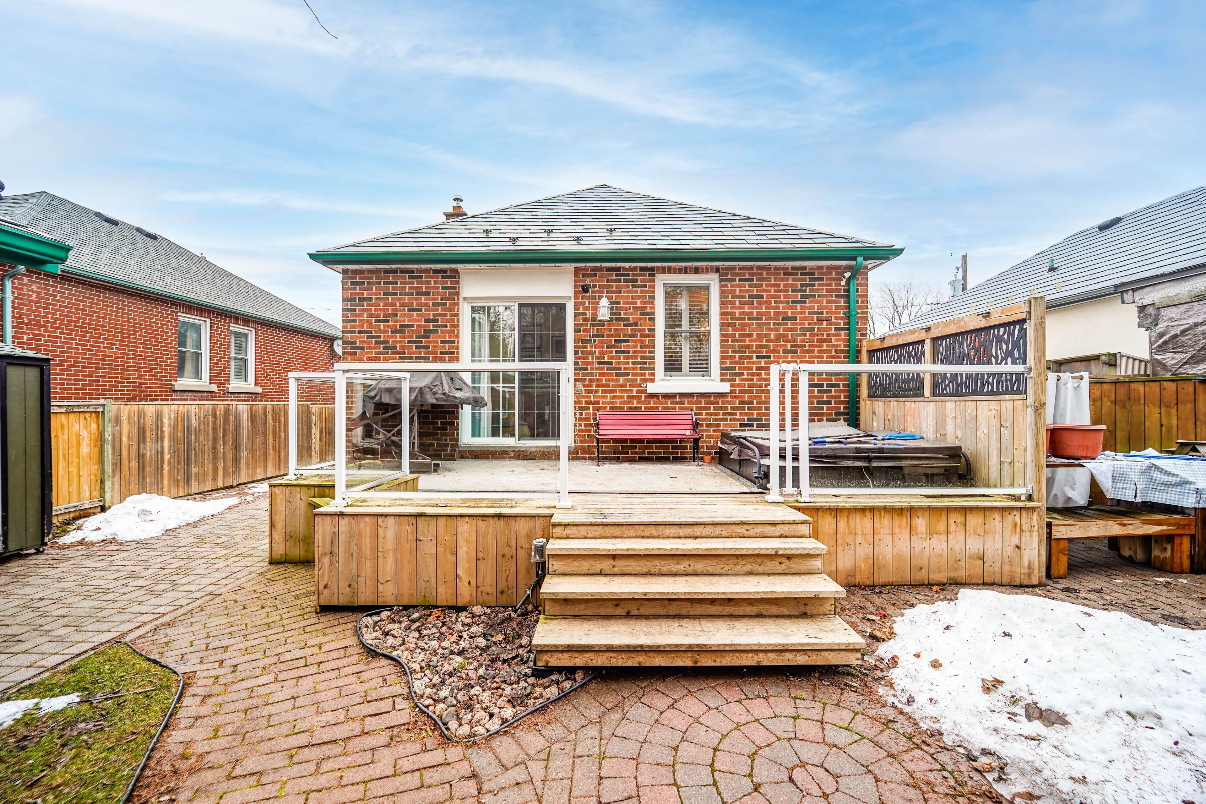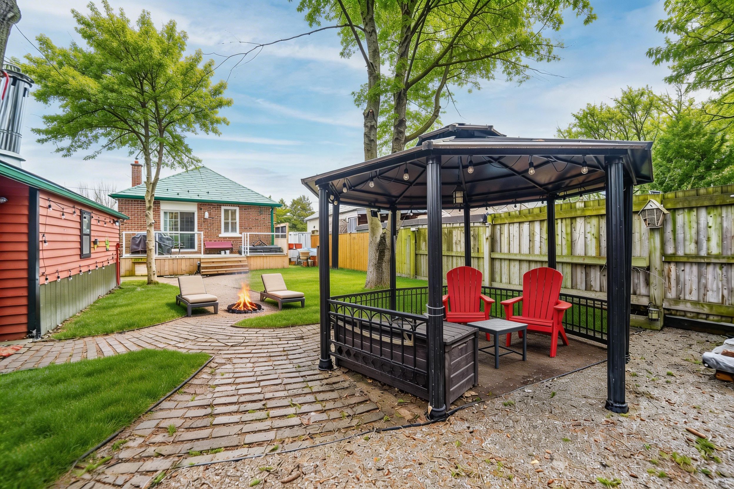 • Private backyard featuring a large deck, hot tub, and gazebo.