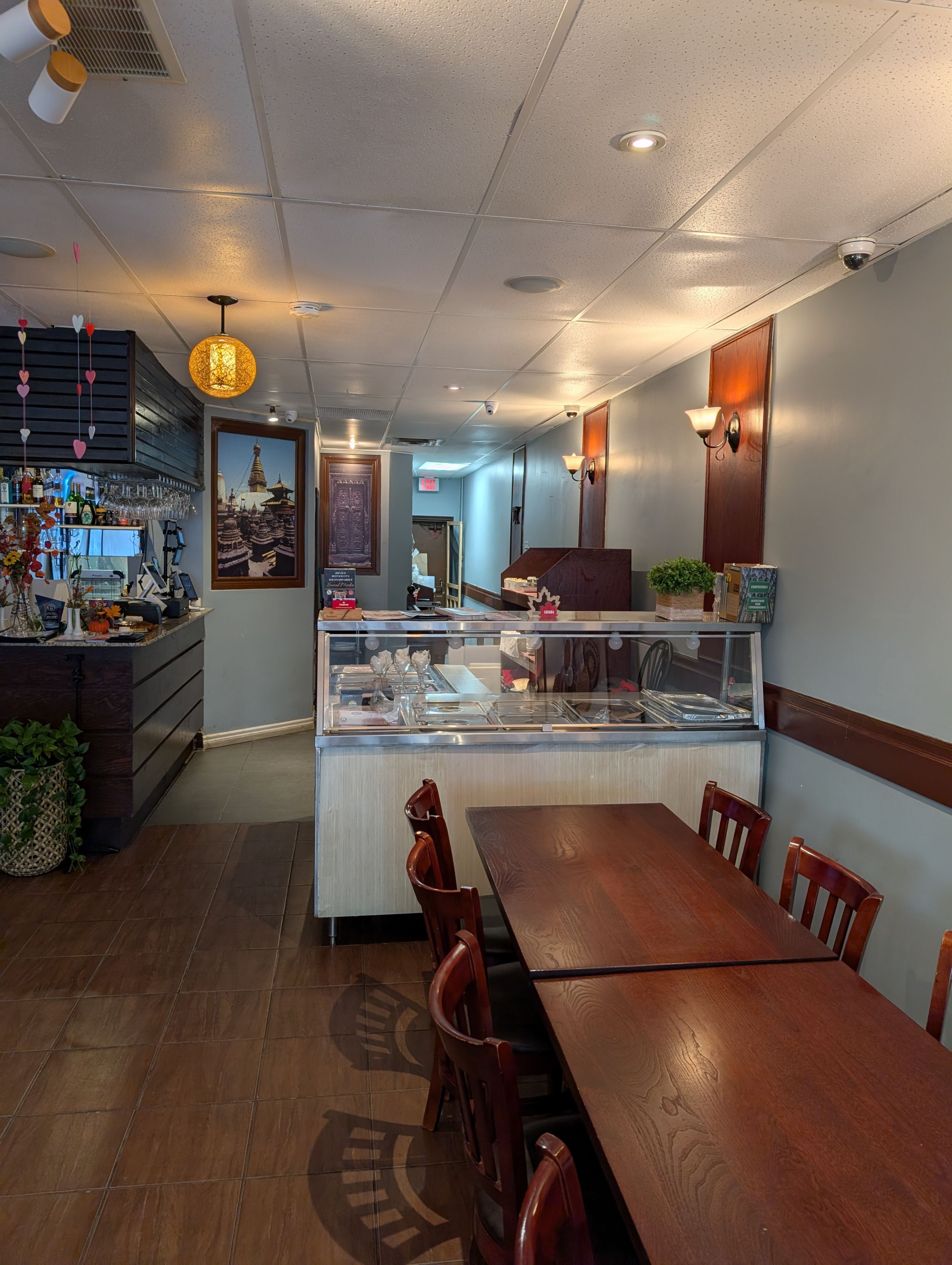 • Fully equipped restaurant with walk-in fridge and ventilation hood.