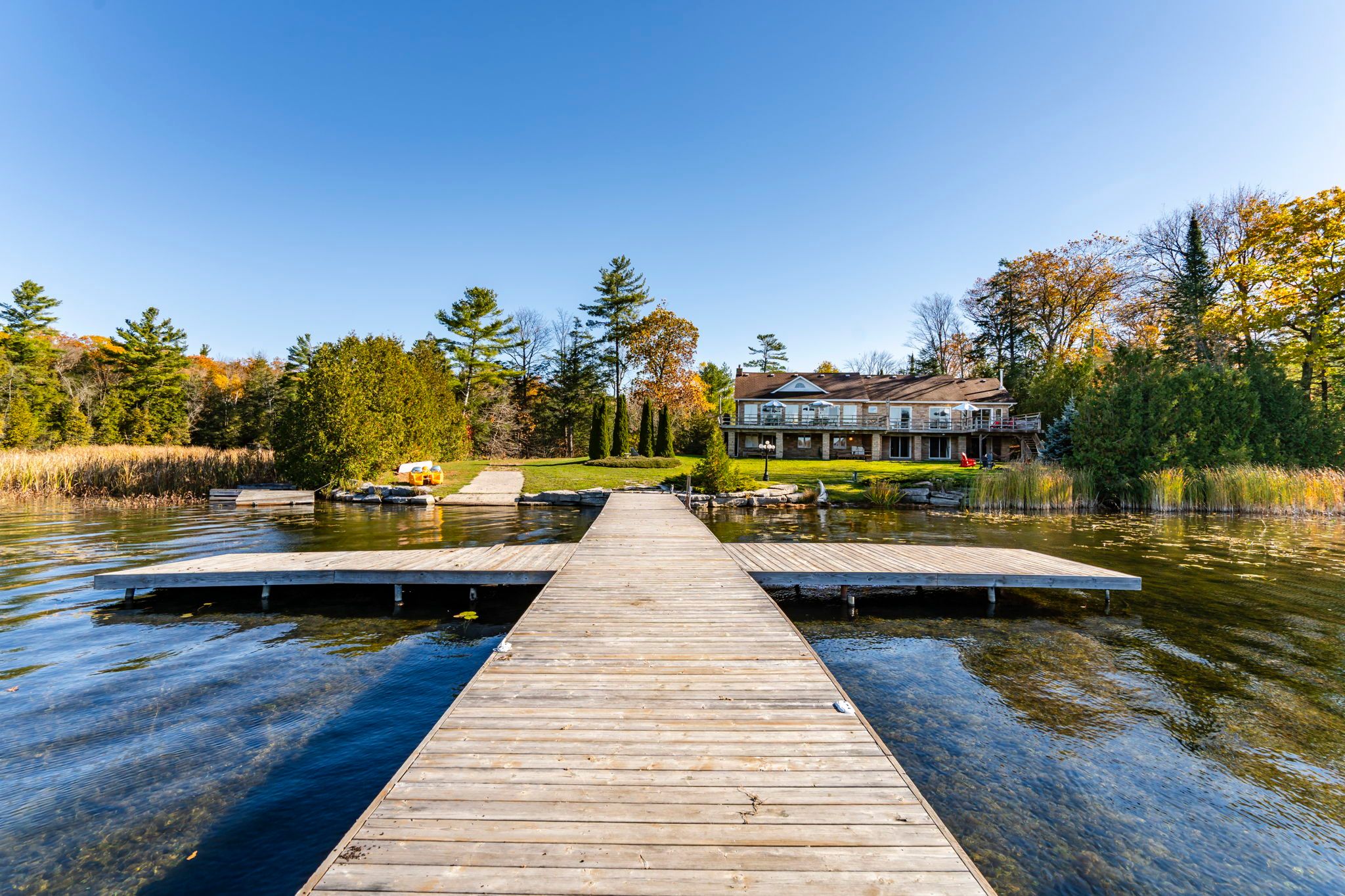 Live your dream on the coveted shores of gloucester pool. This rare property offers over 300 feet of pristine waterfront, blending the tranquility of cottage life with the sophistication of year-round luxury living. This four-bedroom, 4,100 sq. Ft. Residence is designed for both relaxation and entertaining. The open-concept living and dining area features vaulted ceilings, a majestic stone fireplace, and panoramic lake views that set an unforgettable scene. The chef-inspired kitchen boasts stone countertops, an island breakfast bar, and abundant cabinetry, perfectly balancing beauty and functionality. Down the hall, two guest suites open to the lakeside deck, while the primary suite offers an elegant ensuite, walk-in closet, and private walkout-ideal for enjoying morning coffee as the sun rises over the water. Throughout the home, solid wood doors, custom millwork, crown moldings, and marble countertops showcase fine craftsmanship and attention to detail. The walkout lower level expands the living space with a large family and entertainment area, fourth bedroom, additional bath, and convenient access to the garage and storage area. A sauna, wet bar, and wood-burning fireplace create the perfect retreat after a day on the lake or a cozy spot on a winter's evening. Outside, a mix of lush lawn and mature forest ensures peace and privacy. The expansive dock provides ample room for lounging or docking multiple boats, while a private boat launch offers effortless access to gloucester pool and the trent-severn waterway-your gateway to endless boating adventures. This is a rare opportunity to own a timeless lakefront retreat where elegance meets natural beauty. Whether as a luxury cottage or year-round residence, this exquisite waterfront home invites you to live the lifestyle you've always imagined.