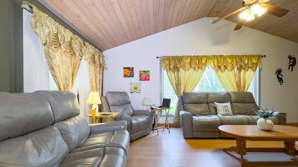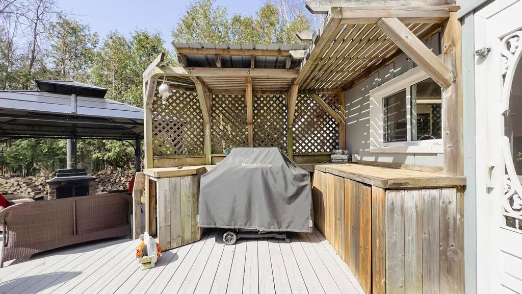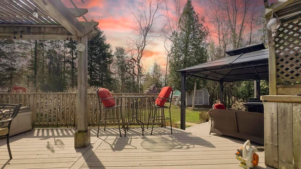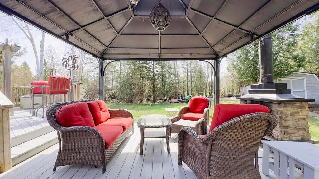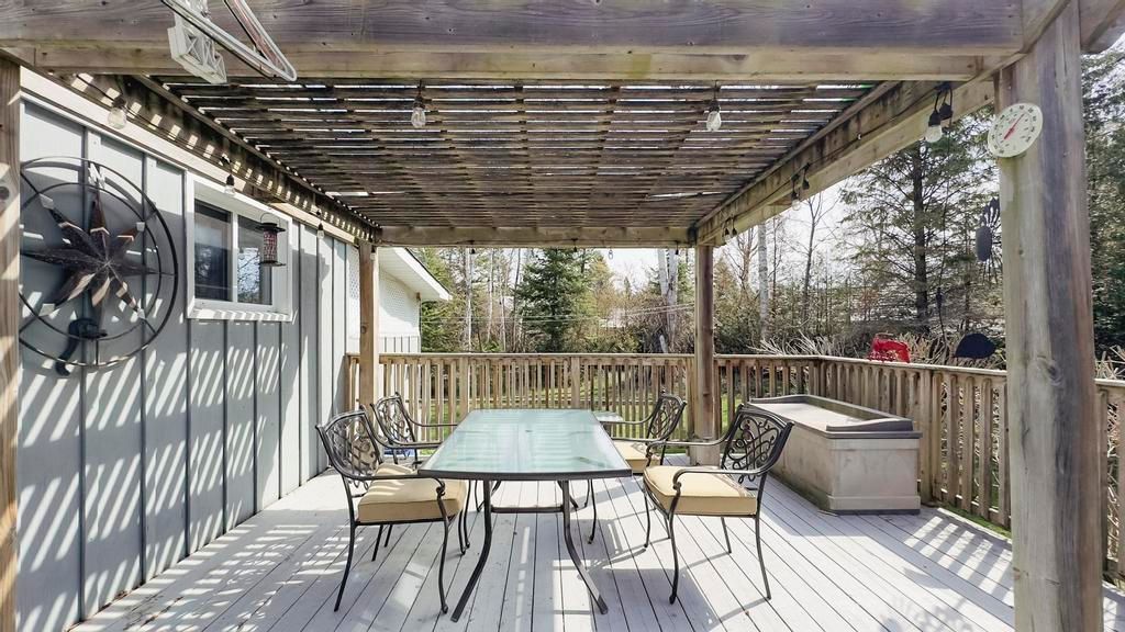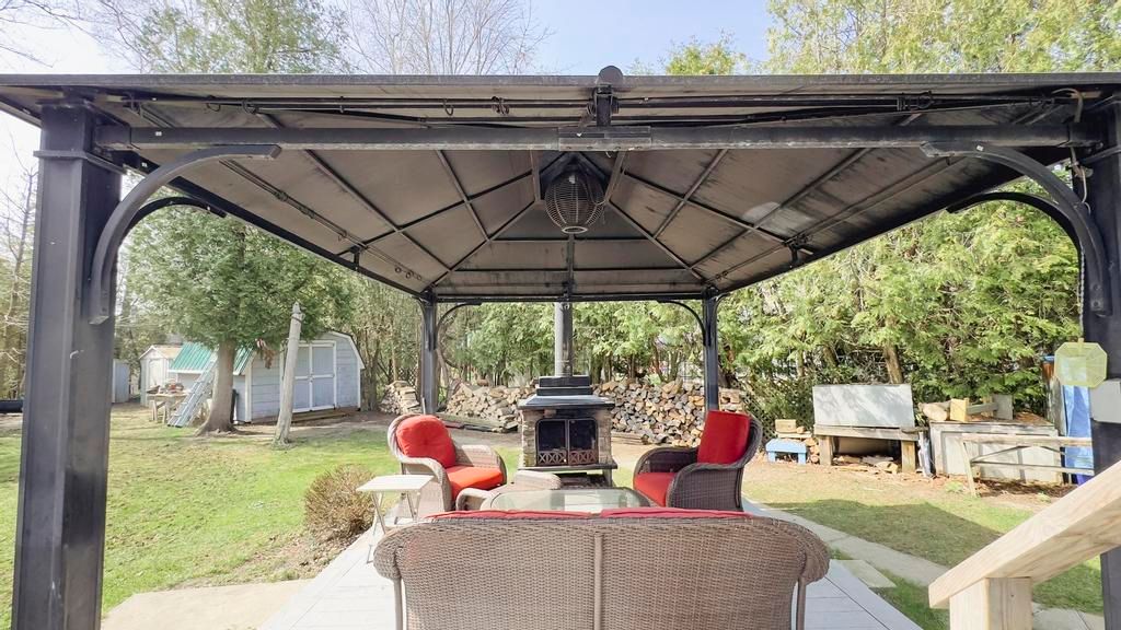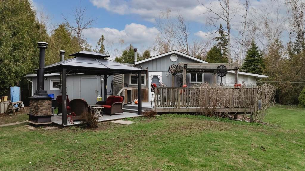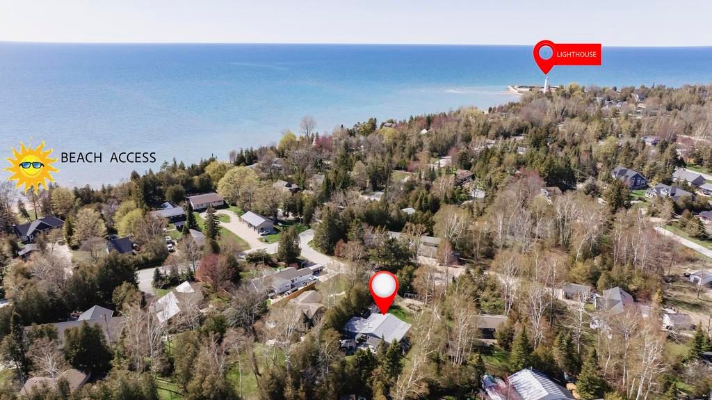 Nestled on a peaceful cul-de-sac just steps from the stunning shores of lake huron, this lovely home offers the ideal escape to enjoy the regions renowned beaches and breathtaking sunsets. Whether you're seeking a cozy cottage or a comfortable year-round residence, this property has it all. Pull up to a driveway with ample parking for family and guests. Inside, you'll find a charming galley kitchen with access to the deck perfect for outdoor dining and entertaining. The open-concept dining and living areas feature a vaulted ceiling that enhances the bright, airy feel. The home includes two bedrooms and two bathrooms, providing plenty of space for family and visitors. Step outside onto the beautiful deck, complete with a dining and bbq area ideal for summer gatherings. The backyard oasis boasts a spacious yard, a charming gazebo with a fireplace for relaxing evenings, and a covered porch area that can be enjoyed on colder or rainy days. A storage shed offers additional space for outdoor gear . An attached shop adds versatile extra storage, a perfect spot for hobbies, projects, or simply extra hangout space. The shop also houses the laundry area, adding to the home's functionality. New roof 2023. This wonderful property combines comfort, outdoor living, and a prime location close to the lake. Perfect as a full-time residence or a seasonal getaway!