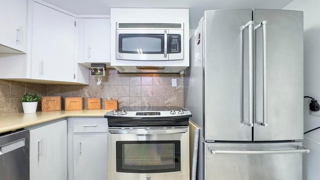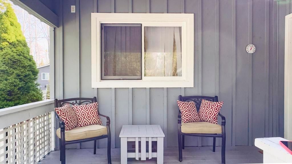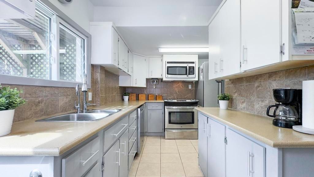 • Charming galley kitchen with access to deck for outdoor dining.