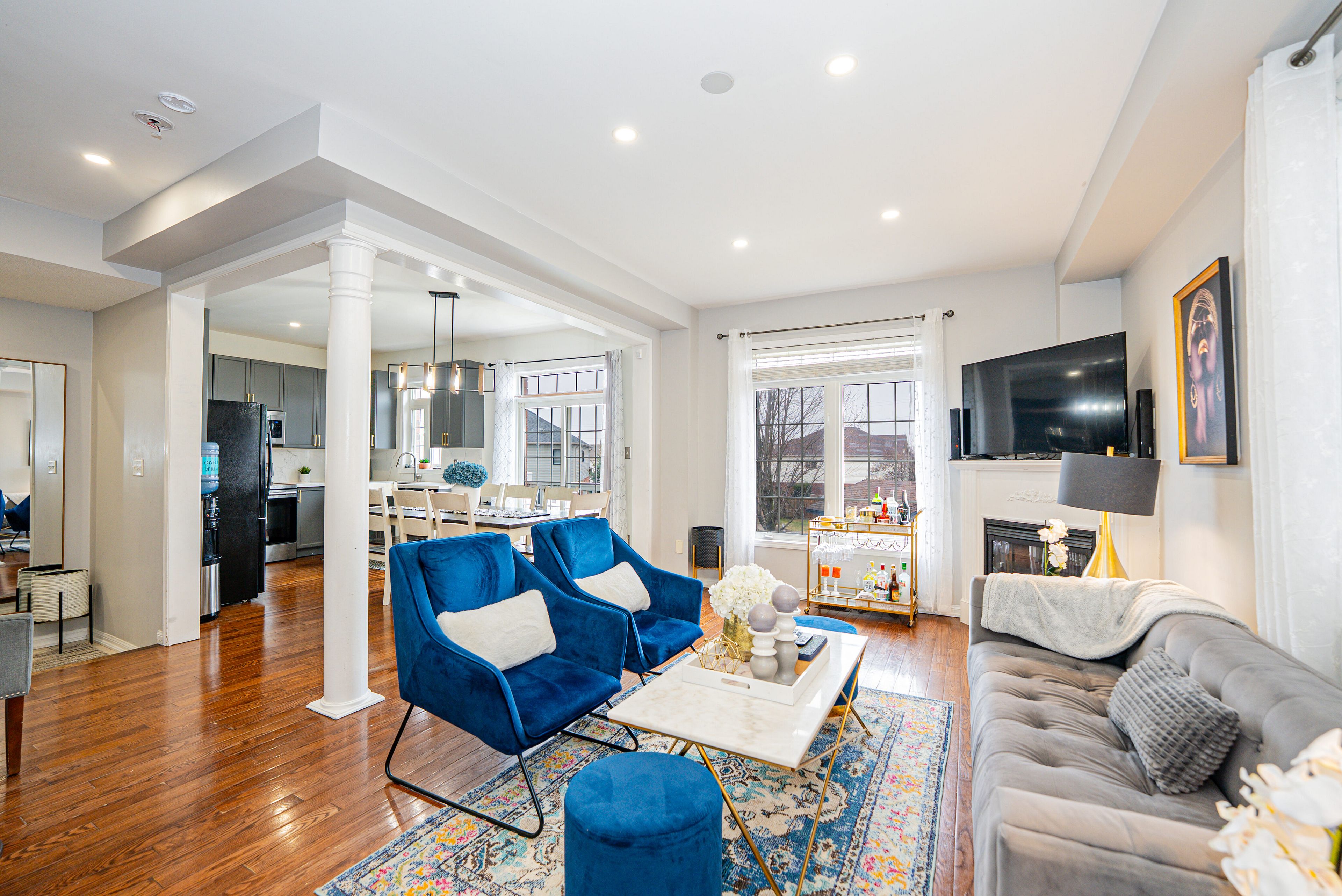 • Elegant hardwood flooring throughout, delivering a modern aesthetic.