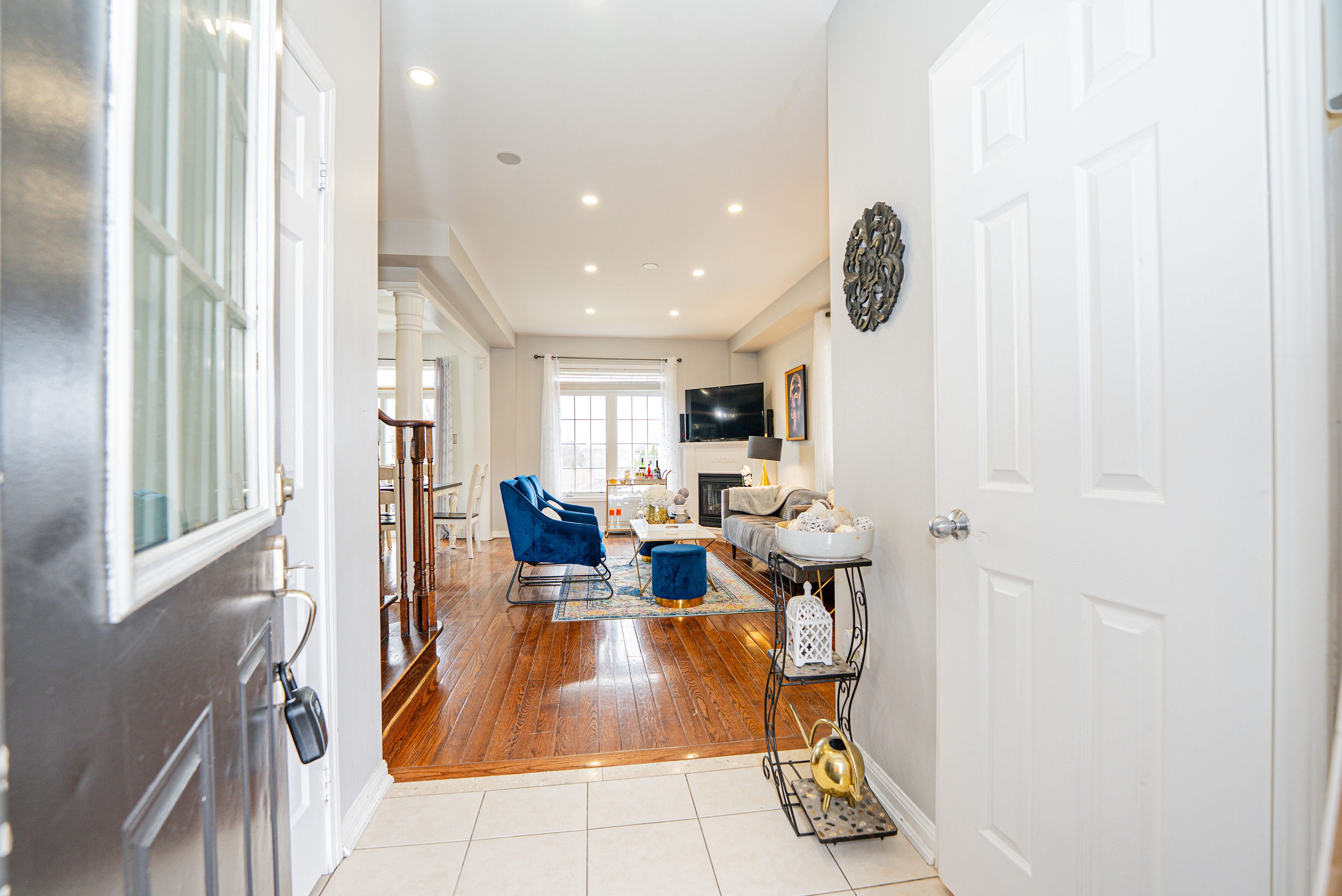 Welcome to this beautifully maintained 2 storey double garage detached 3 + 1 bedroom home nestled in one of oshawa's most desirable and family-friendly samac neighbourhood. Offering exceptional space, functionality, and timeless finishes, this home is perfect for growing families and those who love to entertain featuring 3 spacious bedrooms upstairs and 4 well-appointed washrooms, this home provides comfort and convenience for the entire family. The main and upper levels boast elegant hardwood flooring throughout - completely carpet-free, delivering a clean, modern aesthetic & the bright and functional open concept kitchen . Hardwood throughout with 9 ft ceilings, gas fireplace, main floor laundry with access to garage. Walkout finished basement with separate entrance - perfect for extended family or potential rental income. You will not be disappointed. Walk to durham college and ontario tech. University. 5 minutes to 407, costco, new high school, shopping, golf, campus arena - its all here!!