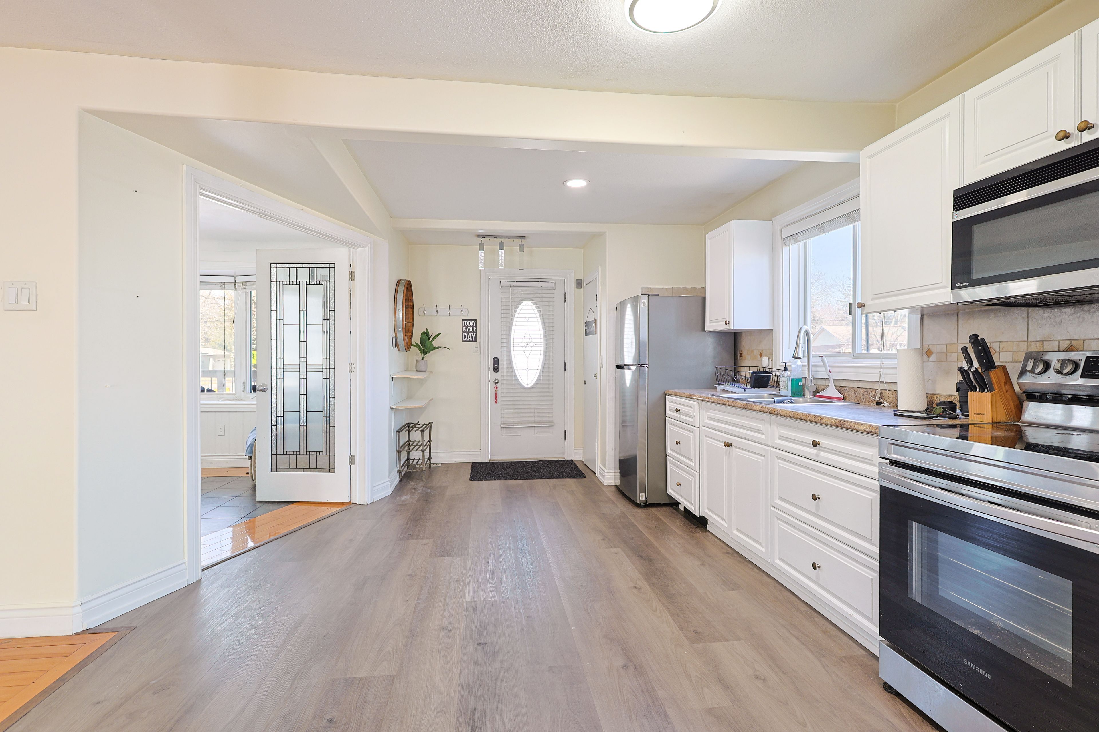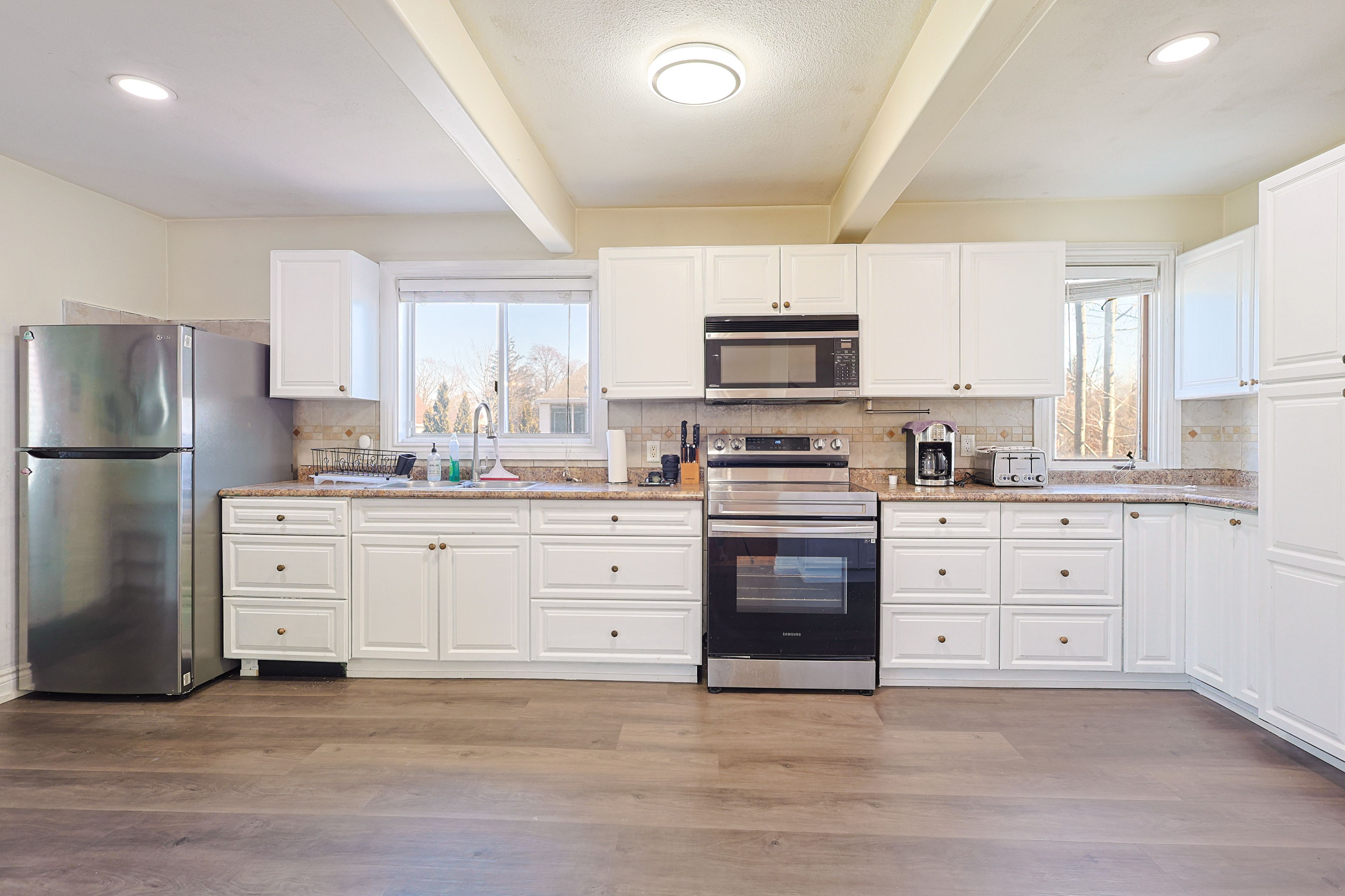 Welcome to this exceptionally unique home that truly must be seen to be appreciated. This spacious 4-bedroom, 4-bathroom house offers an array of modern amenities and features. A new furnace was installed in february 2024, and the home boasts new wooden flooring throughout. The property includes two full kitchens one on the main floor and another in the finished basement making it ideal for large families. Additionally, there are two laundry rooms and new pot lights installed both inside the house and around the exterior perimeter, complete with an auto timer. The finished basement has a separate entrance, providing potential for rental income. It includes a renovated kitchen, a 4-piece bathroom, a spacious bedroom, and a recreational room, making it suitable for an in-law suite. The property also features two large garages (32x24 and 24x24), with one heated garage that could be used as a workshop. Outdoor amenities include an above-ground pool, a party deck, and a covered hot tub. The property offers two big driveways with ample parking space. This one-of-a-kind home is perfect for a home-based business and is conveniently located just steps from lundy's lane, public transit, shops, restaurants, and an elementary school. It is also just 10 minutes from the falls and the casino