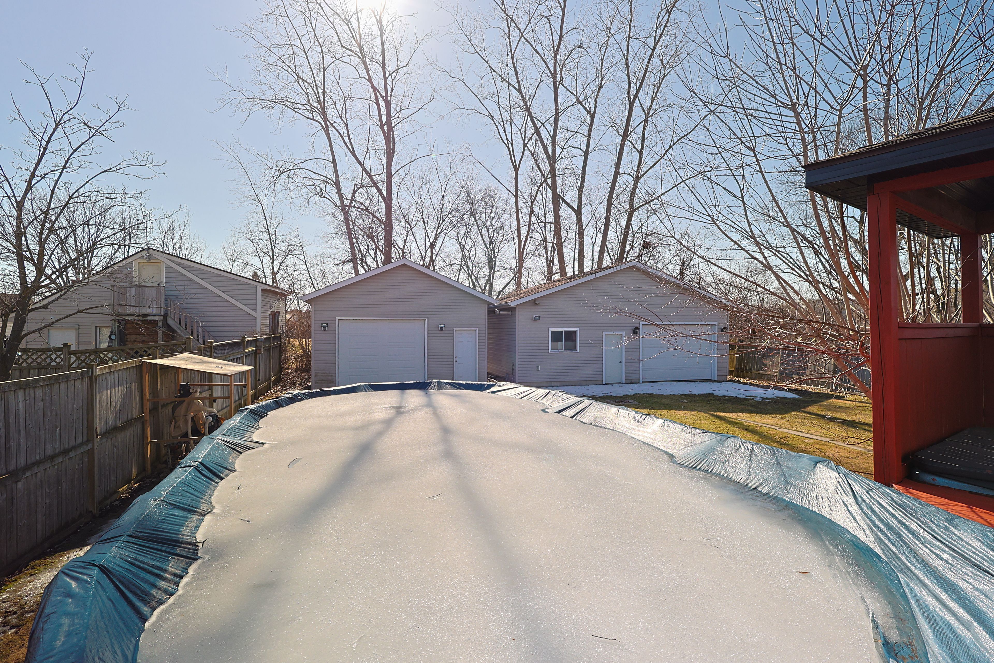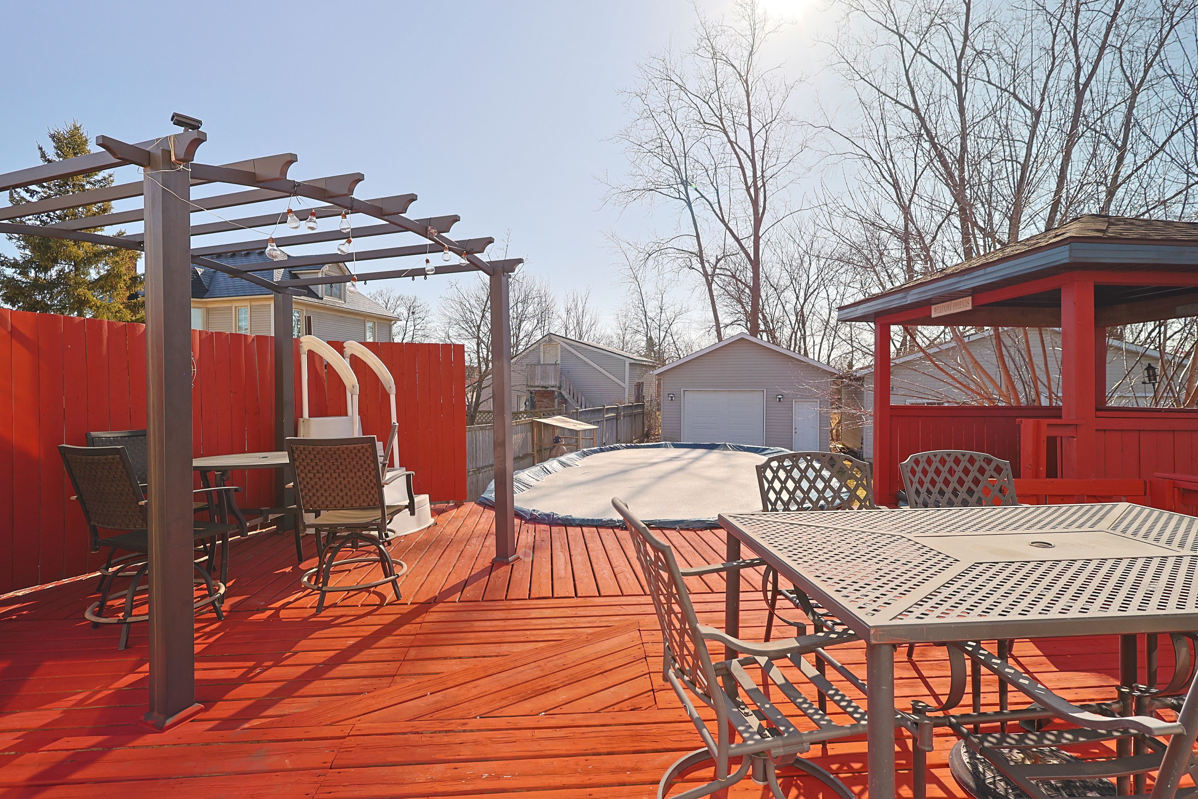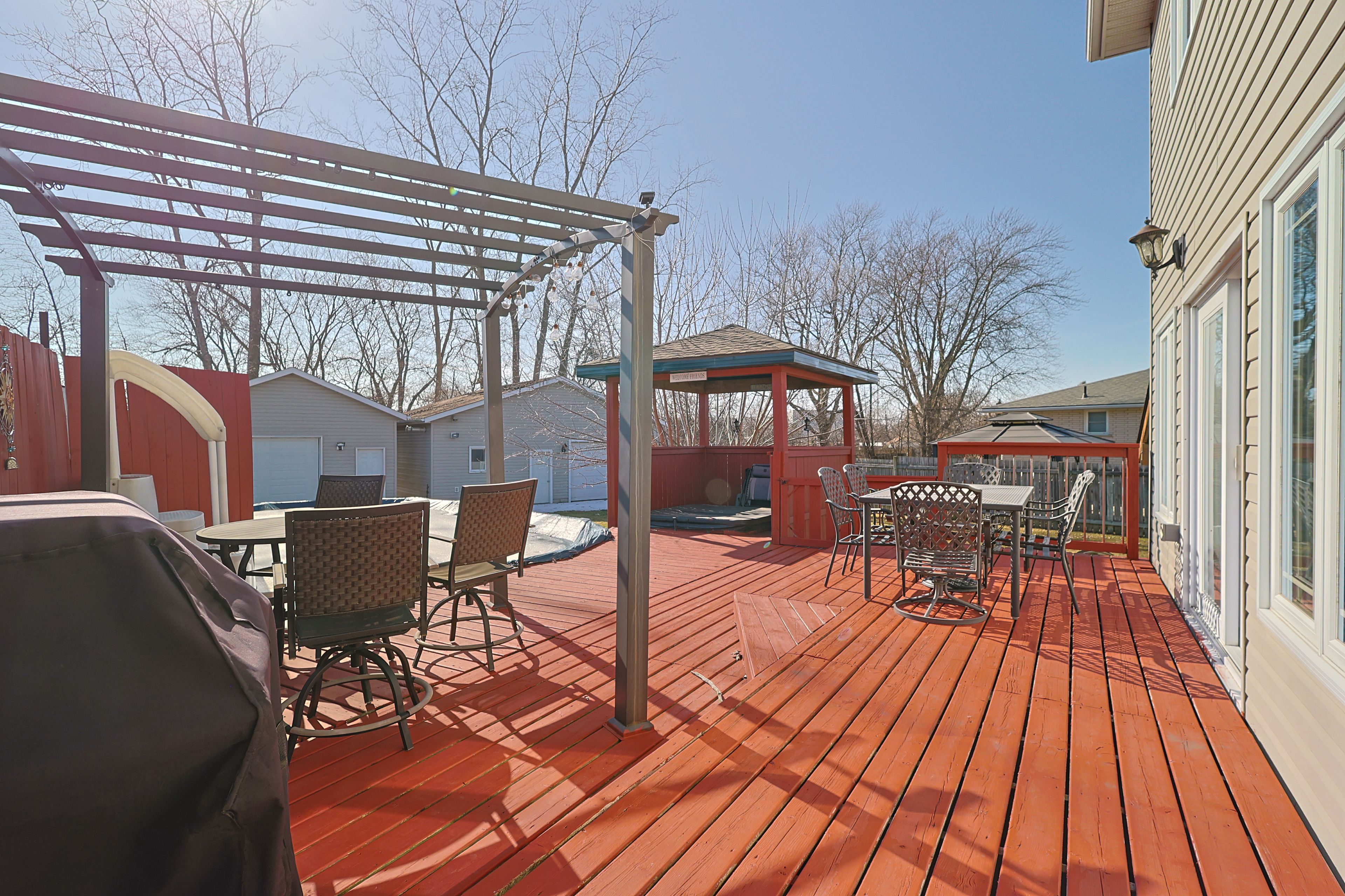 • Outdoor space includes an above-ground pool, party deck, and hot tub.