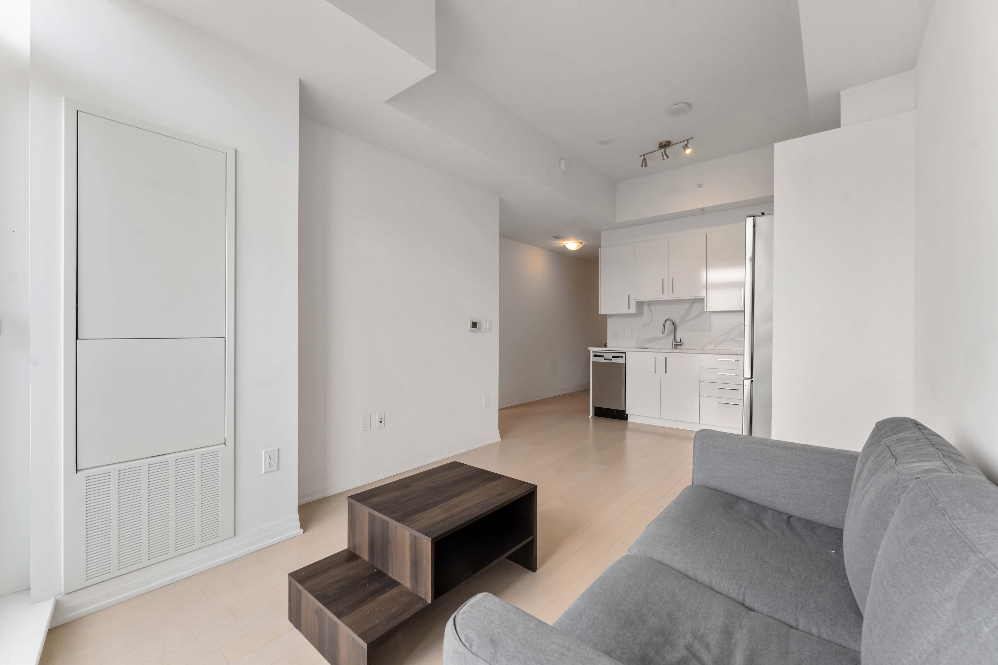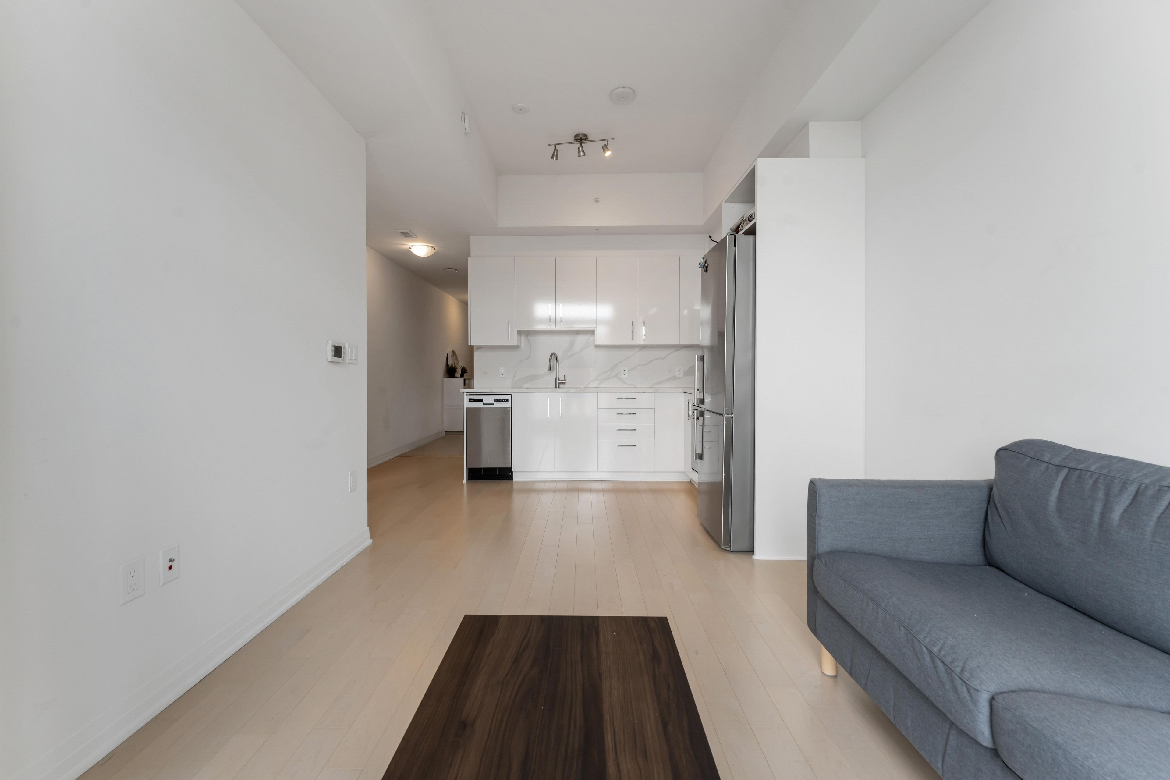 • Modern 1 bedroom condo with open-concept layout and hardwood flooring.