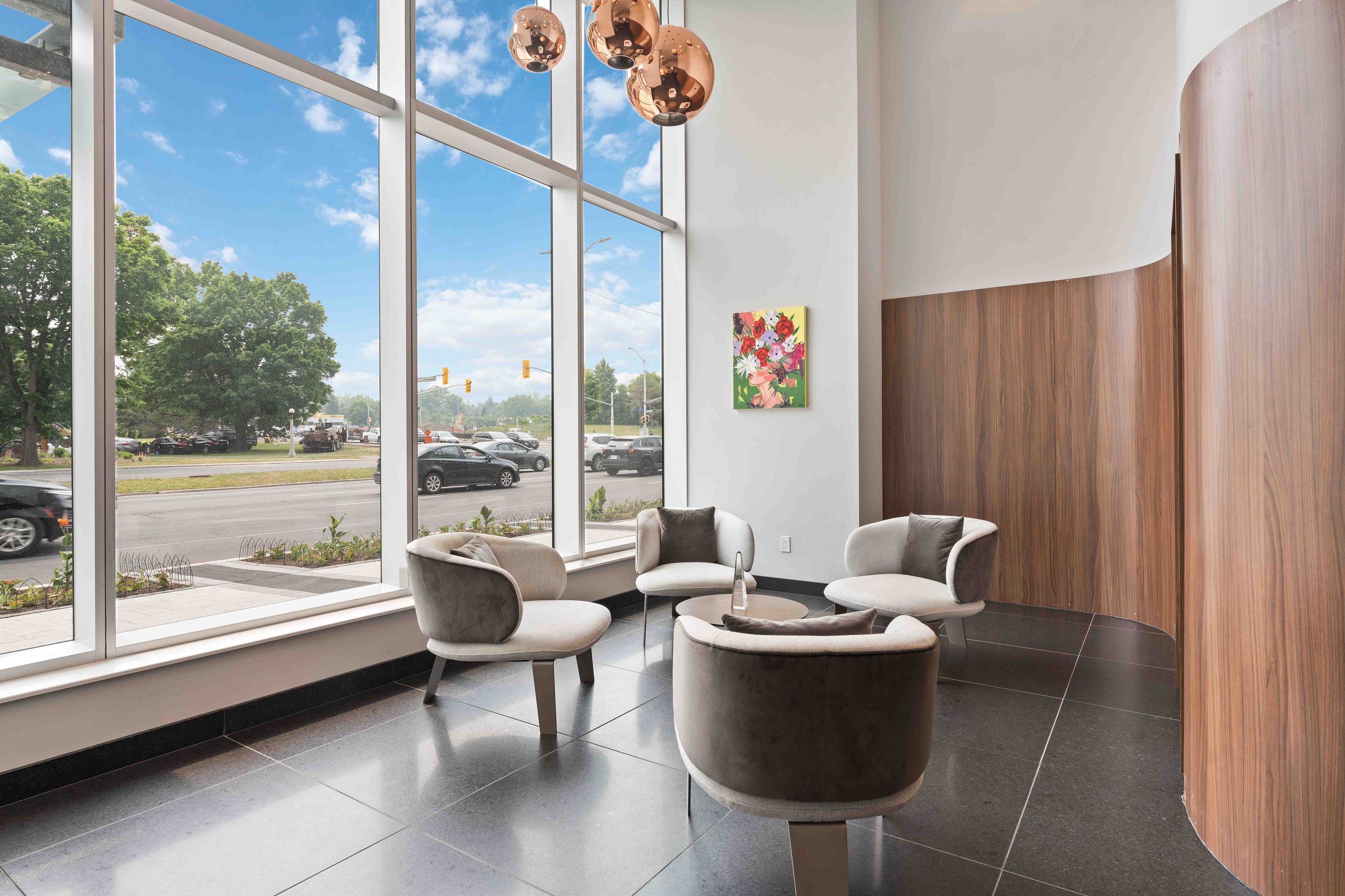• Floor-to-ceiling windows fill the unit with natural light.