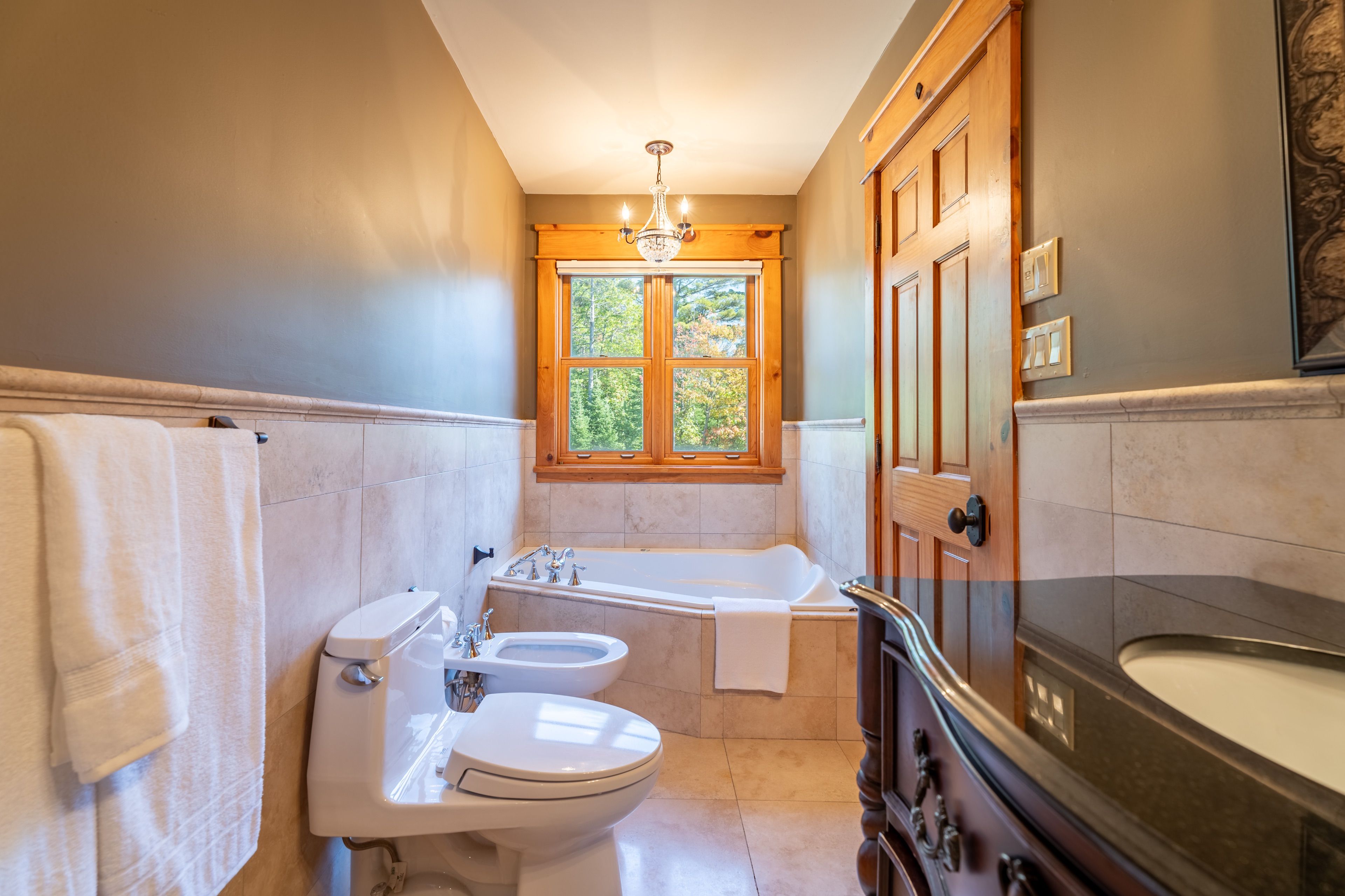 • Finished basement with in-floor heating, wet bar, and recreational area.