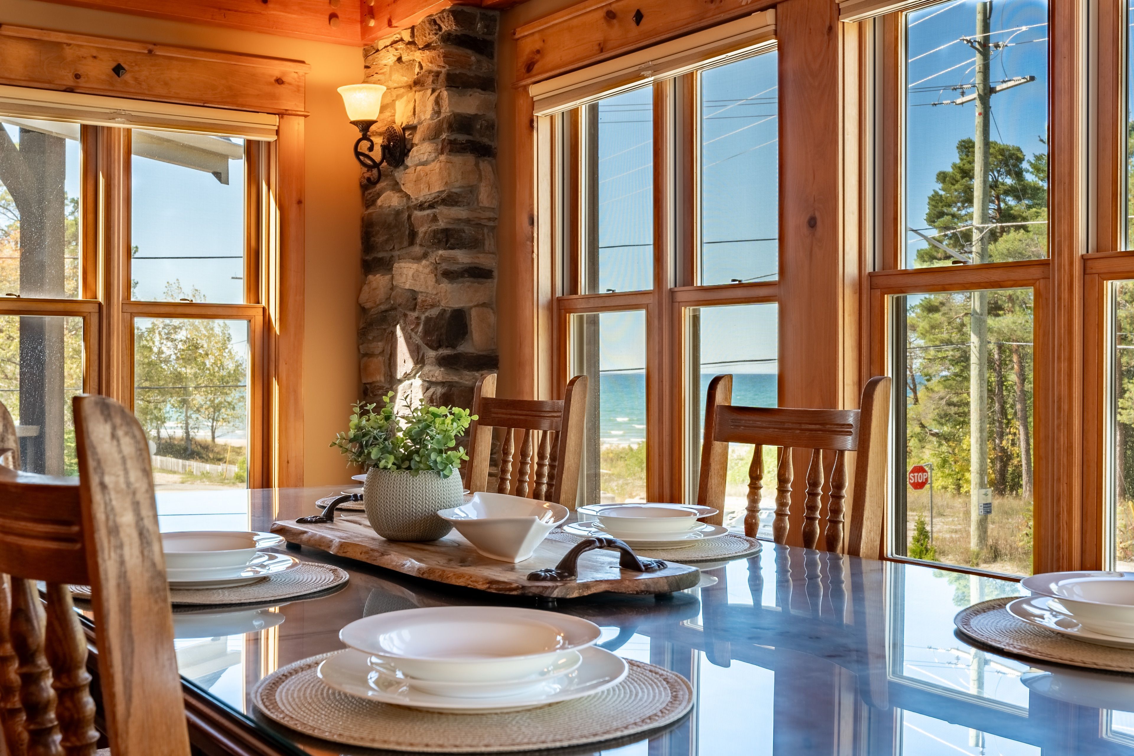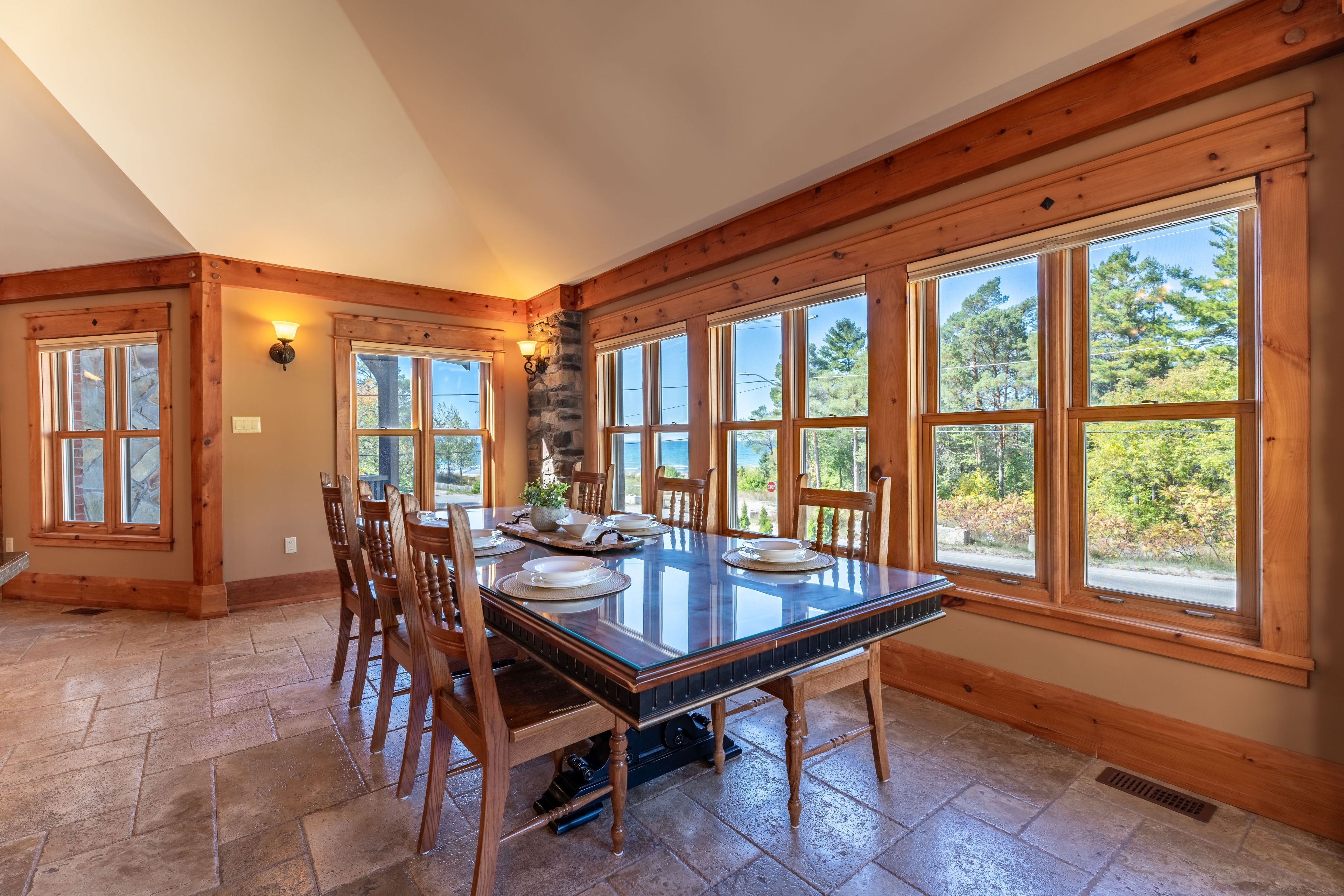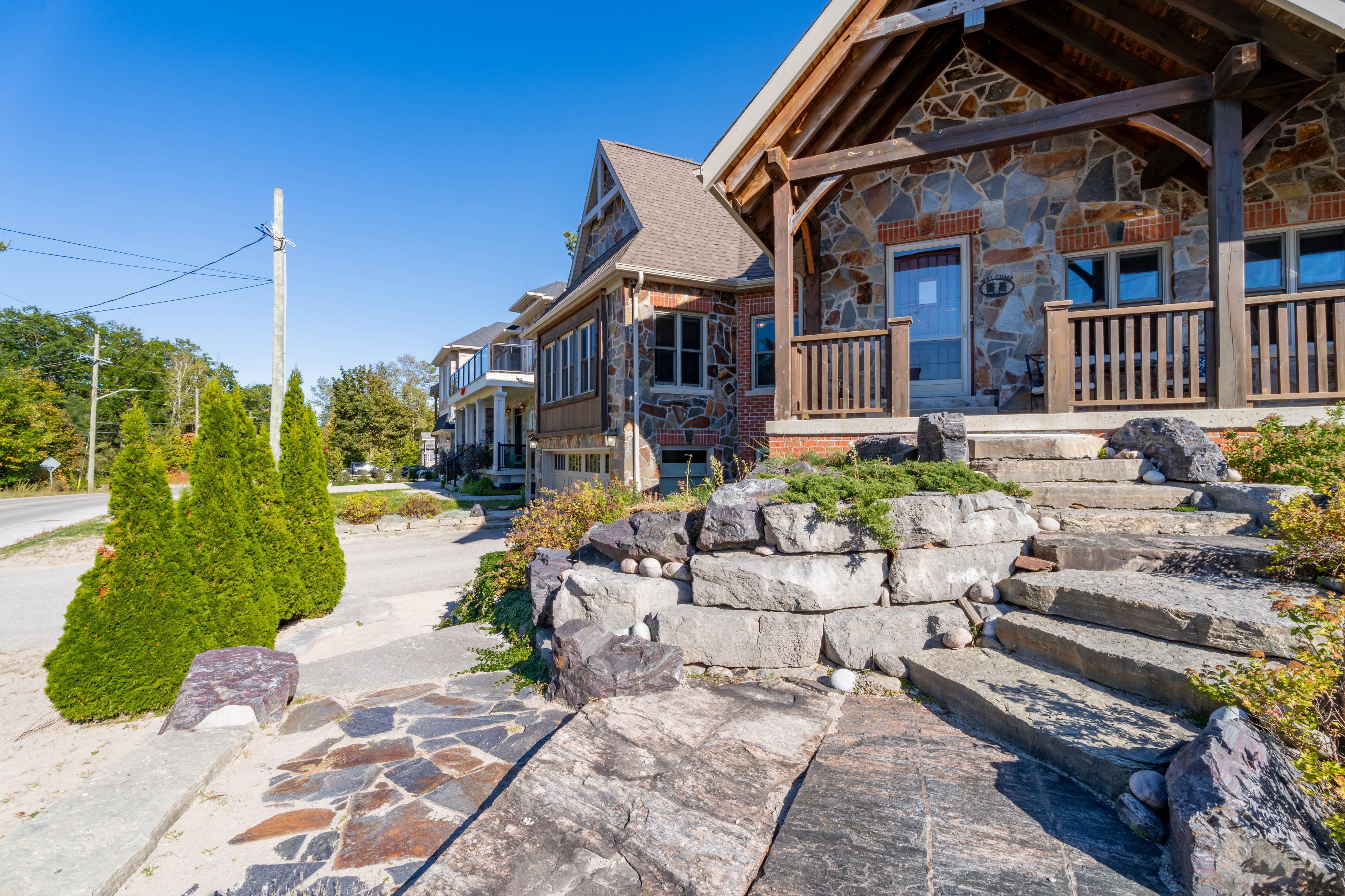 Enjoy life just steps from the white sandy shores of allenwood beach in this beautifully designed custom home, featuring 3,552 sq. Ft. Of finished living space crafted for comfort, quality, and an exceptional lifestyle. Enjoy spectacular water views and breathtaking sunsets, surrounded by mature trees for added privacy and serenity. With striking curb appeal, the exterior showcases nordic granite, brick, and muskoka-inspired landscaping with armour stone and jasper rock. Inside, soaring 23 pine-beamed ceilings and expansive windows flood the home with natural light. The main floor features a spacious primary suite and convenient laundry, making everyday living effortless. The chefs kitchen is built to impress with a 14' granite island, premium gas stove, travertine-tumbled marble flooring, and abundant storage. With six bedrooms and four full marble bathrooms, there's space for the whole family and guests. The finished basement offers in-floor heating, a wet bar, recreation area, and a garage door opening to a large storage space perfect for kayaks, paddle boards, or jet skis. Ideally located just steps to beaches, minutes to shopping, schools, and medical facilities, with easy access to collingwood and blue mountain, this is exceptional beachside living. Book your private showing today and start every day with the sound of waves and unforgettable sunsets.