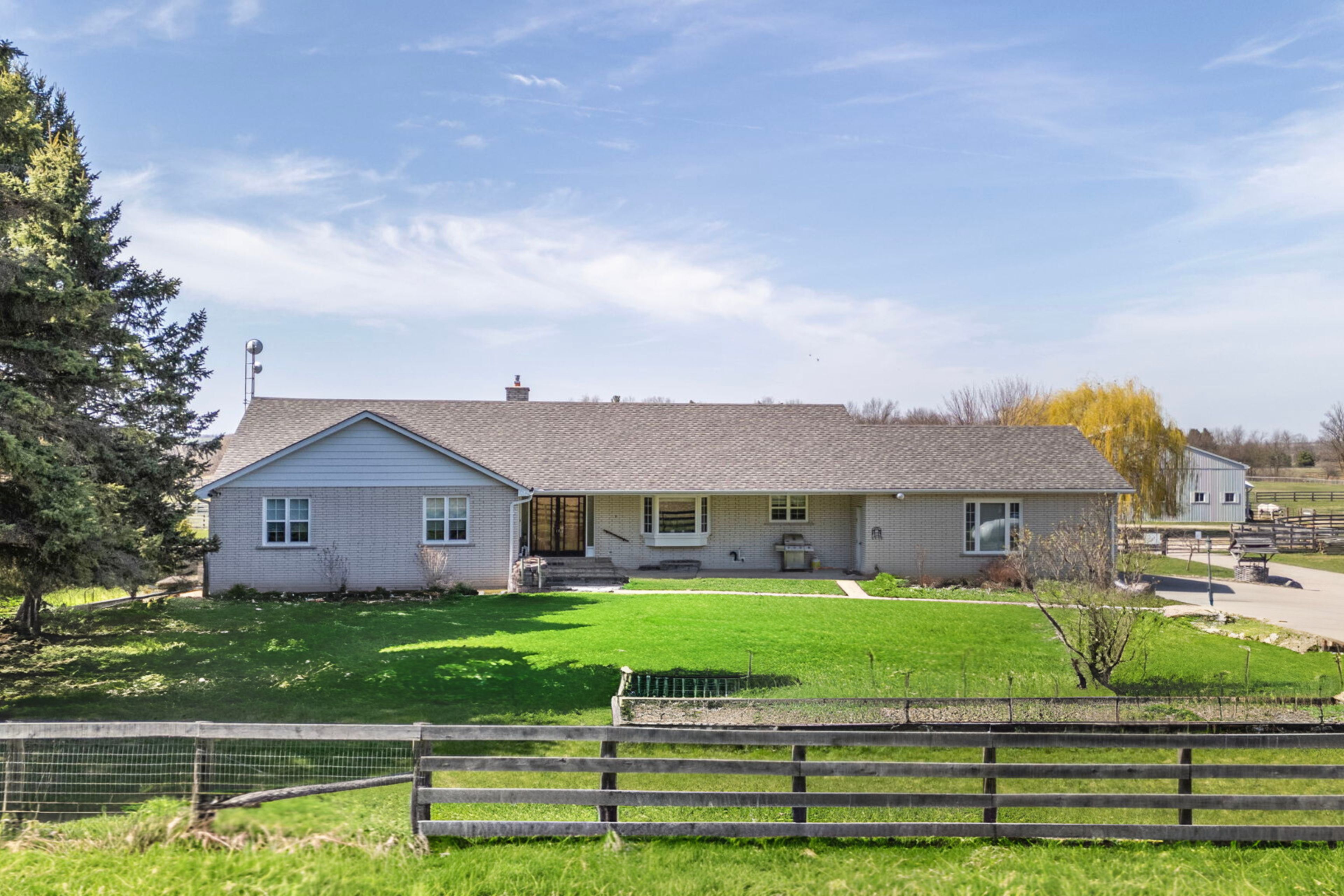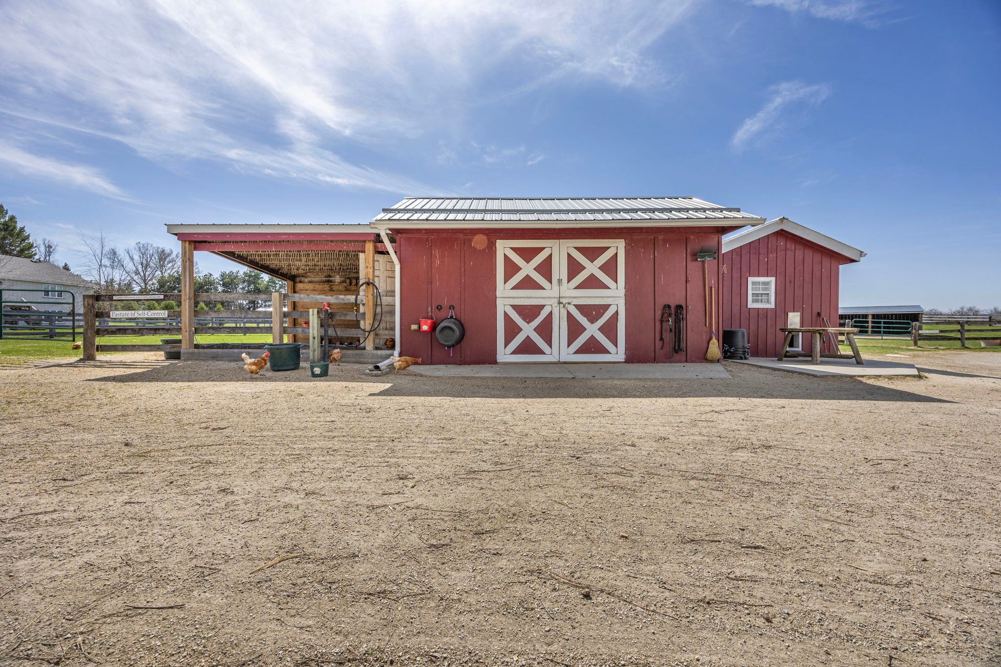 • Expansive grounds with trails, paddocks, and a heated workshop.