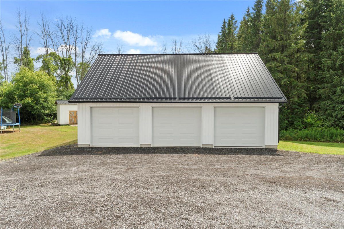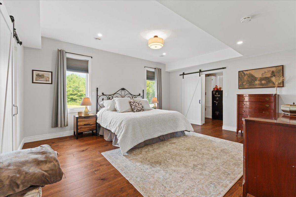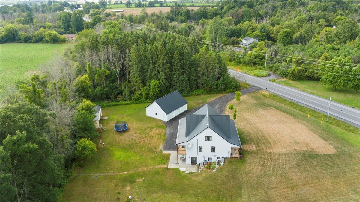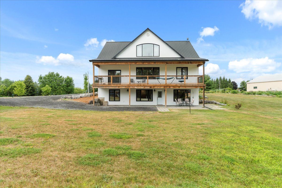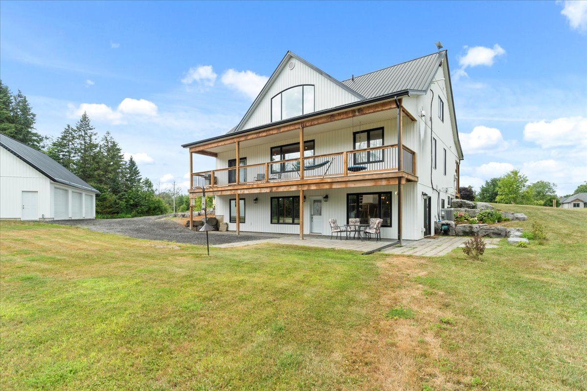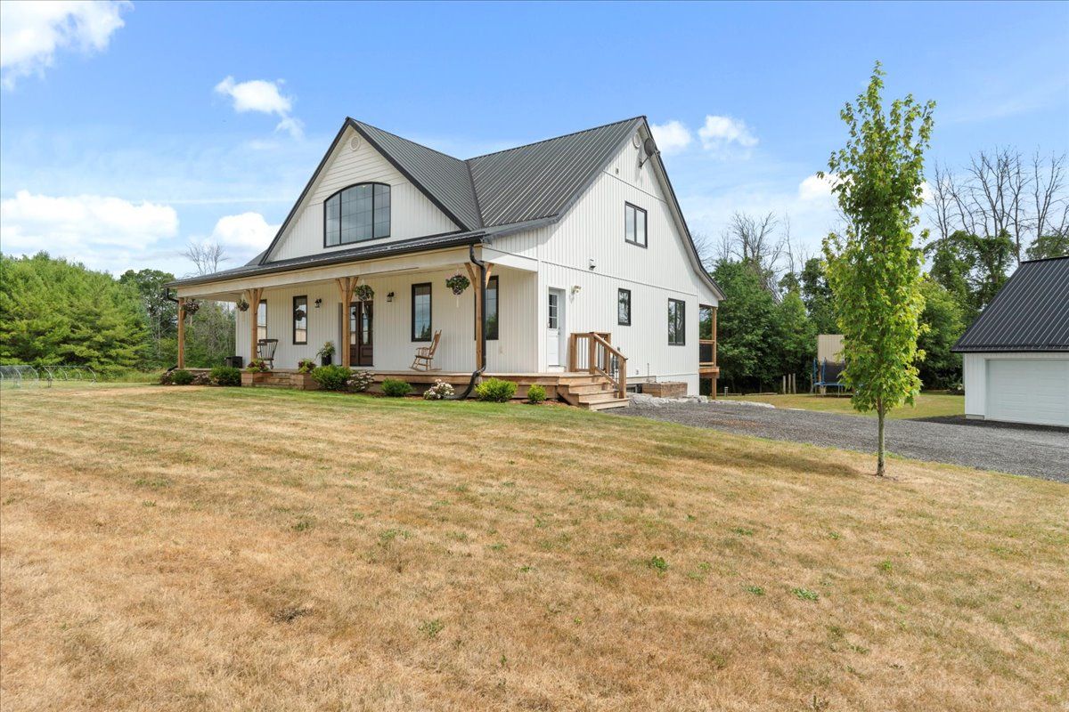 This custom-built 2019 home blends modern functionality with timeless farmhouse charm. Designed for multi-generational living, entertaining, and family life, it offers 3 fully finished levels, soaring ceilings, and bright open-concept spaces throughout. Enter under the covered porch, the main-floor primary suite is a luxurious retreat with a clawfoot tub, glass and tile walk-in shower, double vanities, and a walk-in closet. Upstairs, two generously sized bedrooms are connected to whimsical secret hideaways and each enjoys access to its own bathroom one with a private ensuite and the other with a semi-ensuite that also serves the loft/music space and games room. At the heart of the home is a stunning chef-inspired kitchen featuring floor-to-ceiling cabinetry, quartz countertops, a gas range, double wall ovens, an island with four stools, and a walkout covered balcony perfect for morning coffee barbeques, or evening relaxation. The adjacent great room is anchored by a gas fireplace flanked by bookshelves and filled with natural light from oversized windows. The fully finished walk-out basement includes a beautifully appointed in-law suite with three bedrooms, a full kitchen with island hello baking space! ,an open dining area, two electric fireplaces, in-floor radiant heating, private laundry, and two full bathrooms including a private ensuite with double sinks in the lower-level primary bedroom with walk in closet. Additional features include the 3 fireplaces (one gas and two electric), 6 bedrooms plus multiple bonus spaces, six bathrooms, two laundry spaces, mudroom with storage, lower level with in-floor heating. The detached three-car garage 30x40 foot garage with a 14x26ft loft, and 13x40ft of space with high ceiling (perfect for a car lift).. A spacious backyard completes the picture. Ideally located just minutes from town, this peaceful property offers flexibility and comfort for blended families, long-term guests, or anyone seeking space and style.