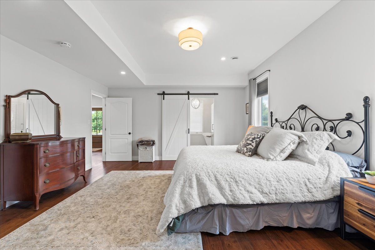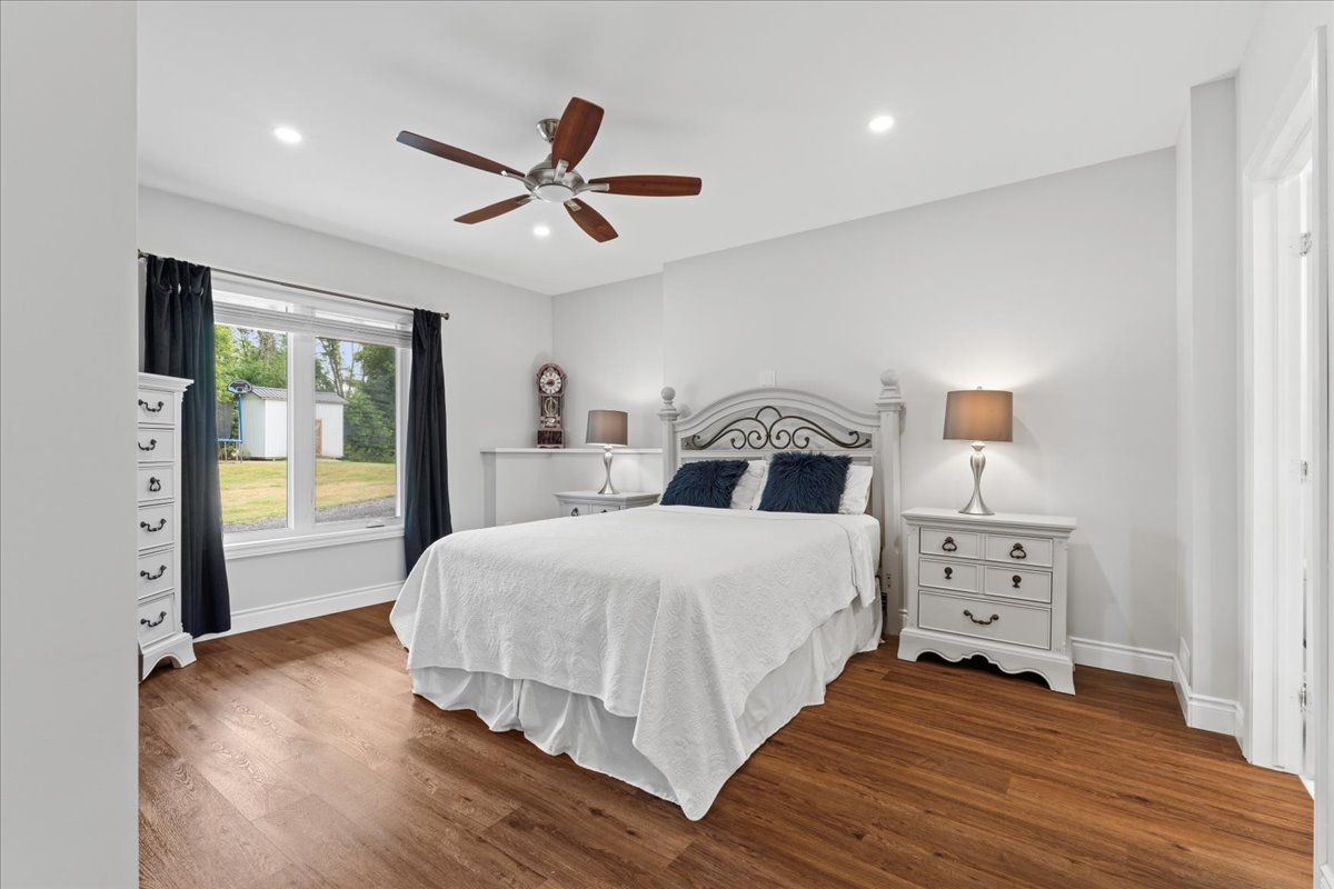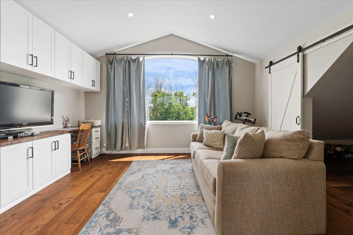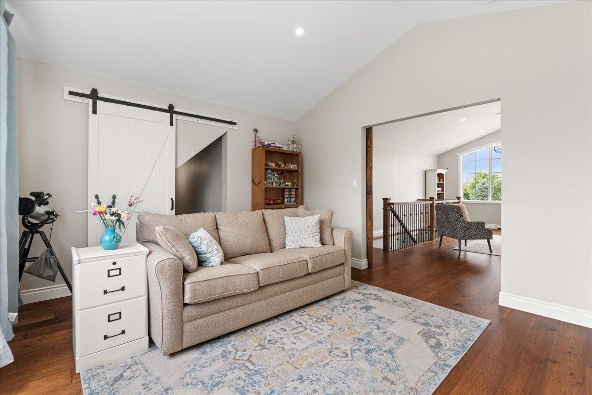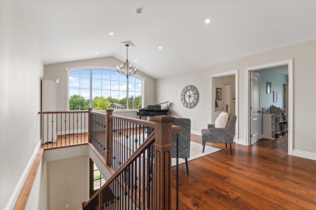This custom-built 2019 home blends modern functionality with timeless farmhouse charm. Designed for multi-generational living, entertaining, and family life, it offers 3 fully finished levels, soaring ceilings, and bright open-concept spaces throughout. Enter under the covered porch, the main-floor primary suite is a luxurious retreat with a clawfoot tub, glass and tile walk-in shower, double vanities, and a walk-in closet. Upstairs, two generously sized bedrooms are connected to whimsical secret hideaways and each enjoys access to its own bathroom one with a private ensuite and the other with a semi-ensuite that also serves the loft/music space and games room. At the heart of the home is a stunning chef-inspired kitchen featuring floor-to-ceiling cabinetry, quartz countertops, a gas range, double wall ovens, an island with four stools, and a walkout covered balcony perfect for morning coffee barbeques, or evening relaxation. The adjacent great room is anchored by a gas fireplace flanked by bookshelves and filled with natural light from oversized windows. The fully finished walk-out basement includes a beautifully appointed in-law suite with three bedrooms, a full kitchen with island hello baking space! ,an open dining area, two electric fireplaces, in-floor radiant heating, private laundry, and two full bathrooms including a private ensuite with double sinks in the lower-level primary bedroom with walk in closet. Additional features include the 3 fireplaces (one gas and two electric), 6 bedrooms plus multiple bonus spaces, six bathrooms, two laundry spaces, mudroom with storage, lower level with in-floor heating. The detached three-car garage 30x40 foot garage with a 14x26ft loft, and 13x40ft of space with high ceiling (perfect for a car lift).. A spacious backyard completes the picture. Ideally located just minutes from town, this peaceful property offers flexibility and comfort for blended families, long-term guests, or anyone seeking space and style.