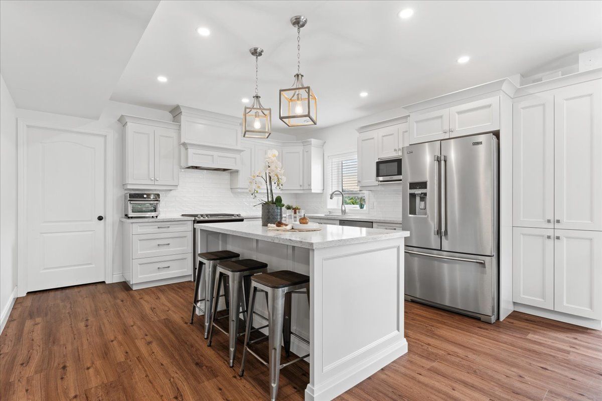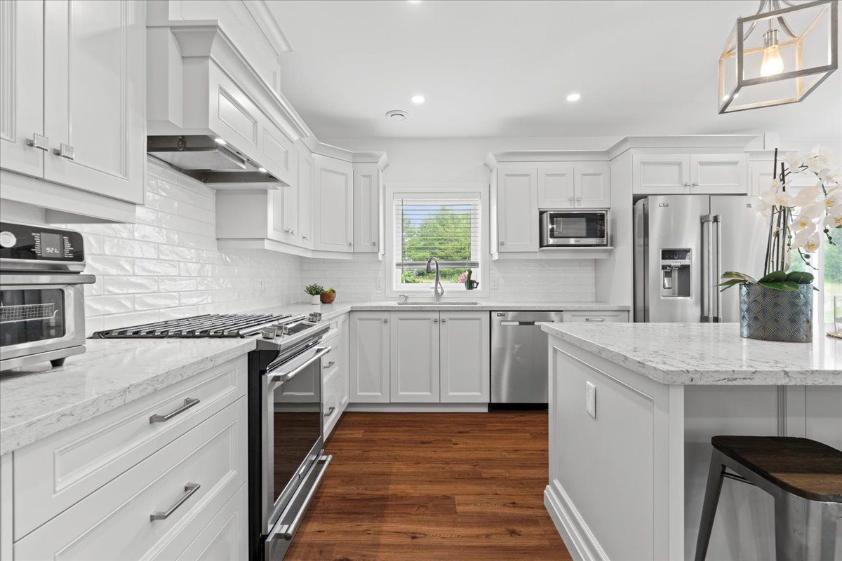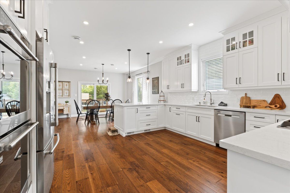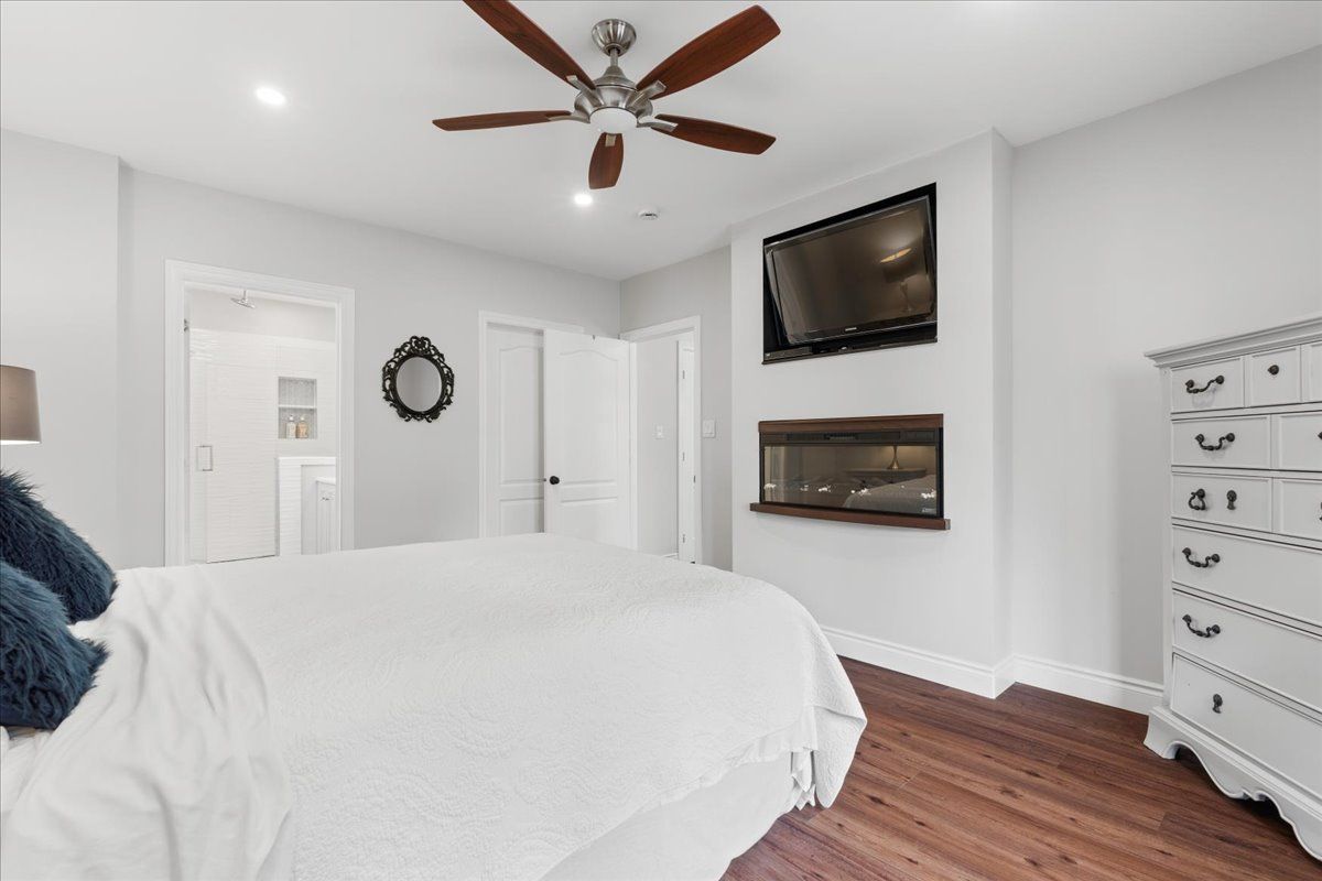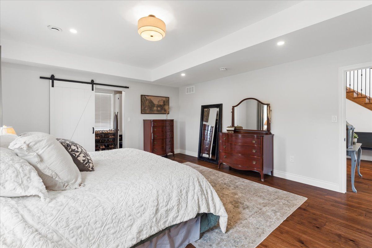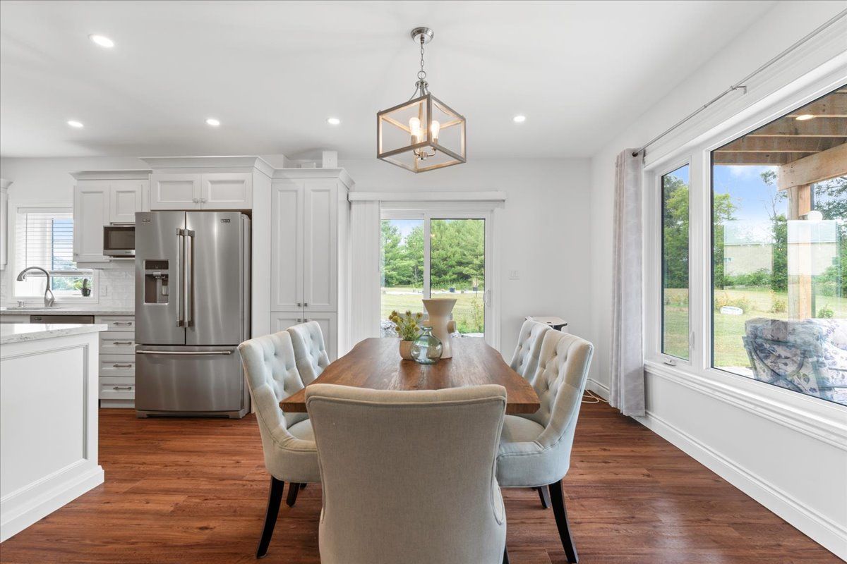 This custom-built 2019 home blends modern functionality with timeless farmhouse charm. Designed for multi-generational living, entertaining, and family life, it offers 3 fully finished levels, soaring ceilings, and bright open-concept spaces throughout. Enter under the covered porch, the main-floor primary suite is a luxurious retreat with a clawfoot tub, glass and tile walk-in shower, double vanities, and a walk-in closet. Upstairs, two generously sized bedrooms are connected to whimsical secret hideaways and each enjoys access to its own bathroom one with a private ensuite and the other with a semi-ensuite that also serves the loft/music space and games room. At the heart of the home is a stunning chef-inspired kitchen featuring floor-to-ceiling cabinetry, quartz countertops, a gas range, double wall ovens, an island with four stools, and a walkout covered balcony perfect for morning coffee barbeques, or evening relaxation. The adjacent great room is anchored by a gas fireplace flanked by bookshelves and filled with natural light from oversized windows. The fully finished walk-out basement includes a beautifully appointed in-law suite with three bedrooms, a full kitchen with island hello baking space! ,an open dining area, two electric fireplaces, in-floor radiant heating, private laundry, and two full bathrooms including a private ensuite with double sinks in the lower-level primary bedroom with walk in closet. Additional features include the 3 fireplaces (one gas and two electric), 6 bedrooms plus multiple bonus spaces, six bathrooms, two laundry spaces, mudroom with storage, lower level with in-floor heating. The detached three-car garage 30x40 foot garage with a 14x26ft loft, and 13x40ft of space with high ceiling (perfect for a car lift).. A spacious backyard completes the picture. Ideally located just minutes from town, this peaceful property offers flexibility and comfort for blended families, long-term guests, or anyone seeking space and style.