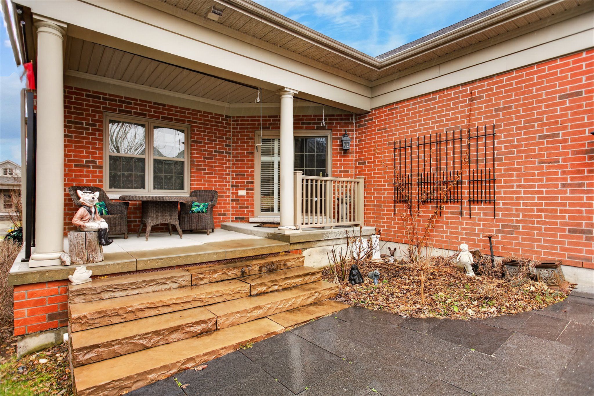 Welcome to new amherst village, one of cobourg's most prestigious master-planned communities, known for its timeless architecture. Set on a premium 54' x 142' lot along a mature, tree-lined street, this elegant salem bungalow offers 1,622 sq. Ft. Of refined, single-level living. A rare rear homeowner entrance with two steps provides discreet, mobility-conscious access without compromising design. The interior is curated with a sophisticated palette of benjamin moore designer colours and anchored by engineered hardwood flooring throughout the principal living spaces. At the heart of the home, the chef-inspired kitchen is both striking and functional, featuring rich soapstone countertops, kitchenaid stainless steel appliances and elevated finishes ideal for everyday living and effortless entertaining. The living area exudes warmth and character, centered around a custom-crafted fireplace mantel, creating an inviting focal point for gatherings. The private primary suite offers a serene retreat, complete with a spa-inspired ensuite featuring a glass and tiled shower. Additional comforts include 3m sun-filtering window tint on west-facing exposures and bay window, central air and a well-appointed main floor laundry. Outdoors, enjoy beautifully designed living spaces including a deep covered front porch with custom shutters and a covered rear porch for relaxing or entertaining. The level backyard is sun-drenched and exceptionally private, framed by mature cedar hedging, curated perennial gardens, armour stone accents and established trees. Additional features include a large pantry, paved driveway with parking for six vehicles and an unspoiled basement ready for your future vision. Located minutes from downtown cobourg and lake ontario, this is a rare offering for refined bungalow living in a thoughtfully designed community.