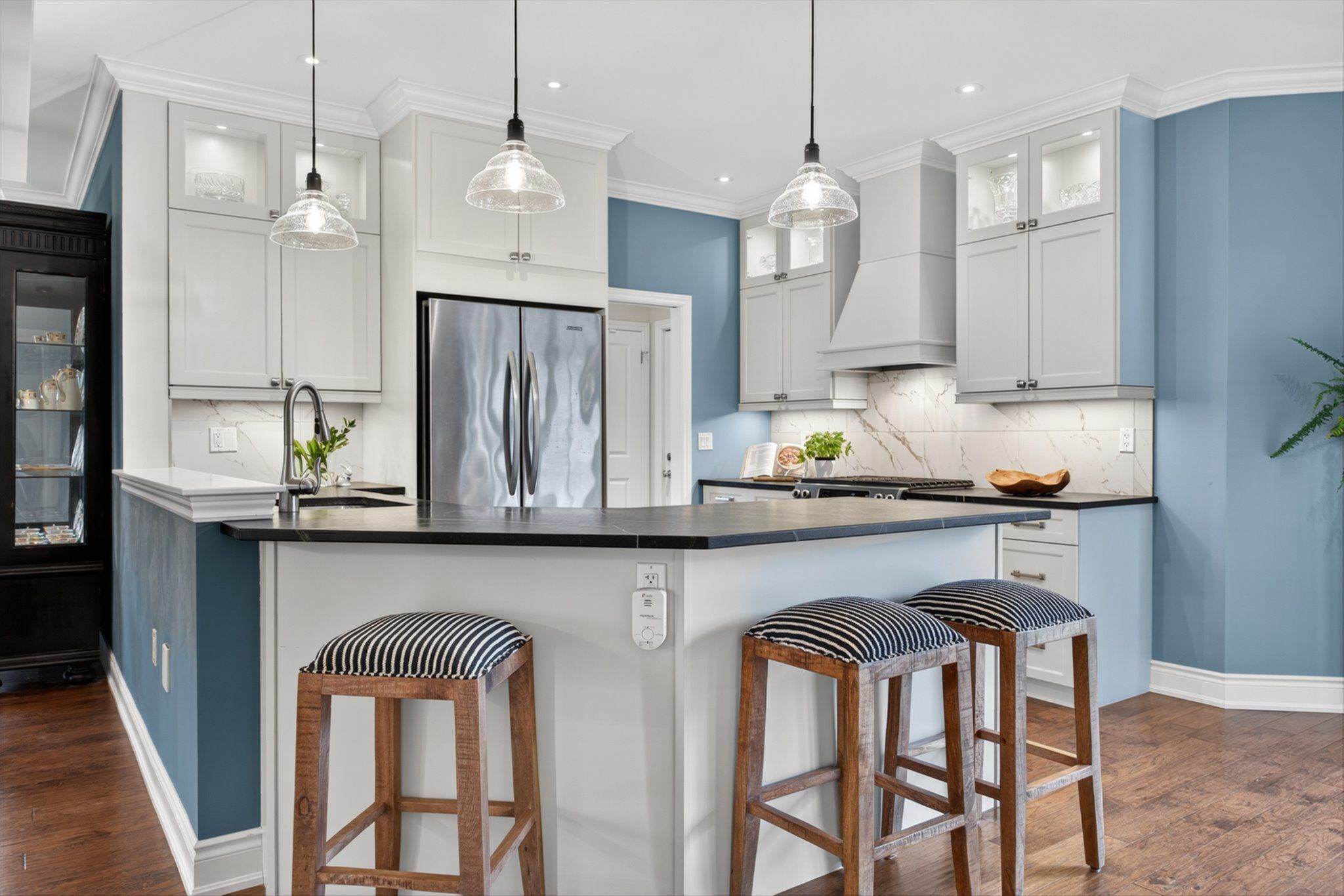 • Chef-inspired kitchen with high-end appliances and soapstone countertops.